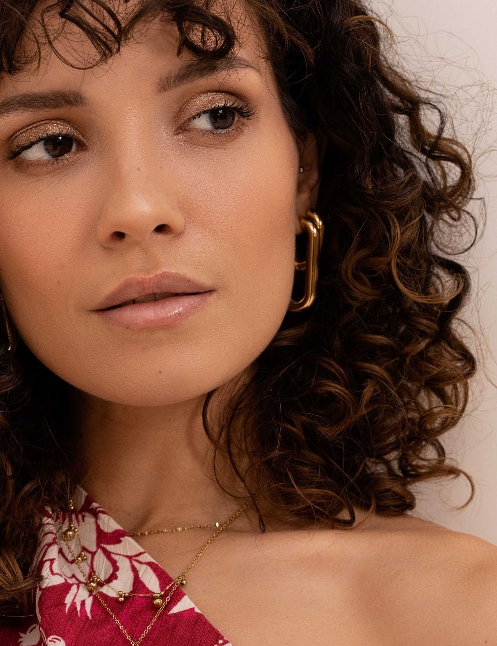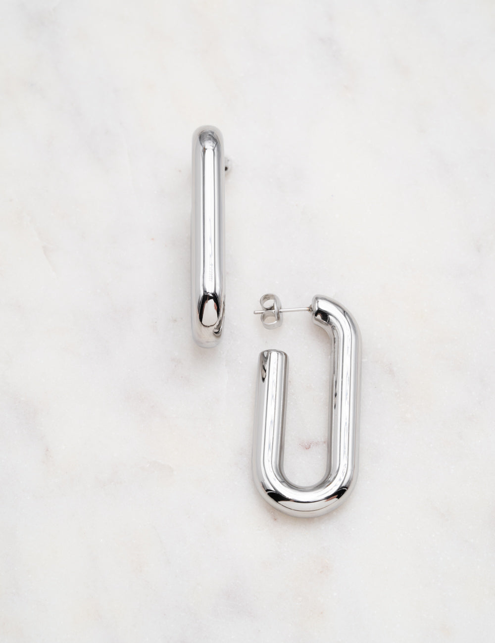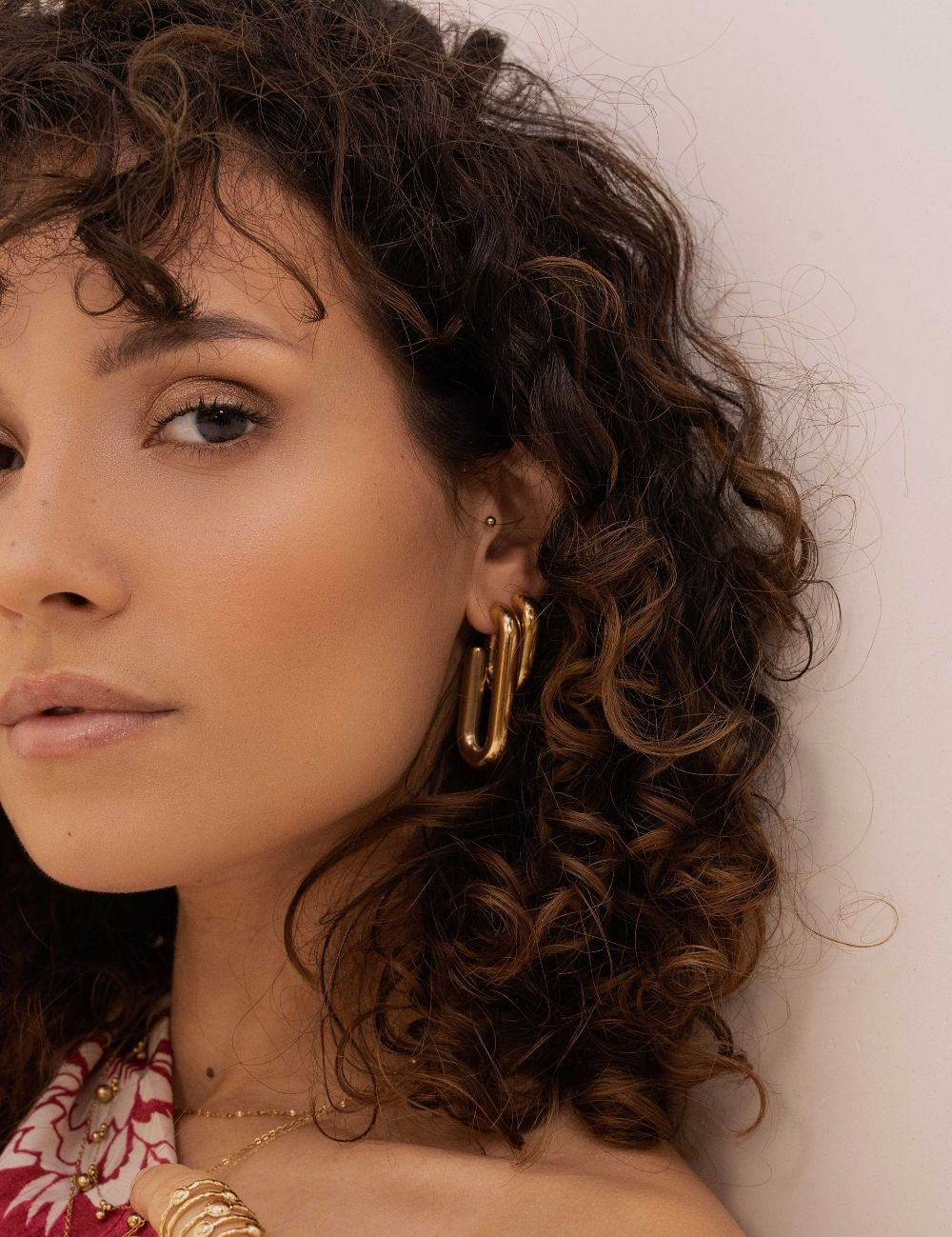 Boucles d'oreilles graphiques type créoles larges à puce.