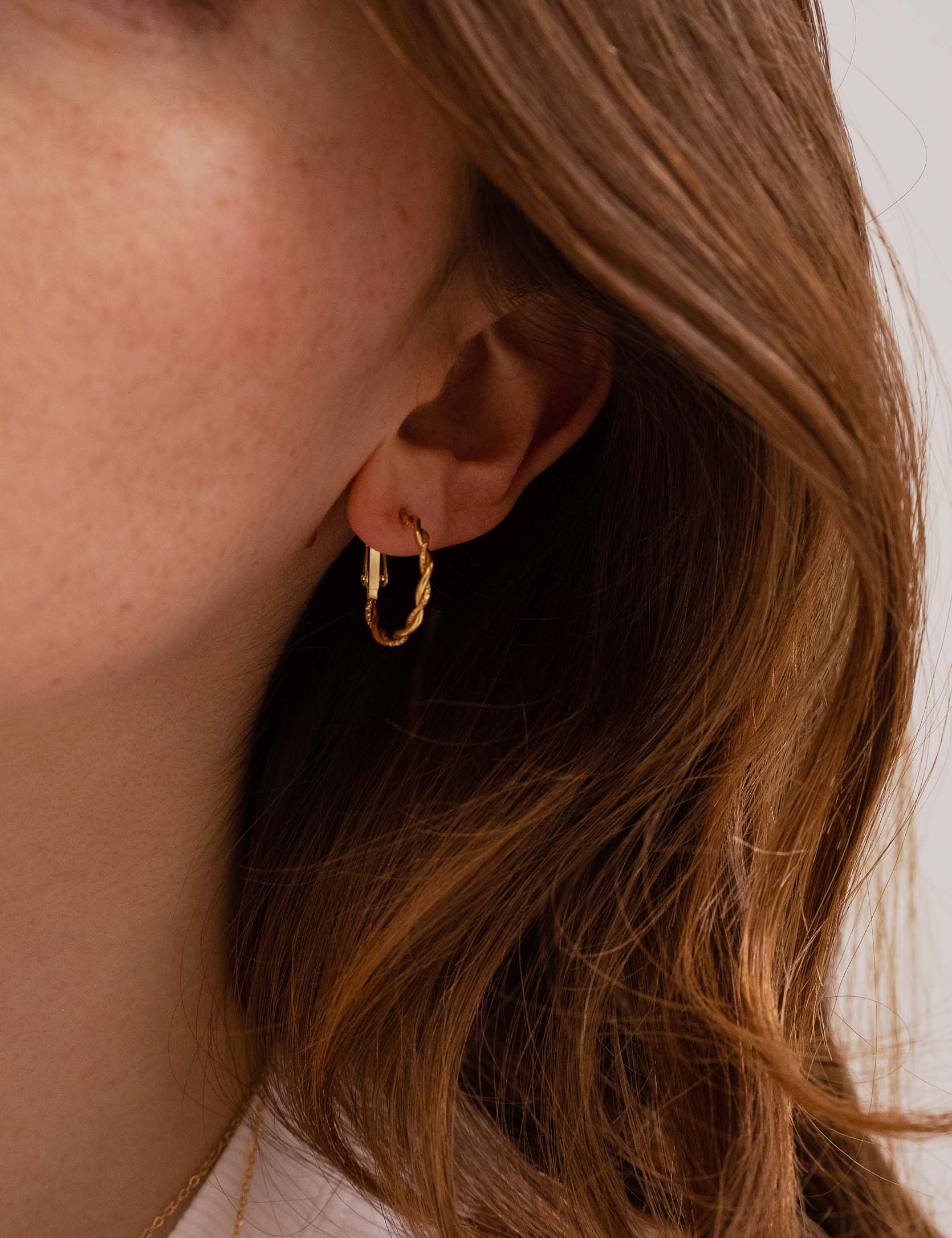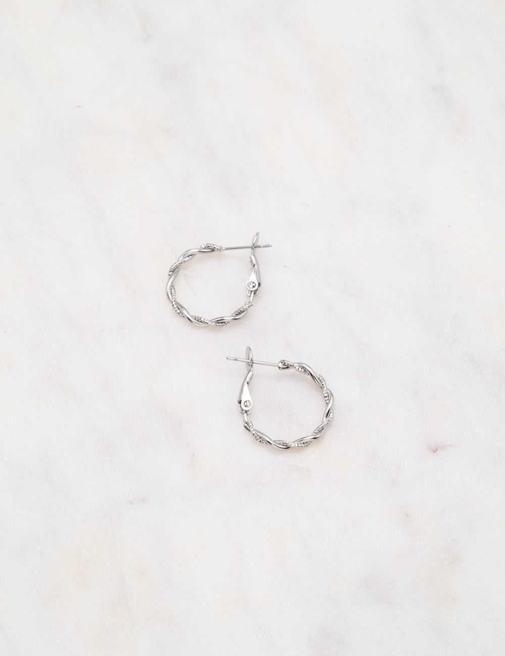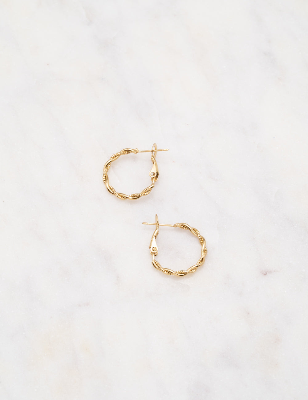 Boucles d'oreilles type créoles torsadées et texturées. Fermoir cliquet.