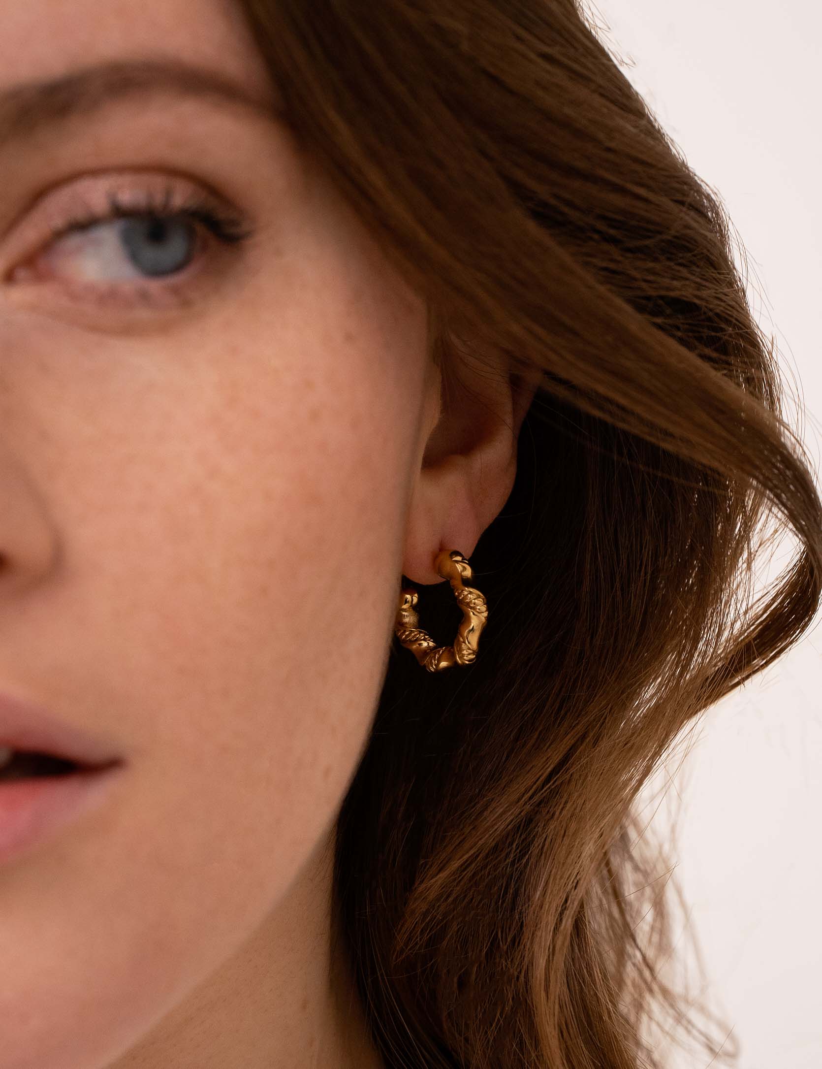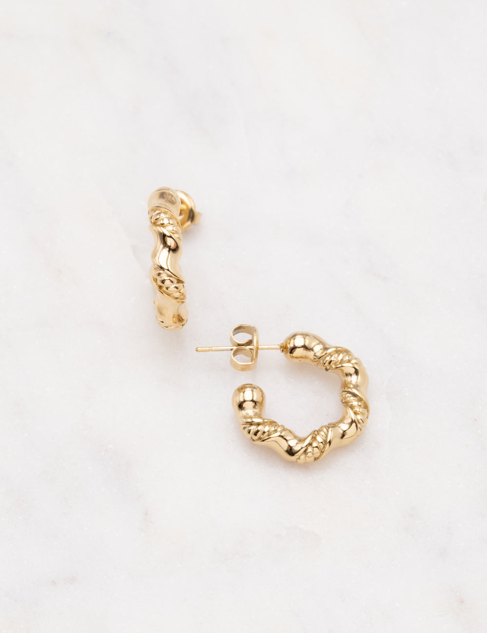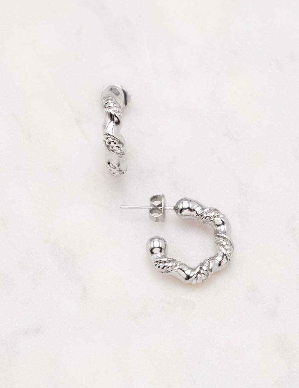 Boucles d'oreilles type créoles à puce effet torsadé et texturé. Fermoir papillon.