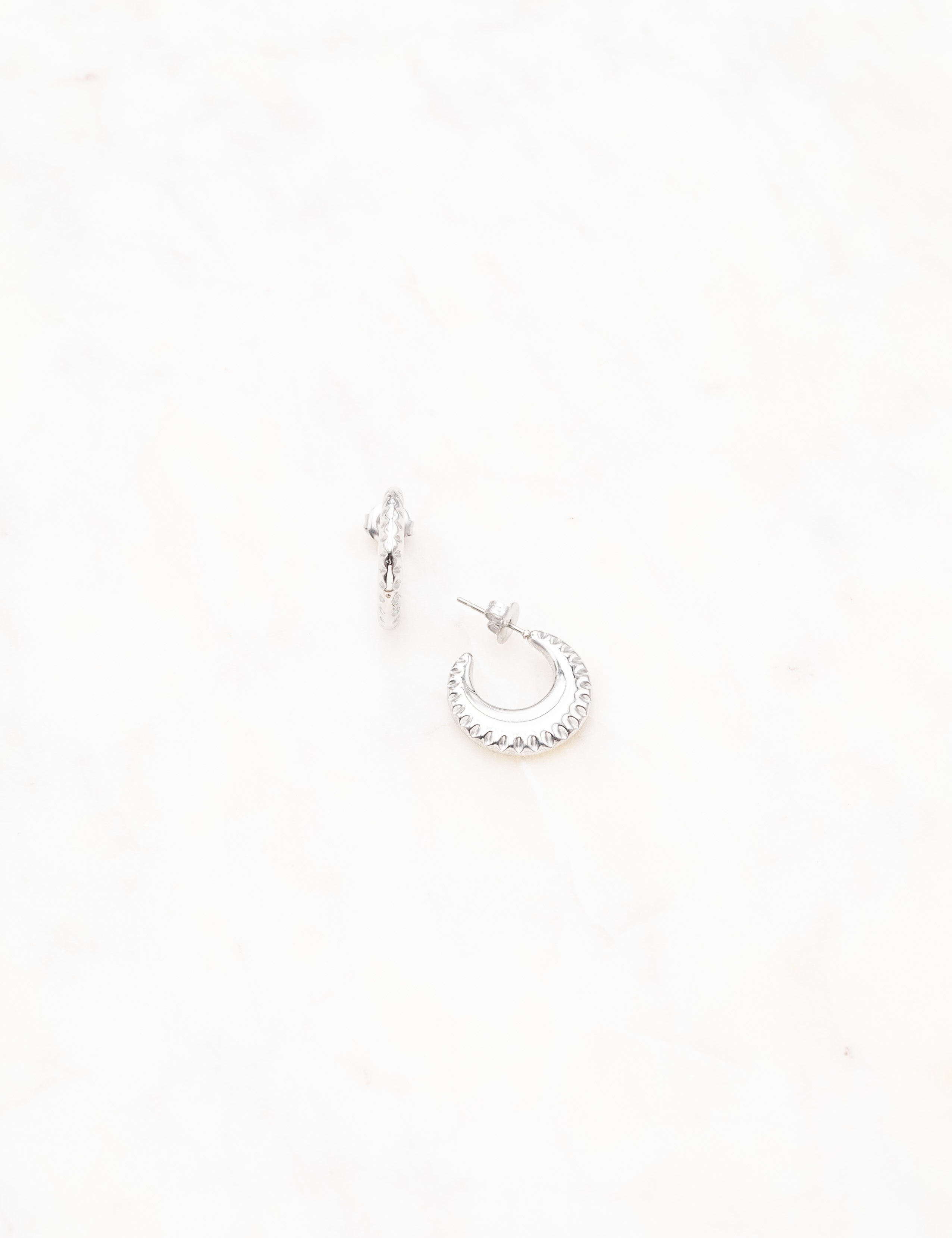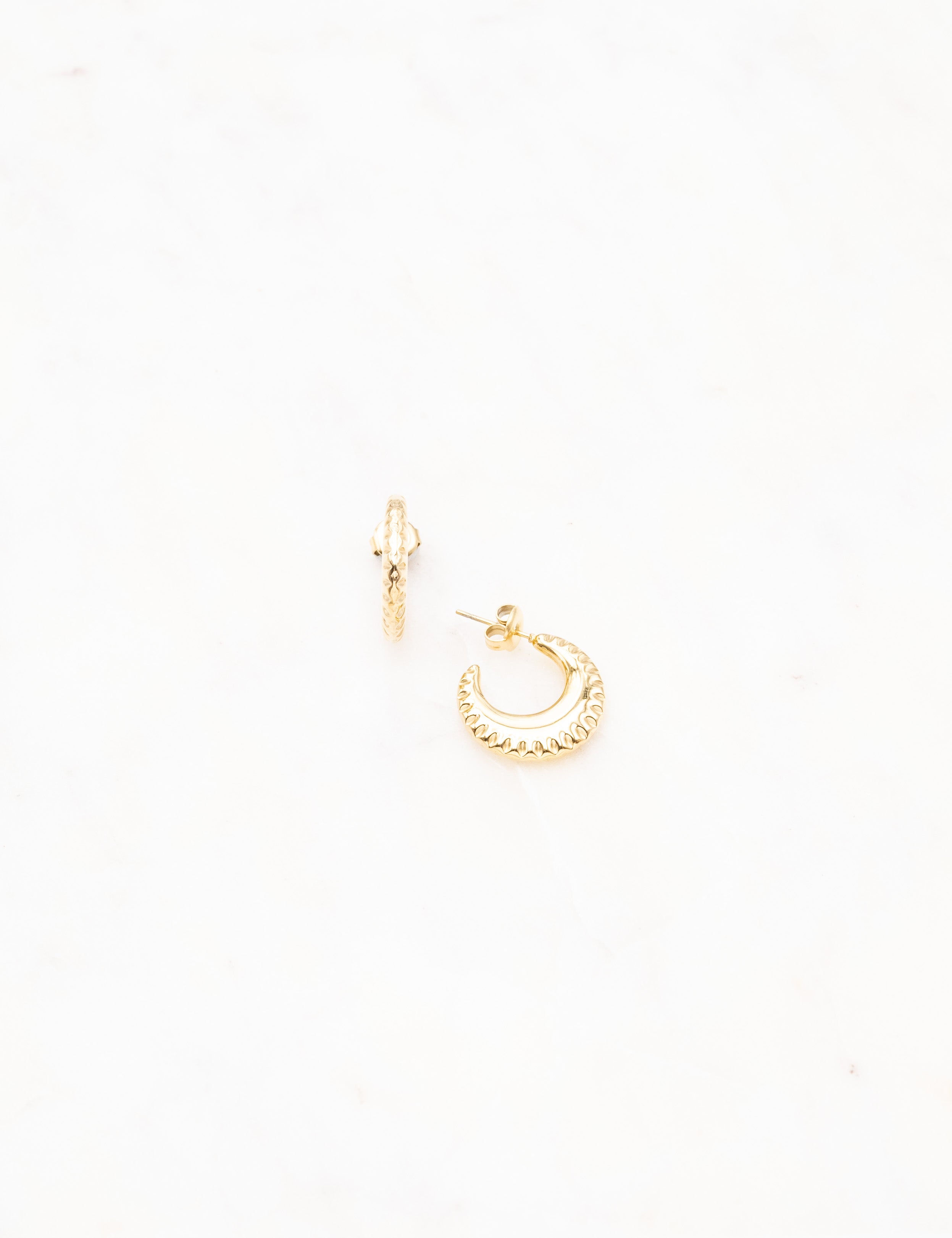 Boucles d'oreilles type créoles à puce texturées.
