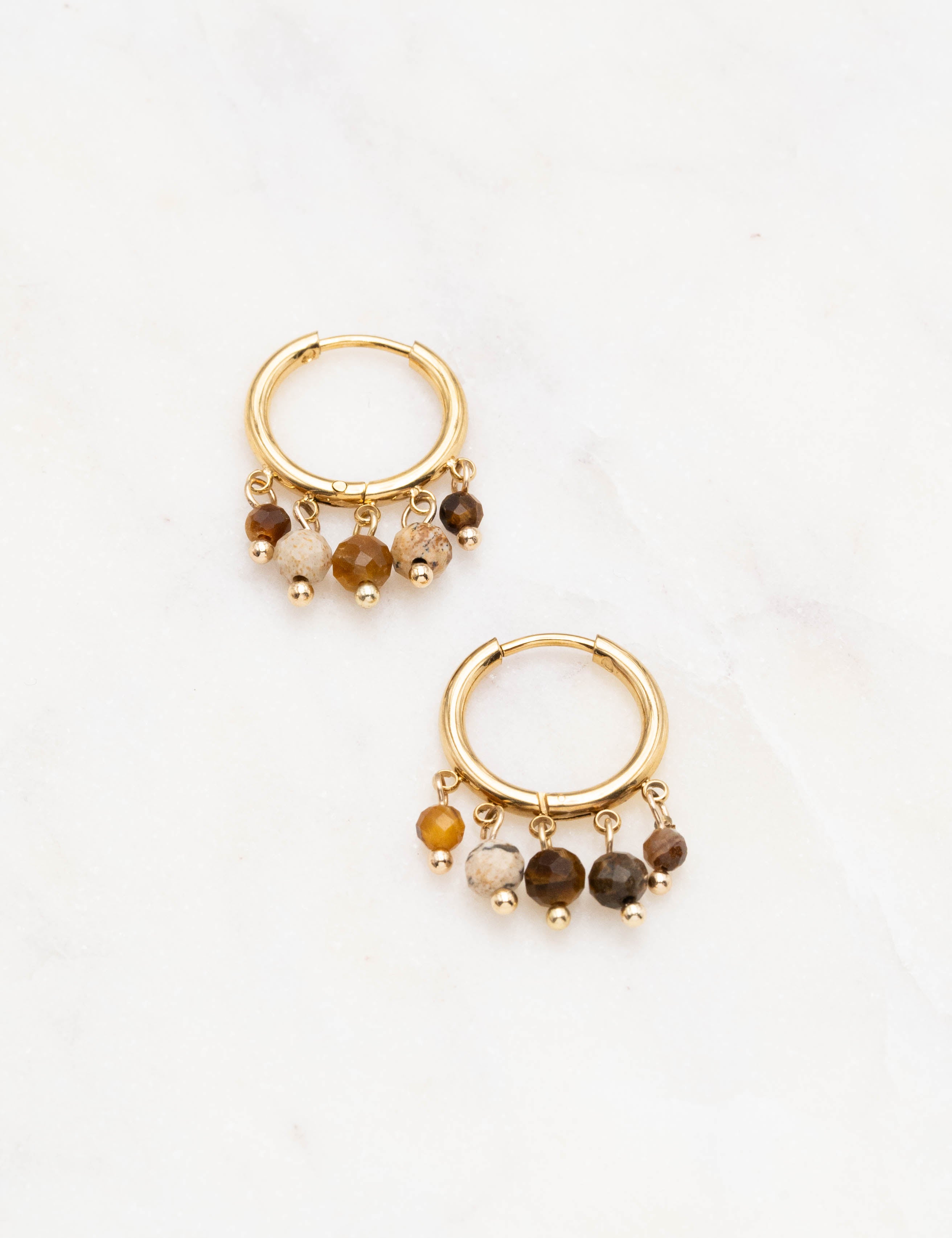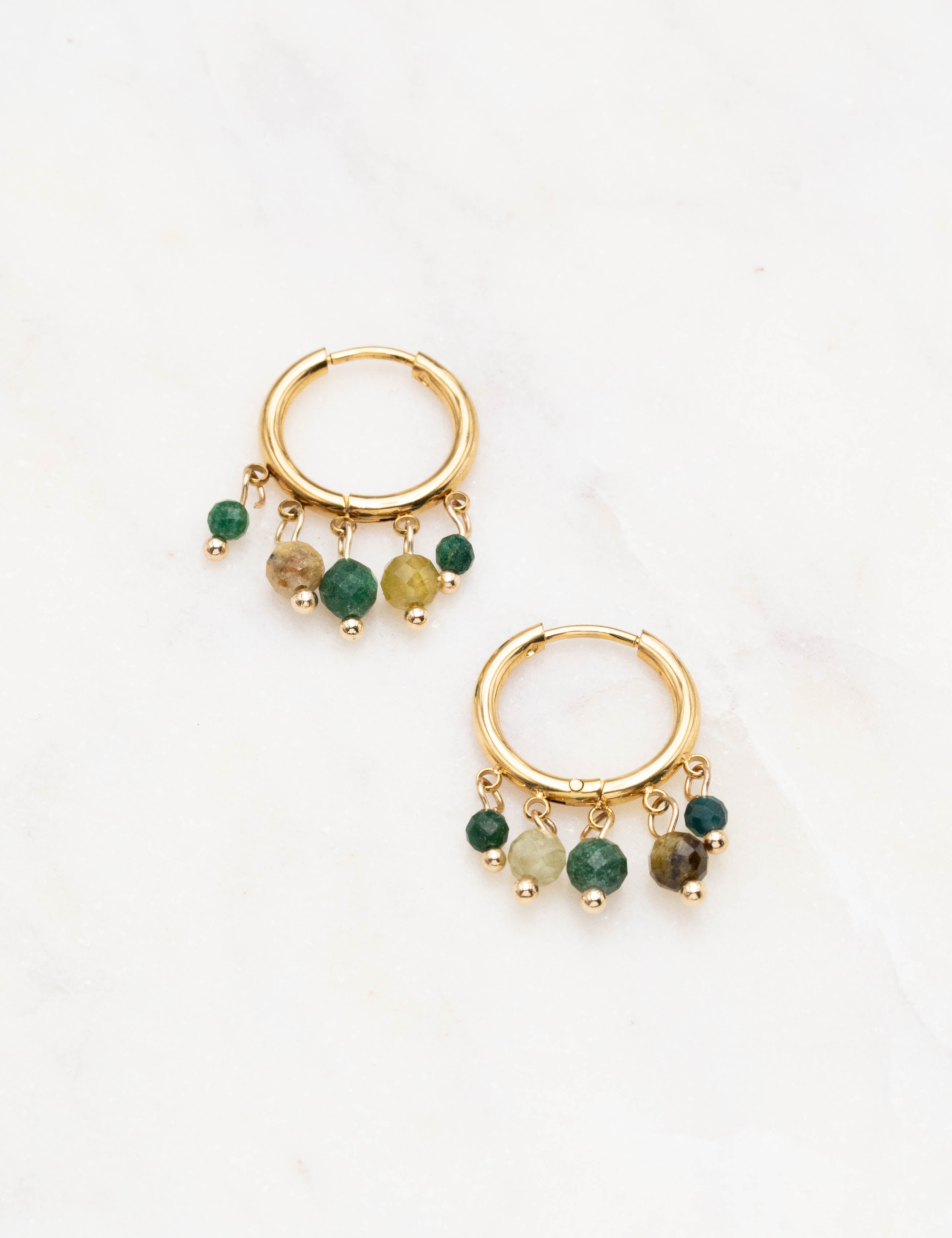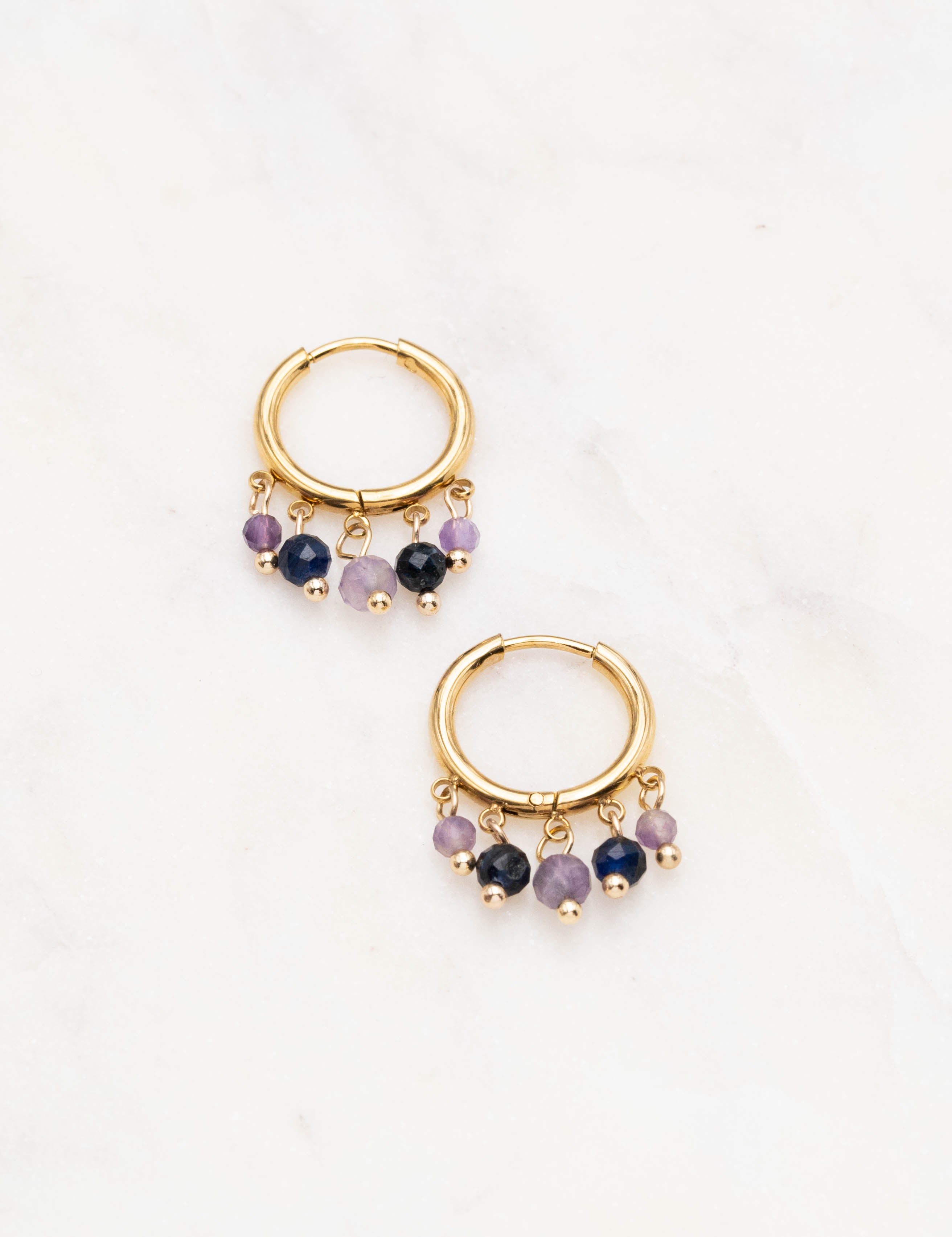 Boucles d'oreilles type créoles embellies de pampilles en pierres naturelles