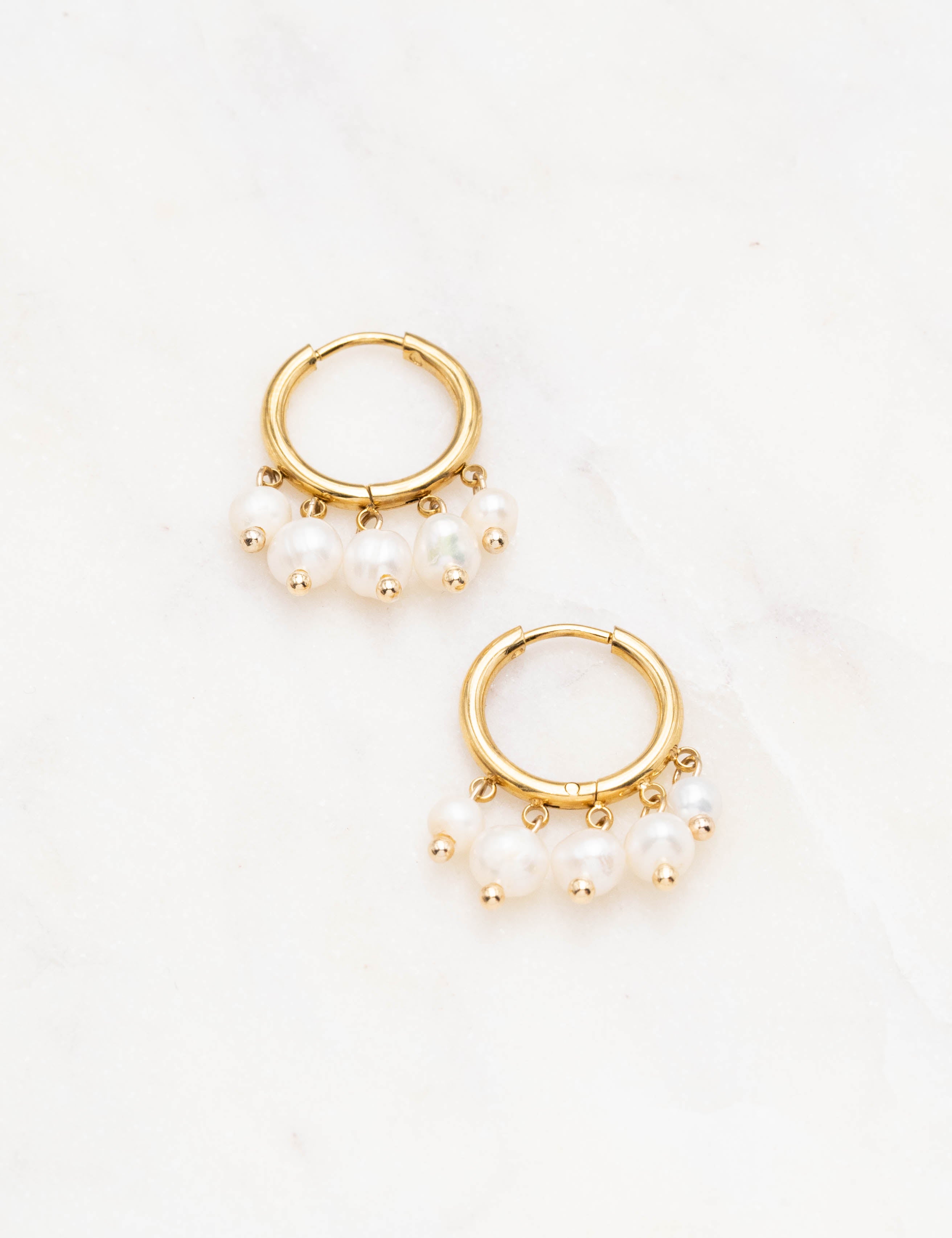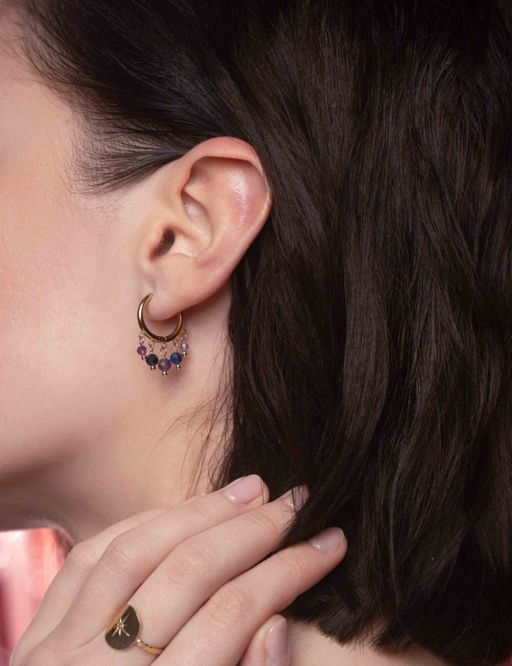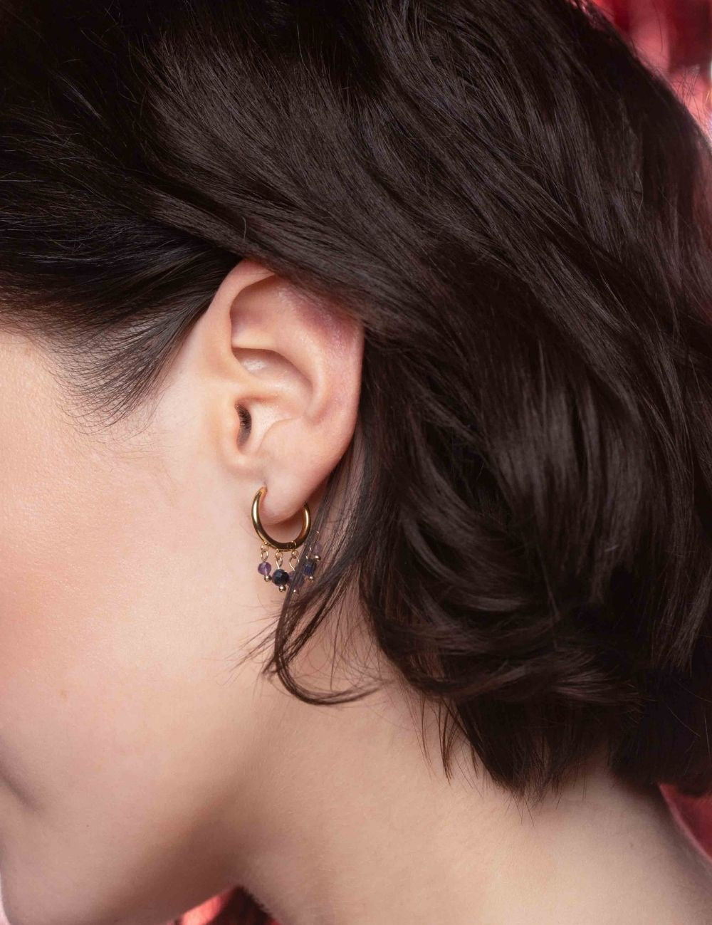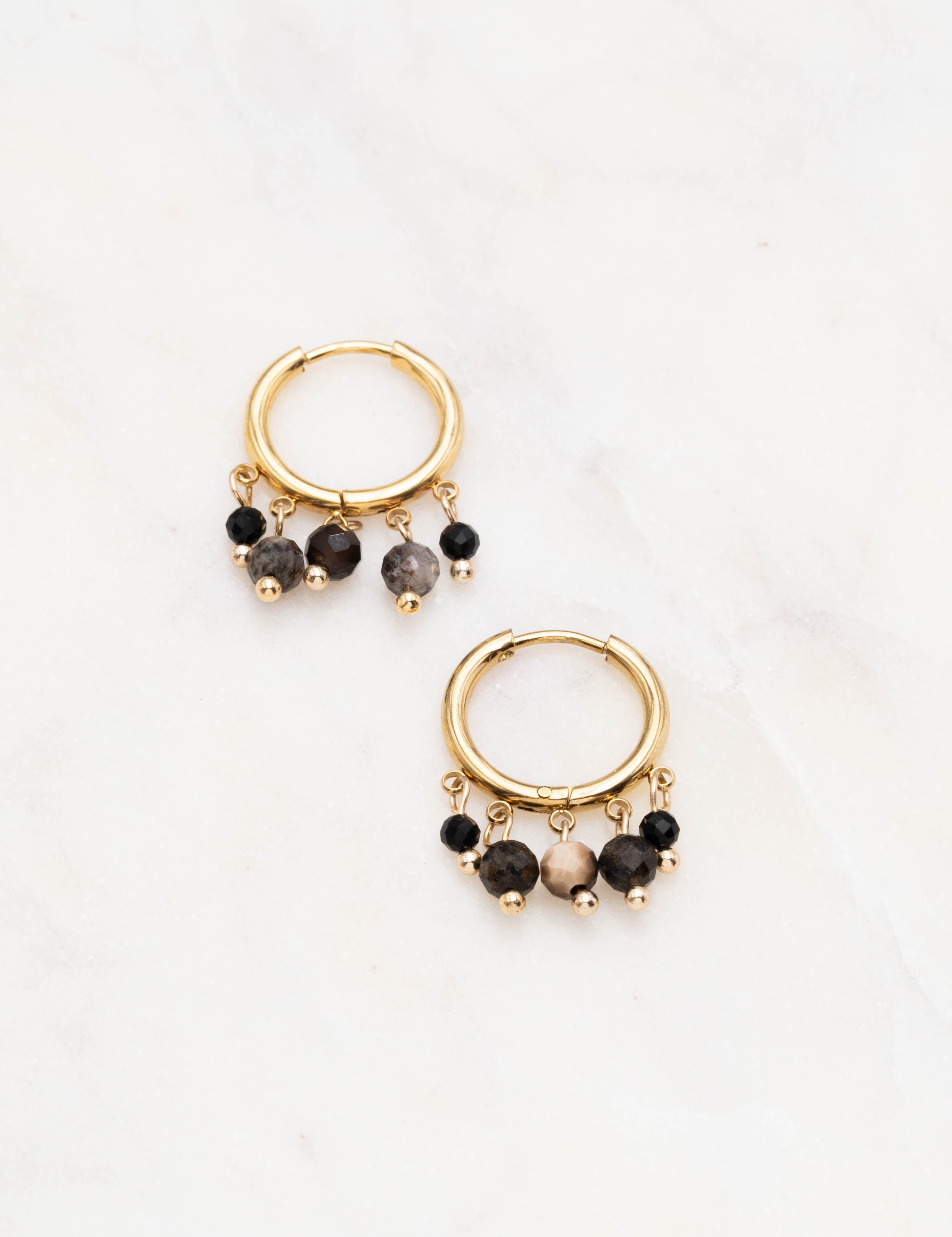 Boucles d'oreilles type créoles embellies de pampilles en pierres naturelles