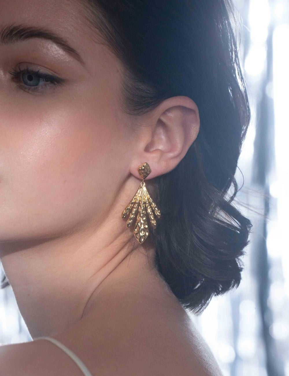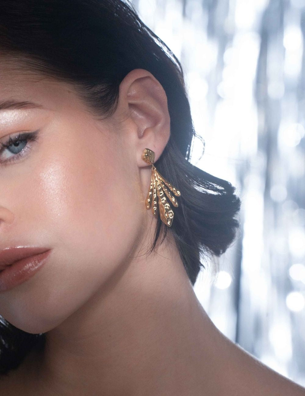 Boucles d'oreilles graphiques à puce pendantes martelées.