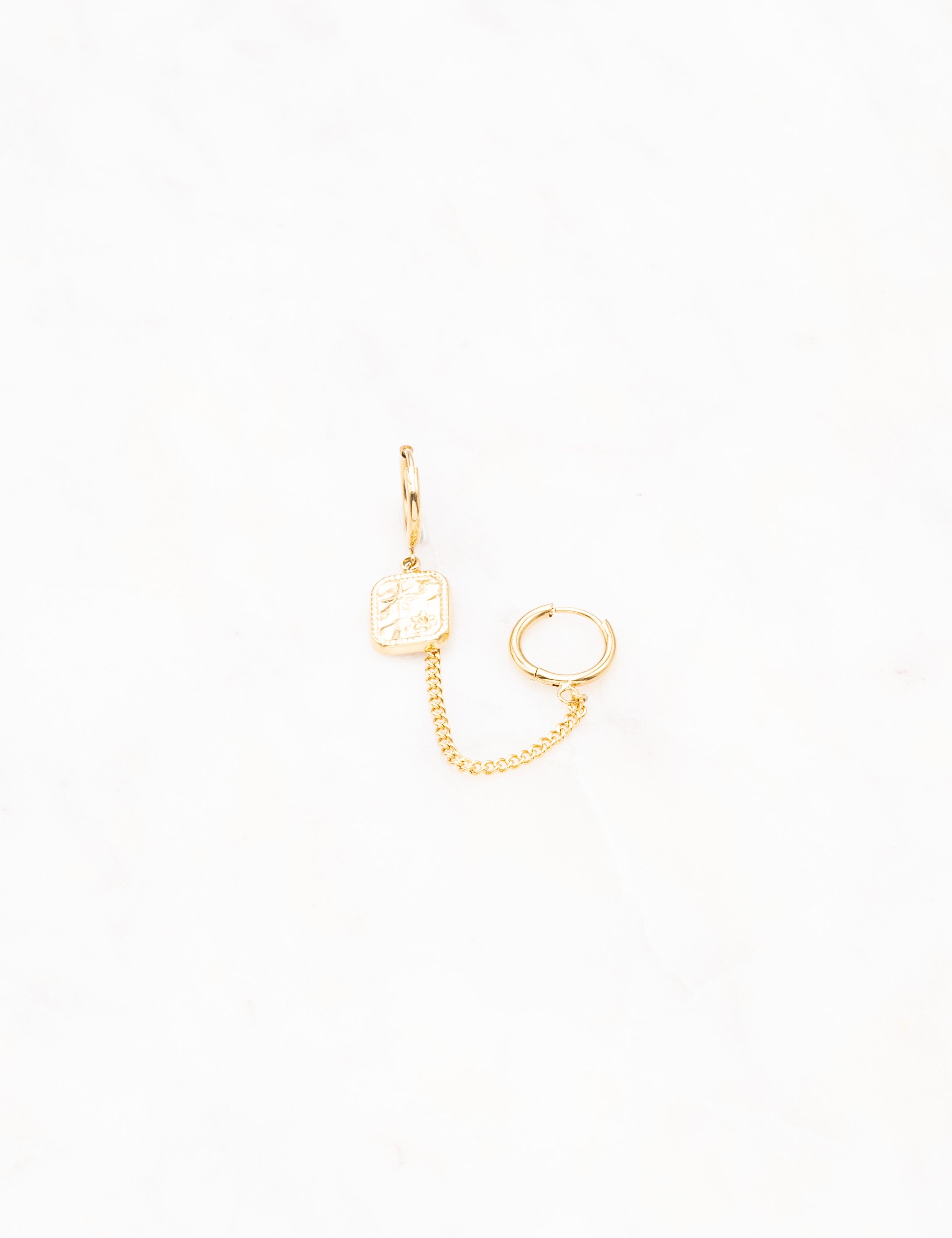 Mono boucle d'oreille type créoles composées d'une chaîne, d'une pampille rectangulaire embellie de motifs étoilés.