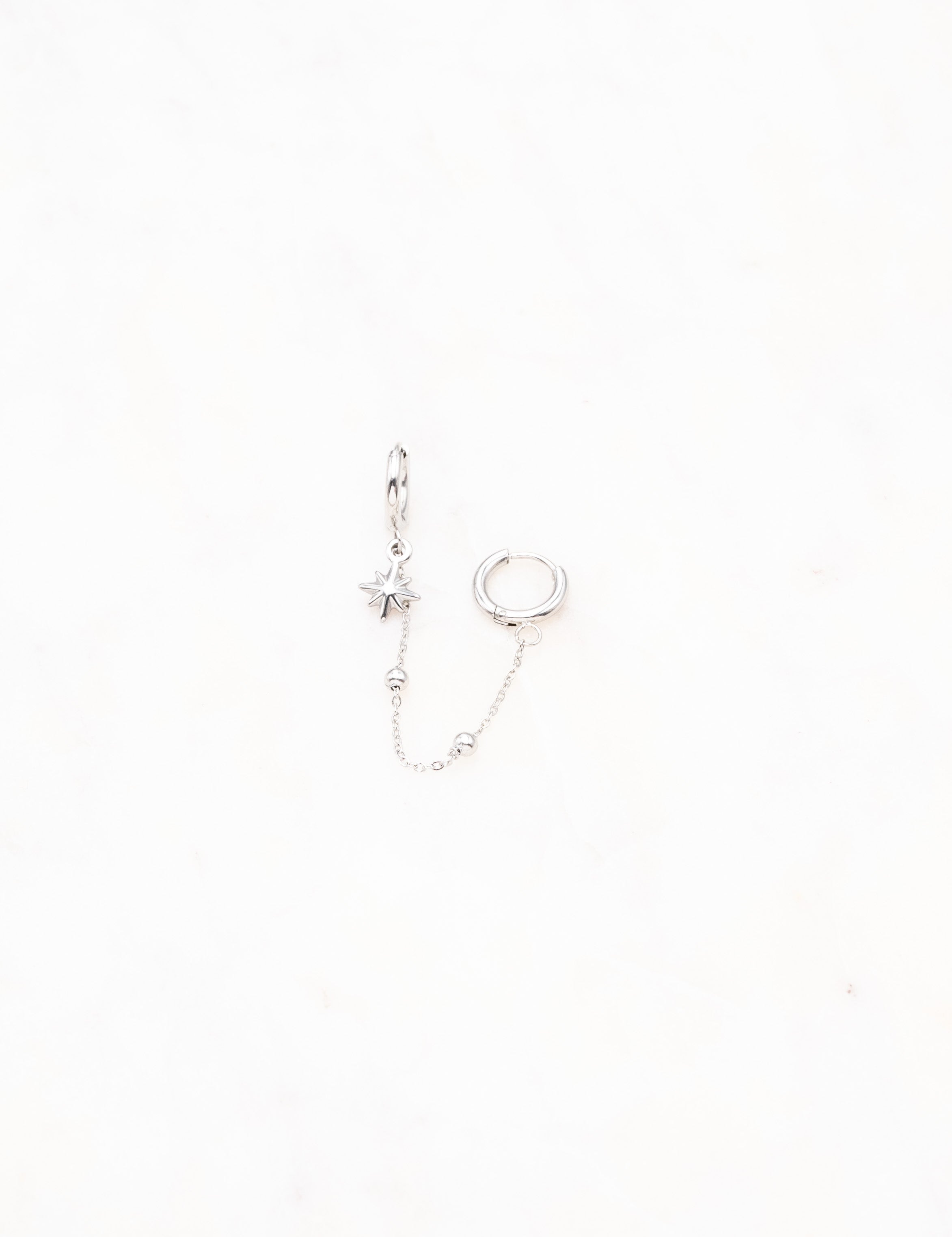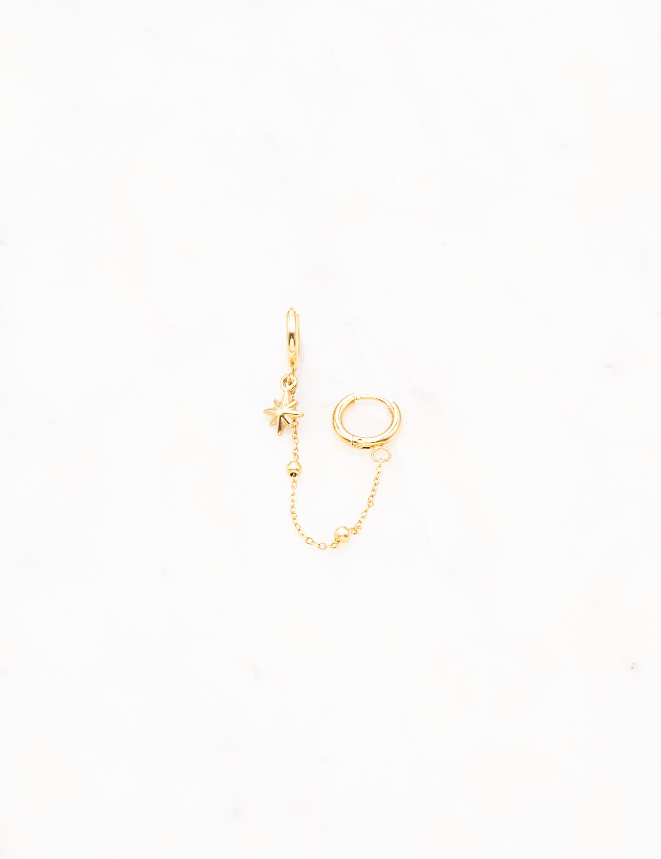 Mono boucle d'oreille type créoles composées d'une chaîne ornée de petites boucles et d'une pampille étoilée.
