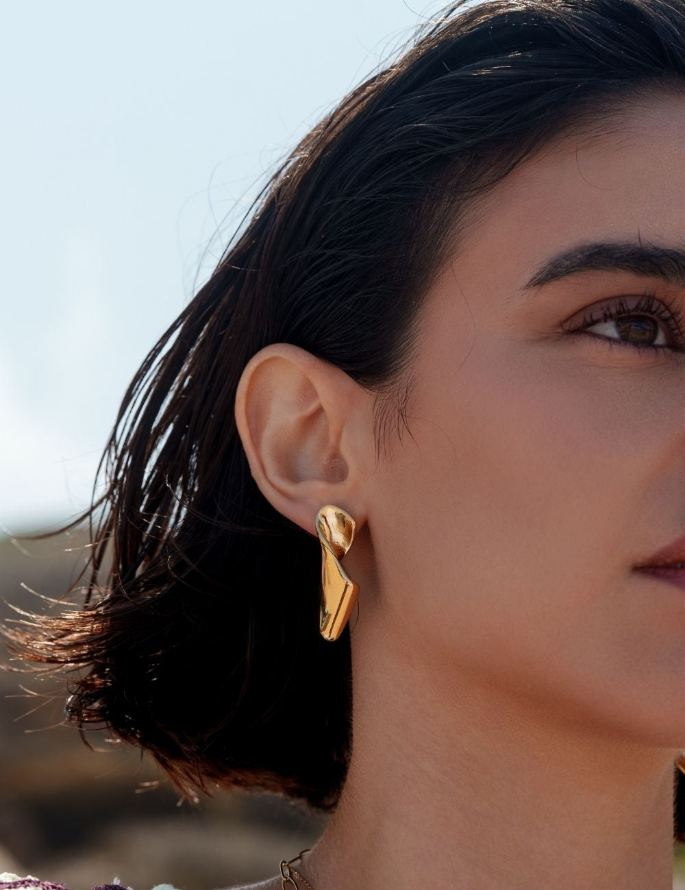 Boucles d'oreilles graphiques à puce avec un effet lisse.