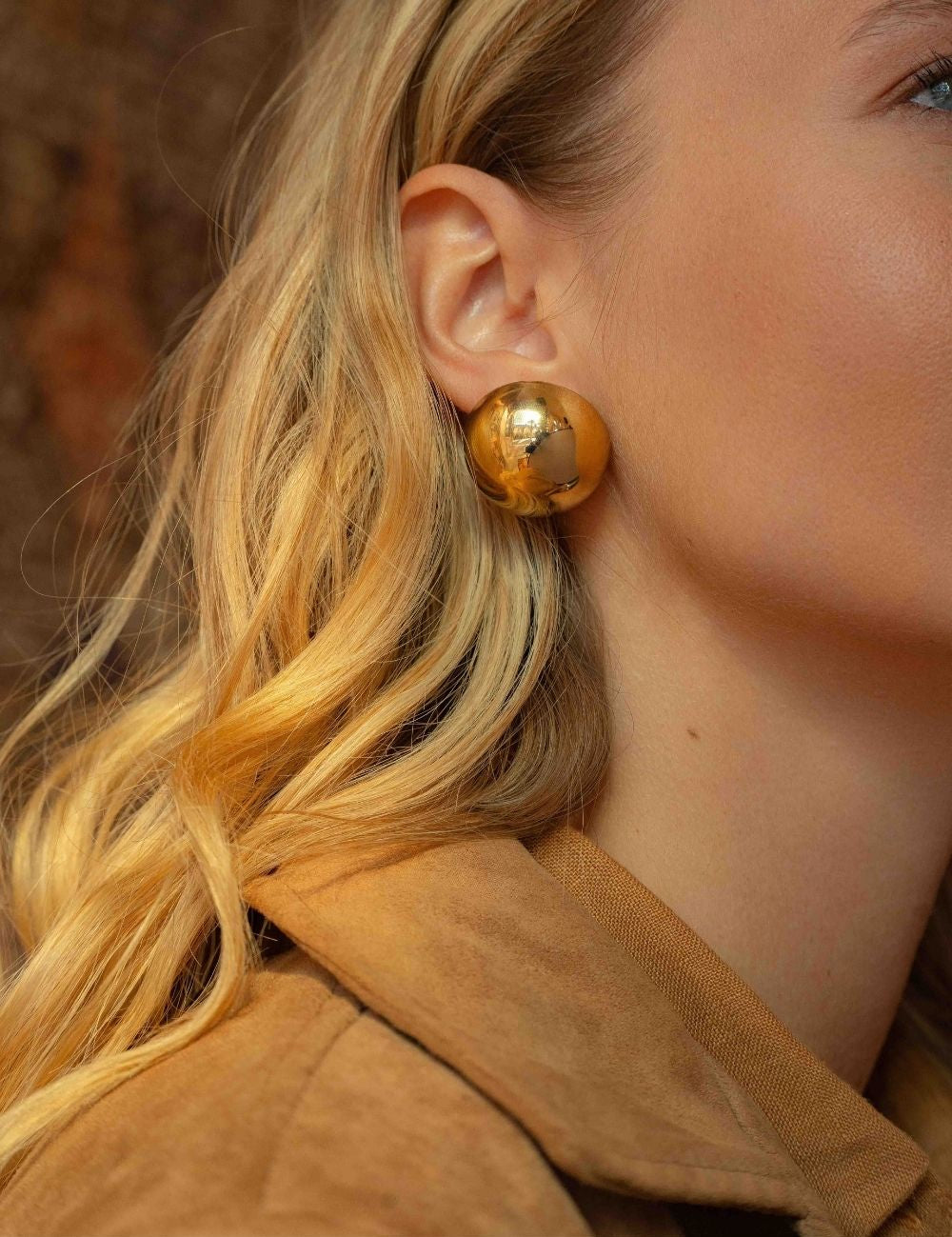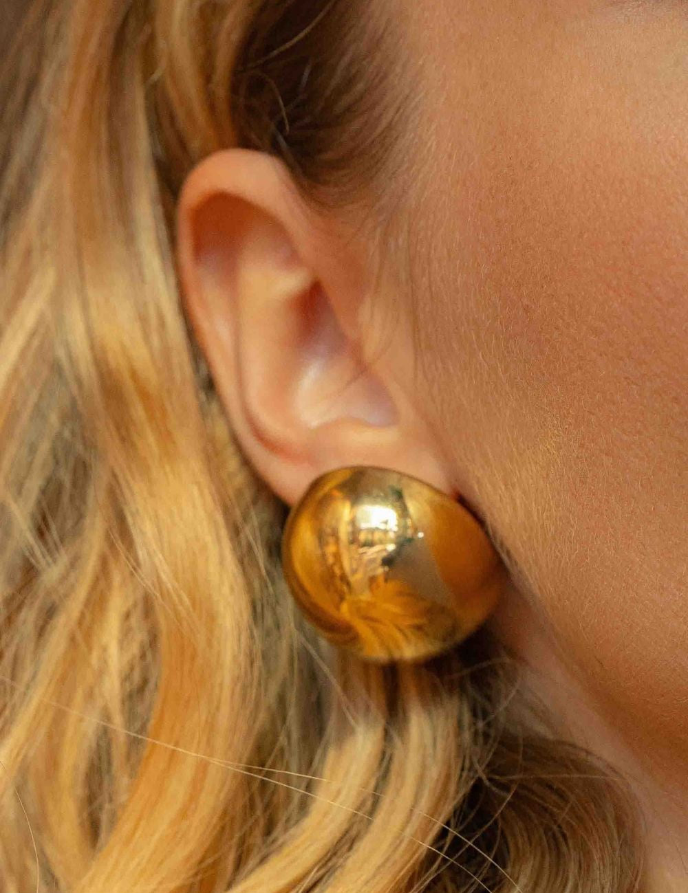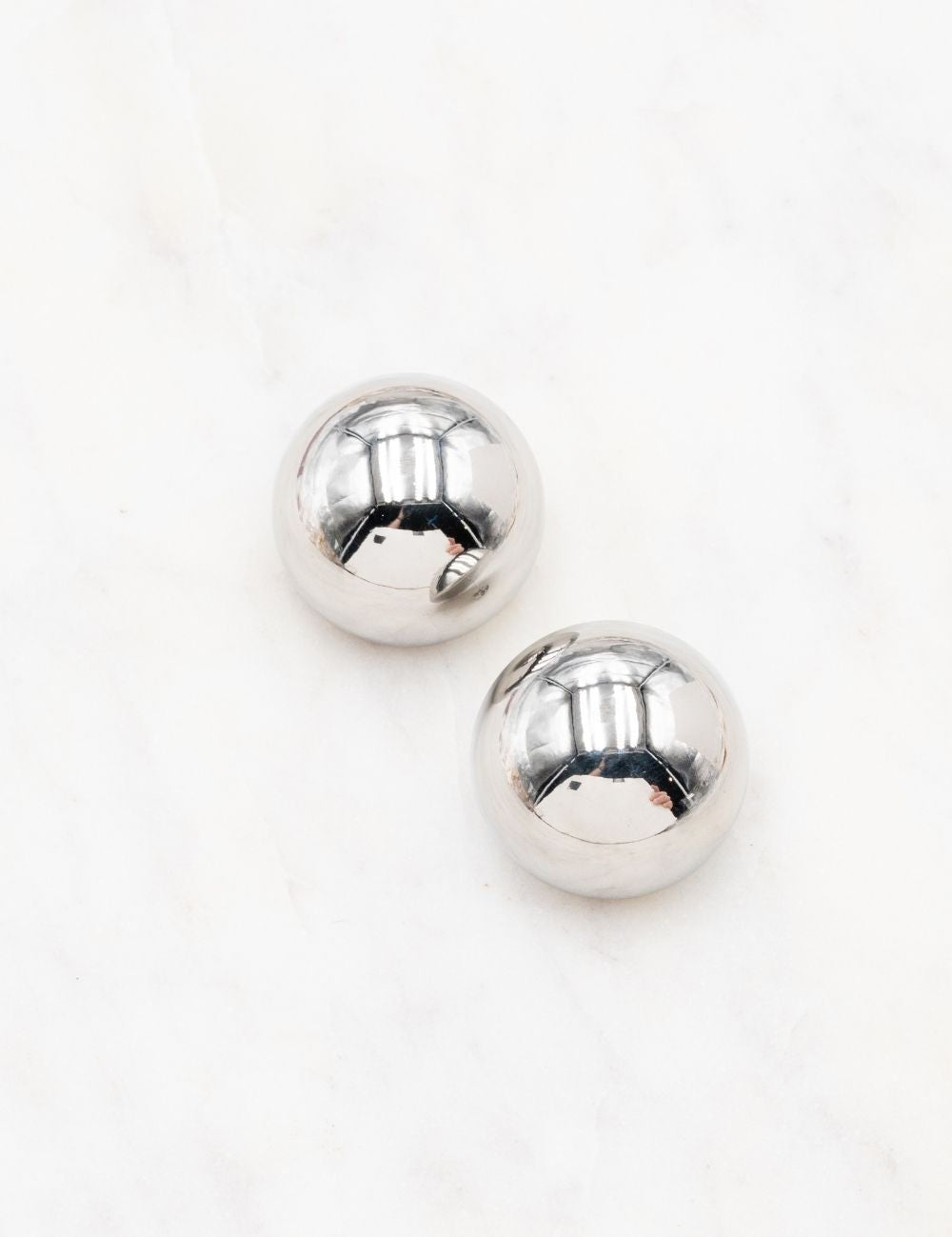 Boucles d'oreilles graphiques à puce composées d'une demi-boule avec effet miroir.
