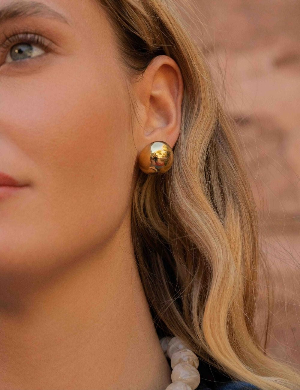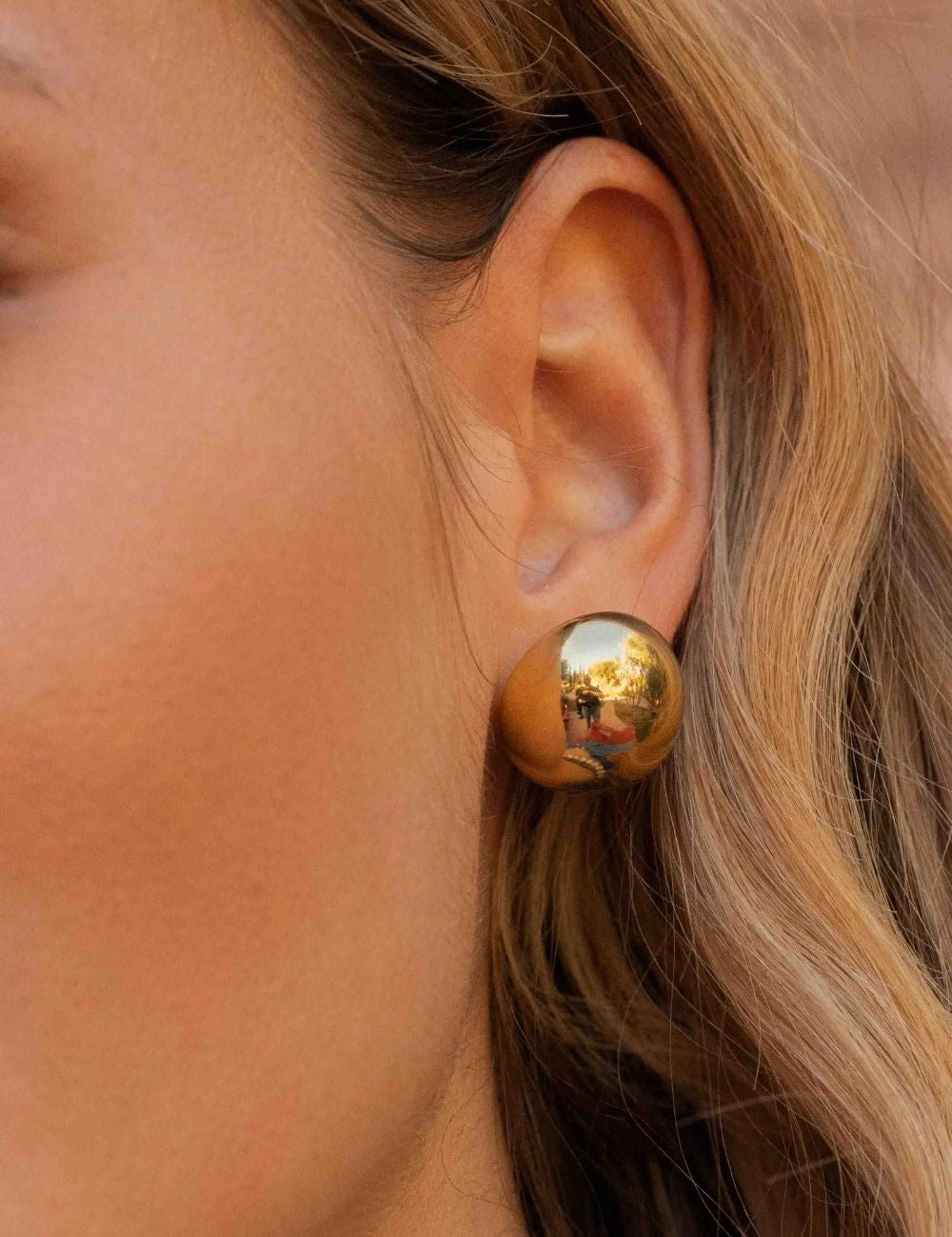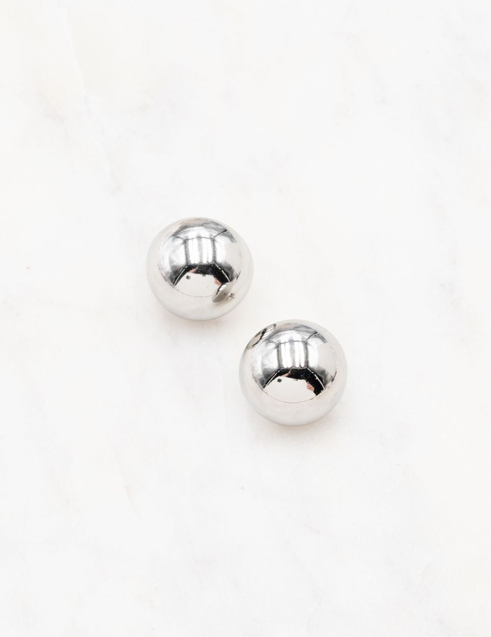 Boucles d'oreilles graphiques à puce composées d'une demi-boule avec effet miroir.