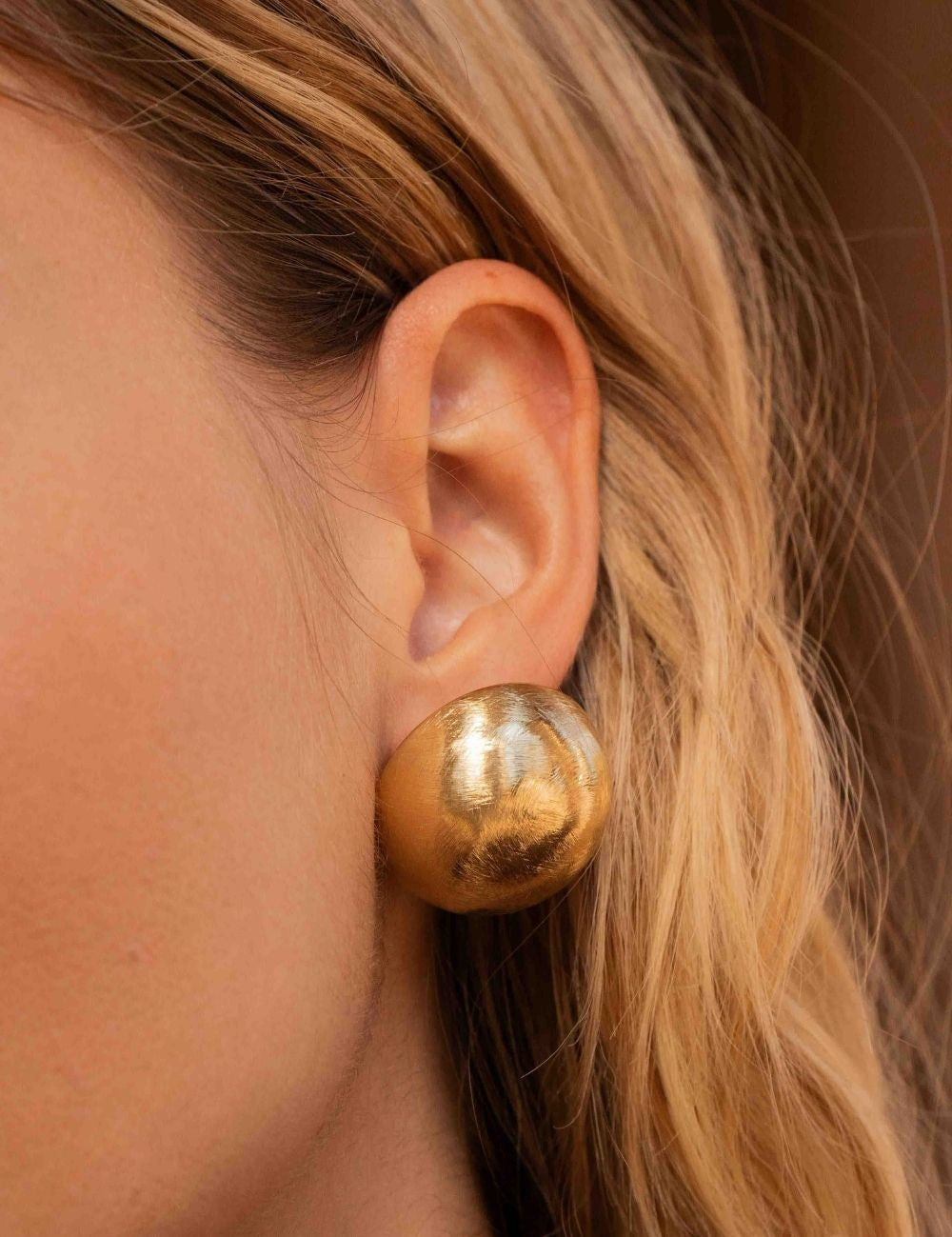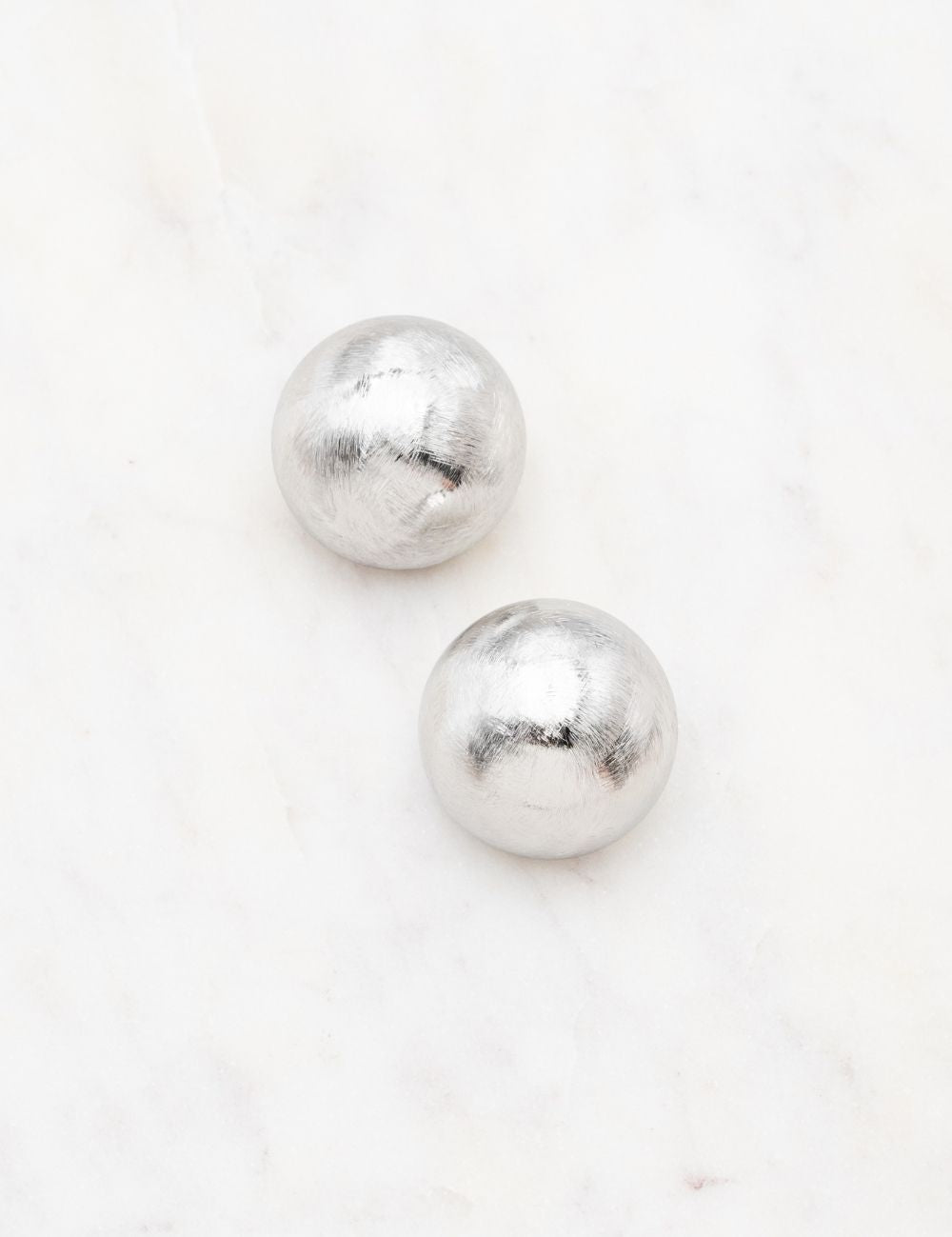 Boucles d'oreilles graphiques à puce composées d'une demi-boule avec effet brossé.