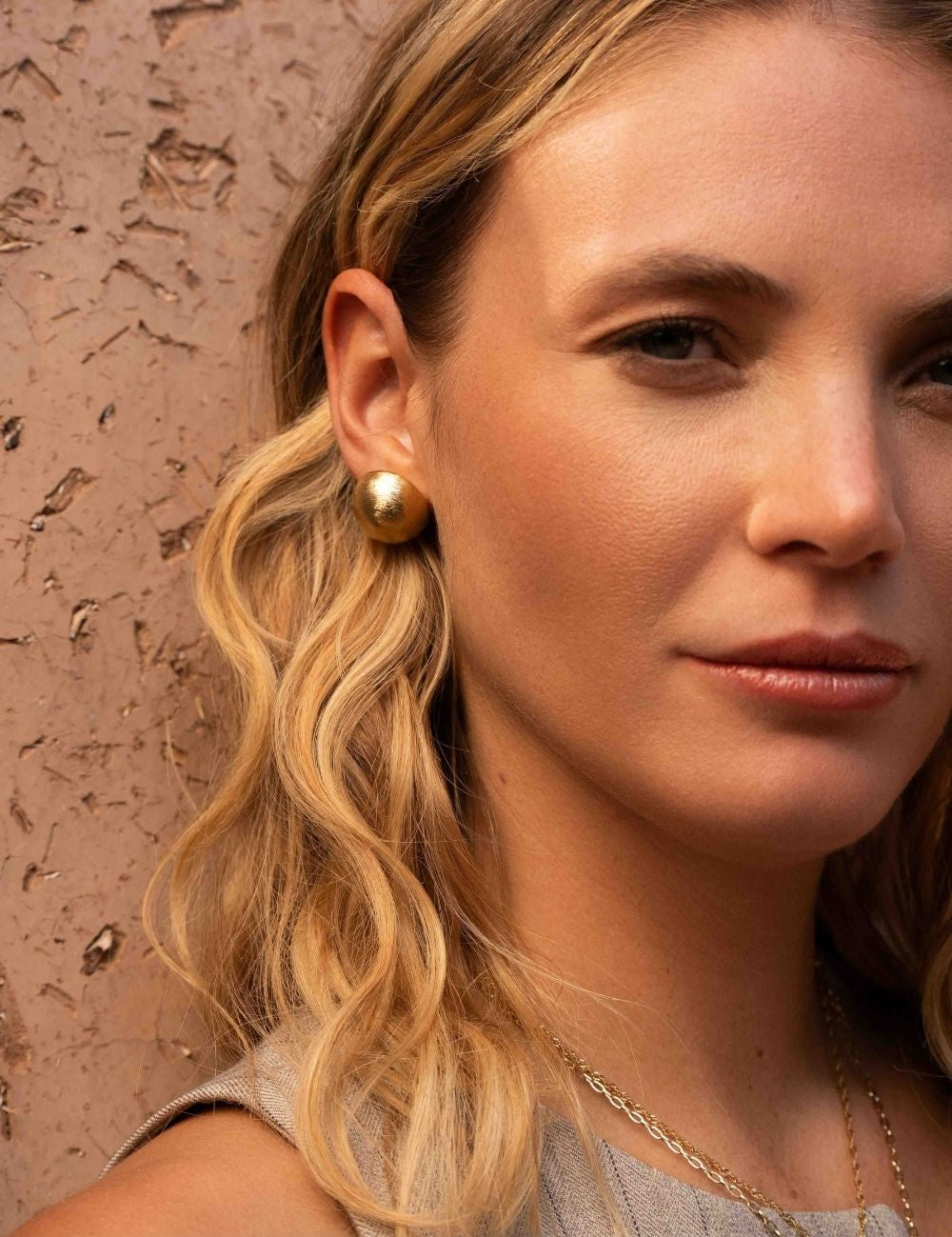 Boucles d'oreilles à puce composées d'une demi-boule avec effet brossé.