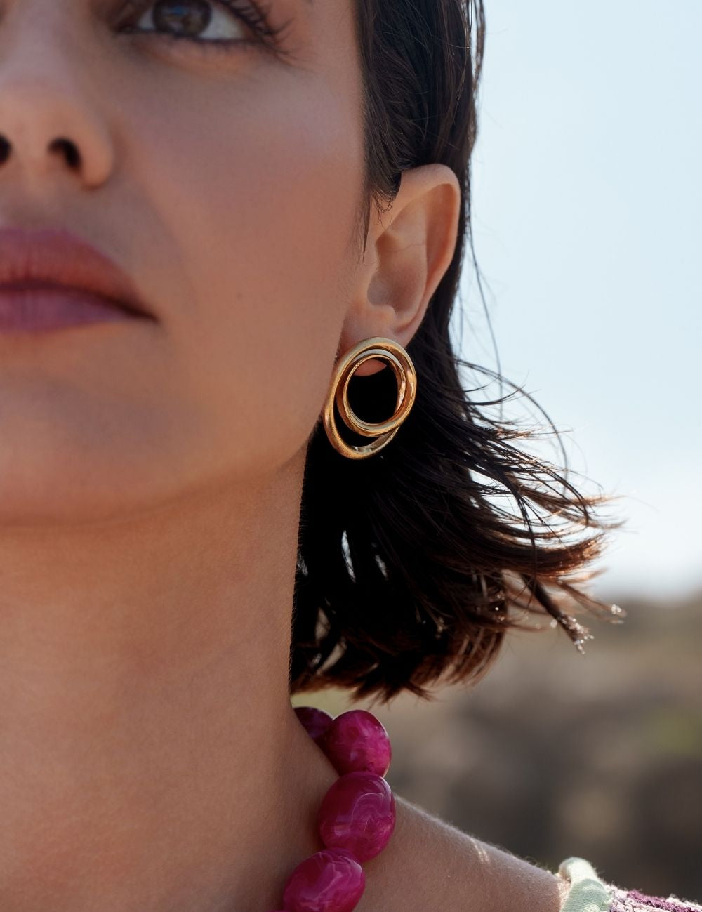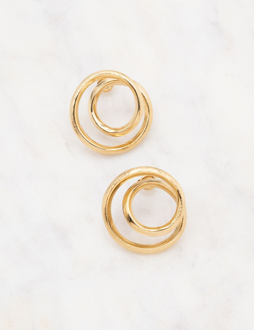 Boucles d'oreilles graphiques à puce avec double anneaux avec un effet brossé (patiné).