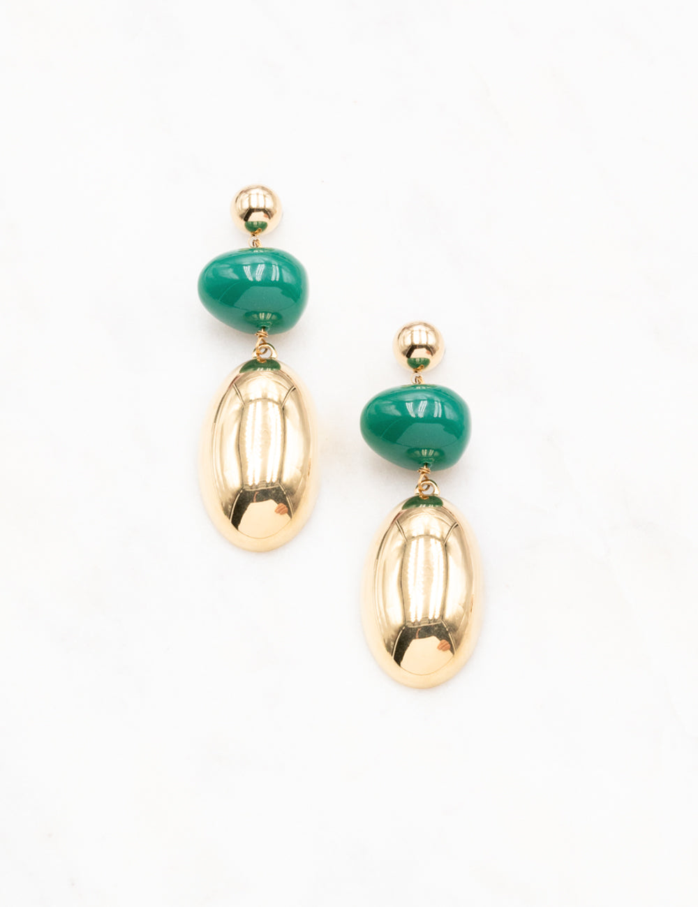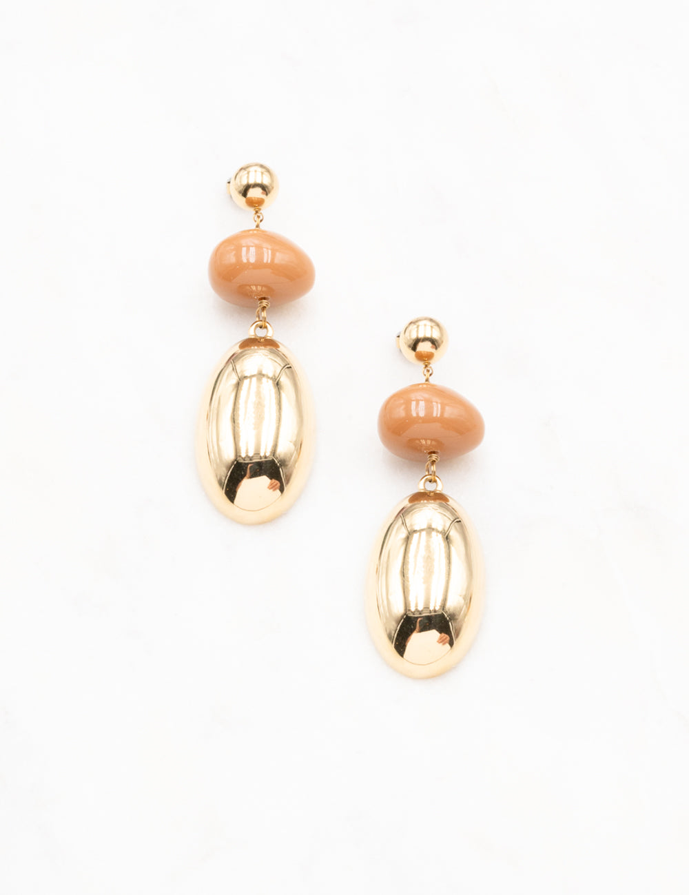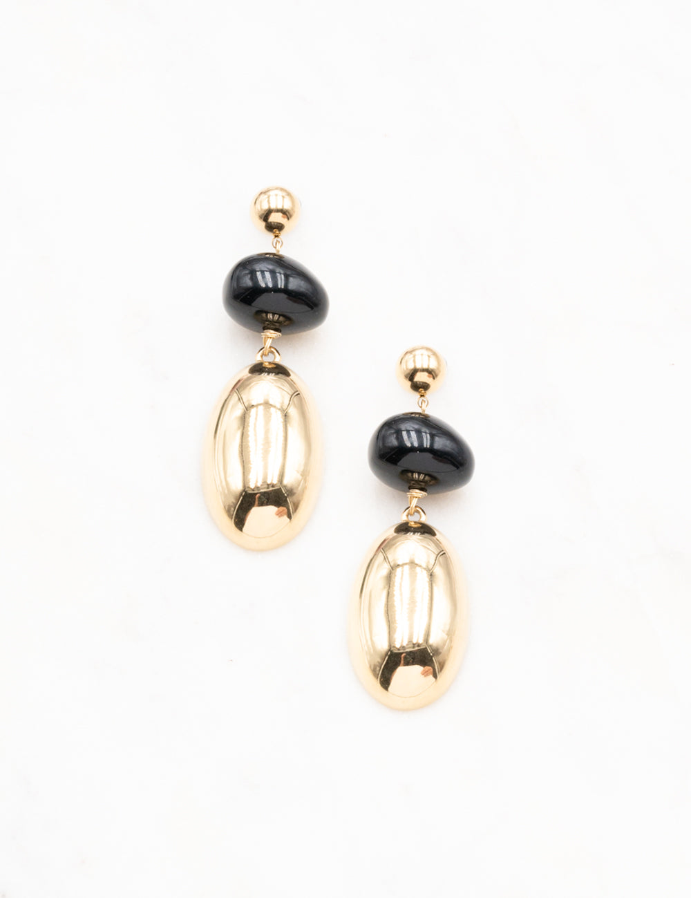Boucles d'oreilles à puce pendantes composée d'une pièce métallique et d'une perle en acétate.