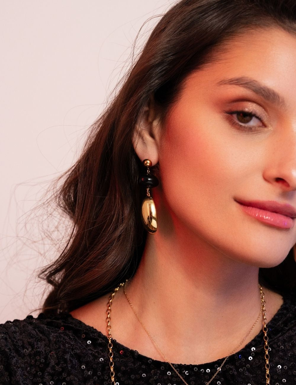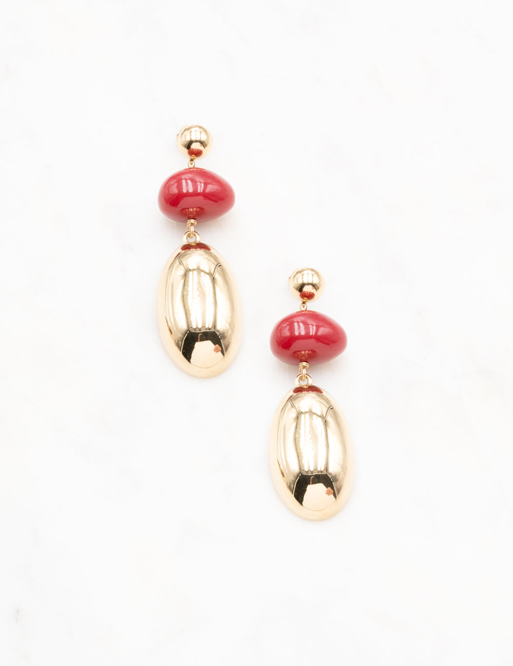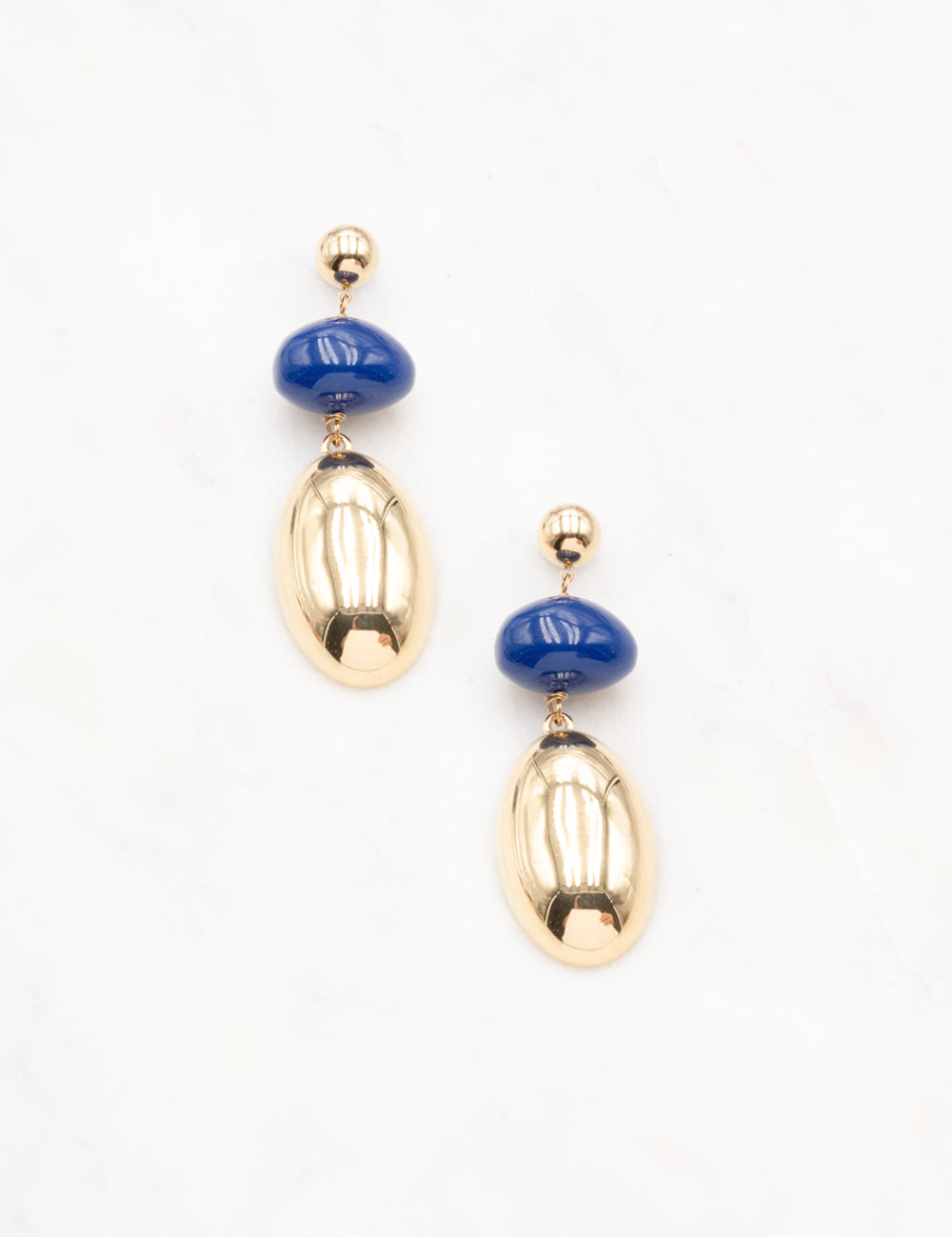 Boucles d'oreilles à puce pendantes composée d'une pièce métallique et d'une perle en acétate.