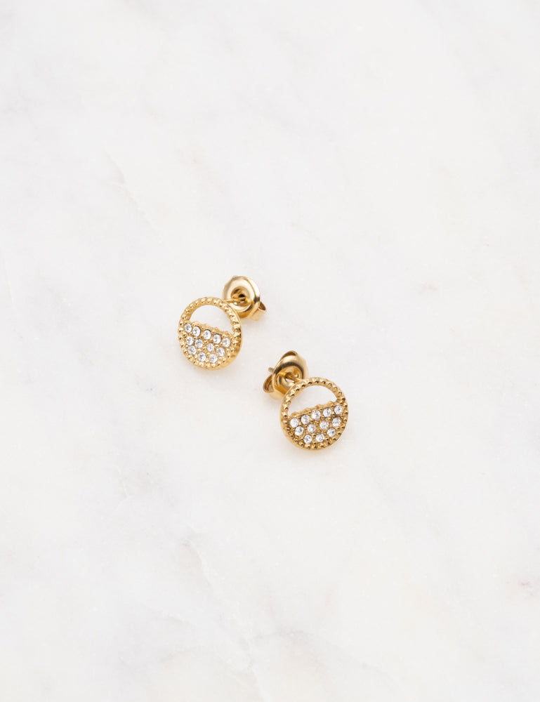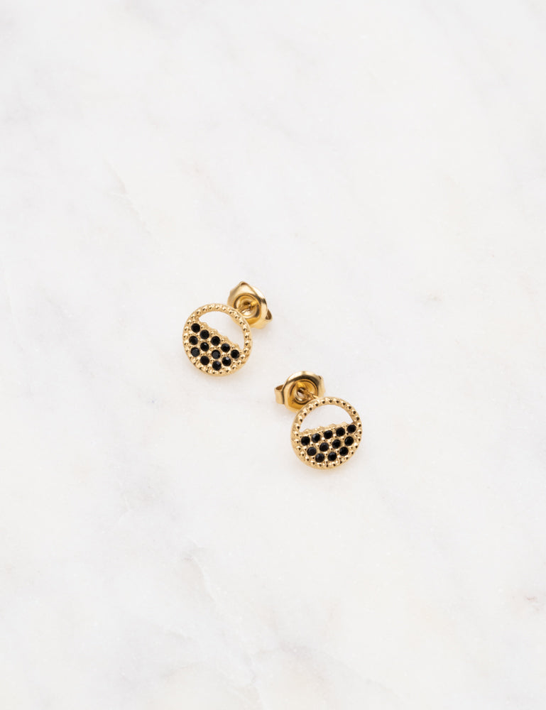 Boucles d'oreilles à puce graphiques ornées de strass. (oxyde de zirconium).