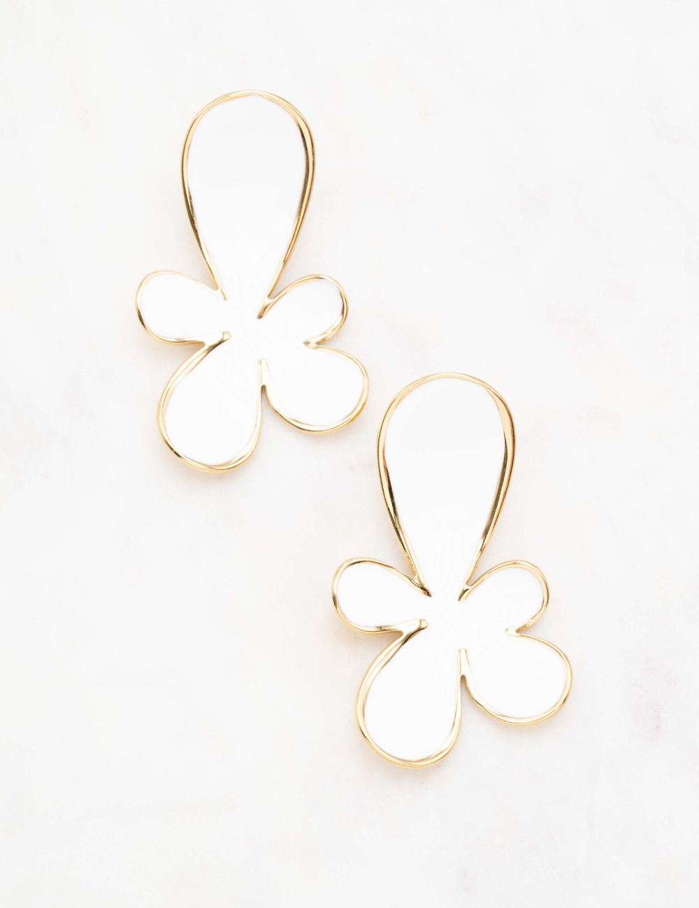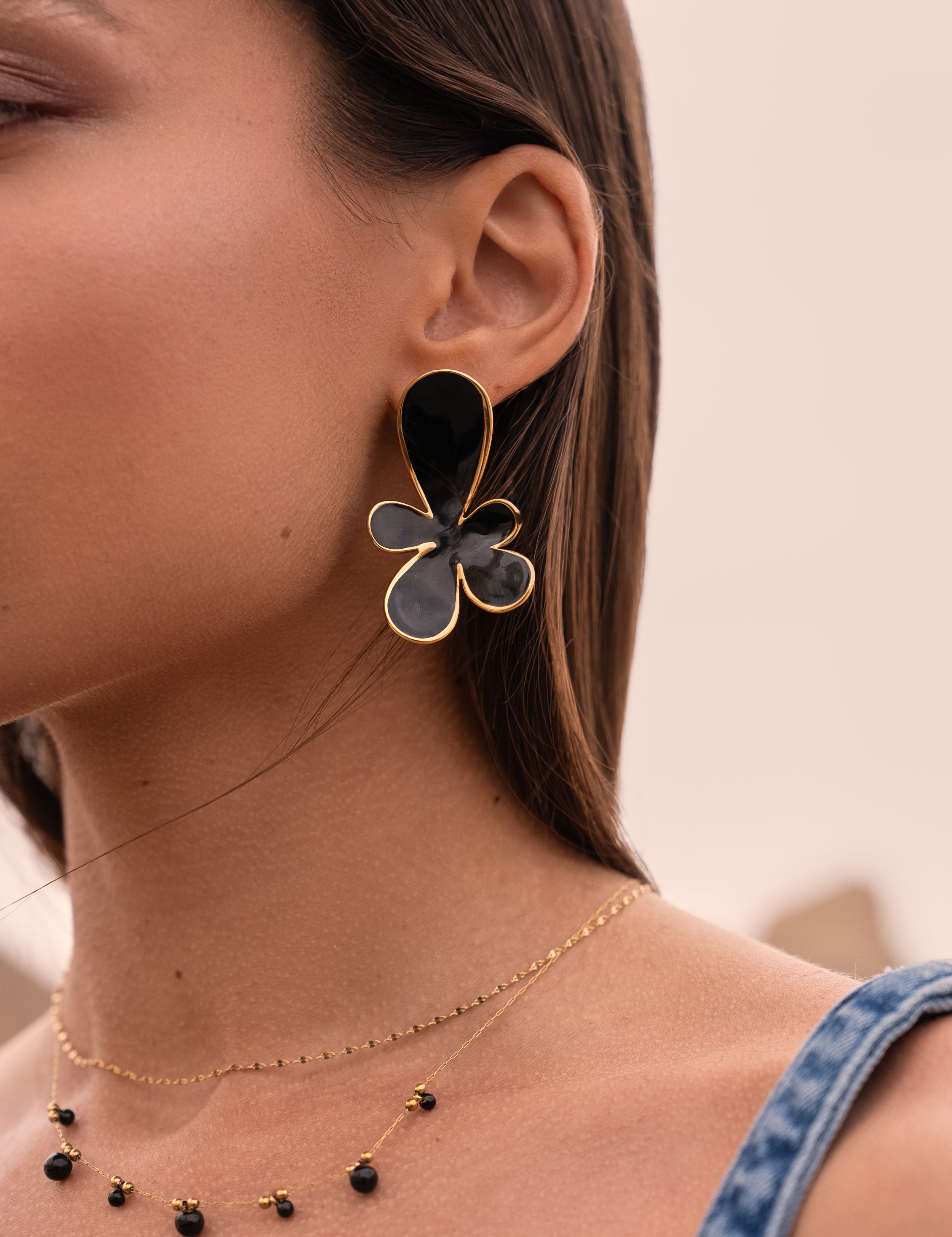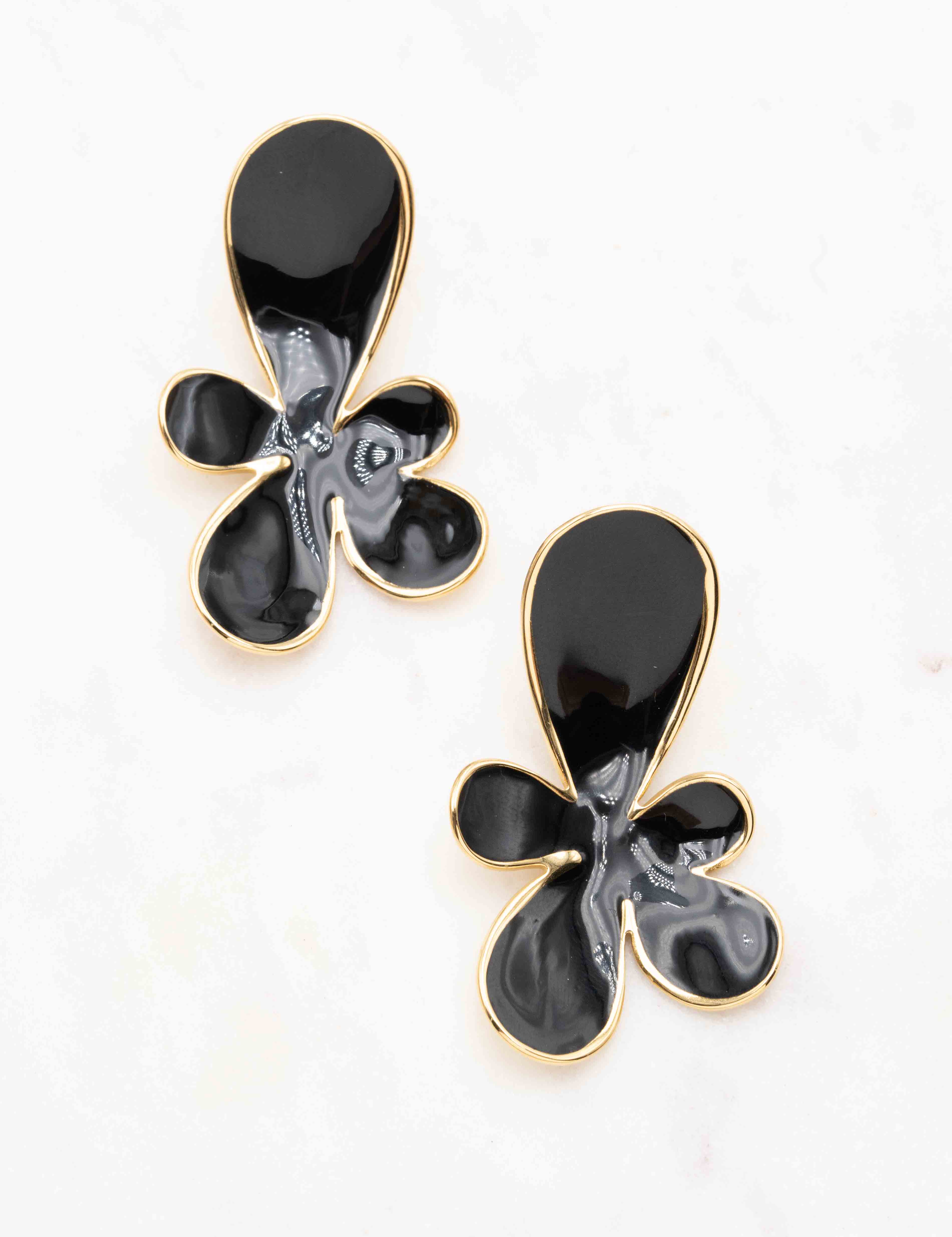 Boucles d'oreilles à puce formant une fleur abstraite émaillée colorée.