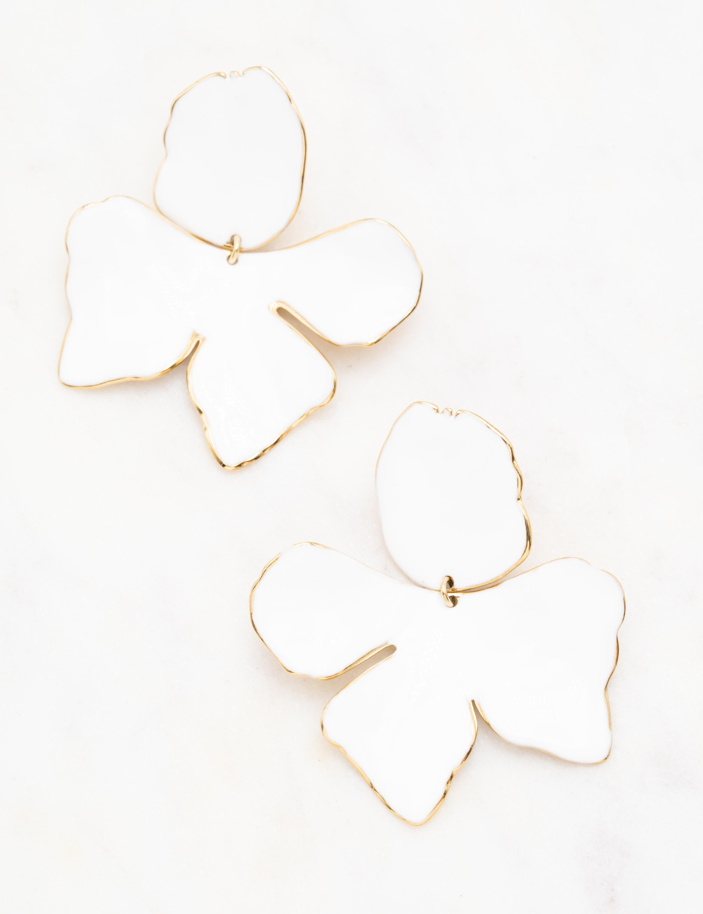 Boucles d'oreilles à puce formant une fleur émaillée colorée.