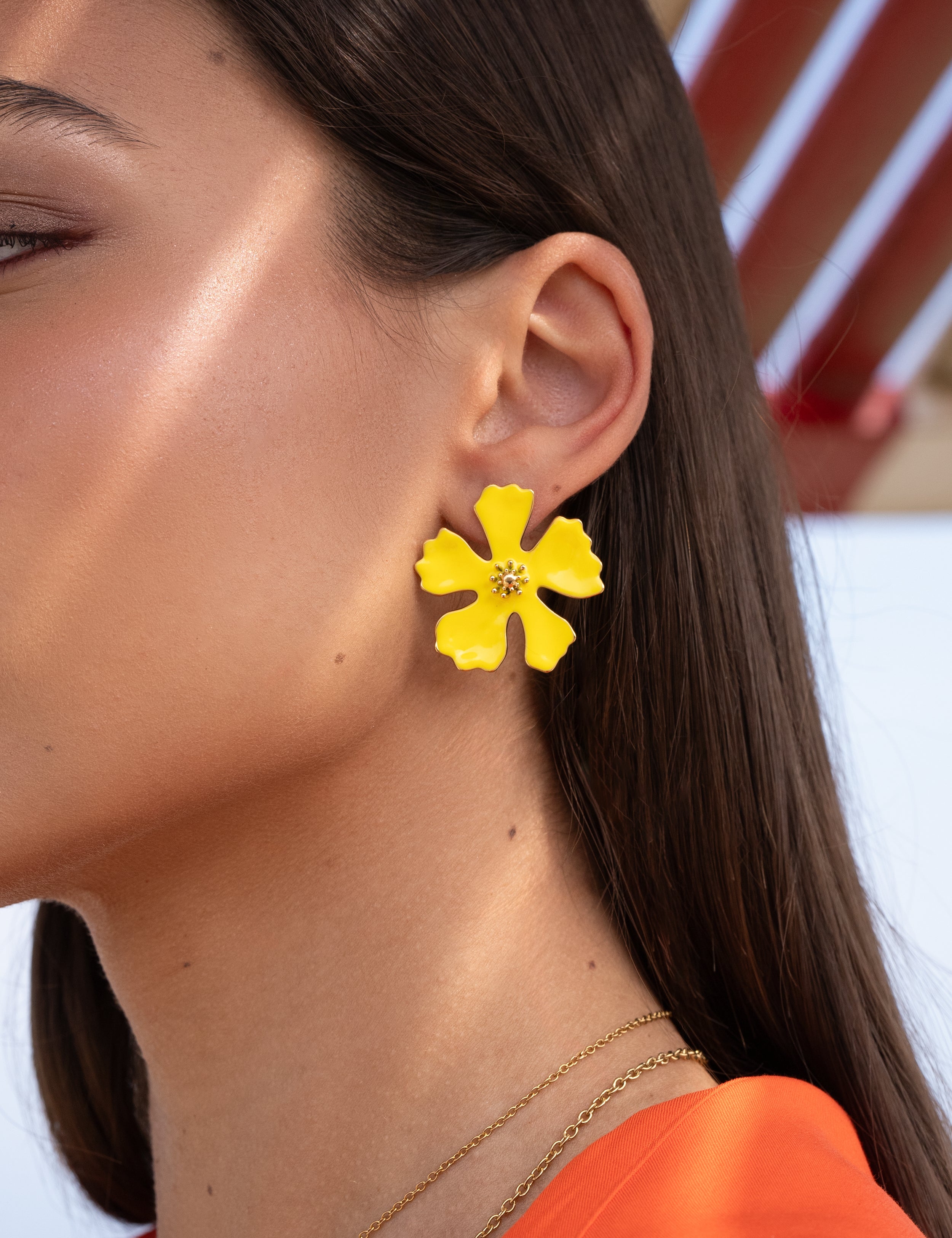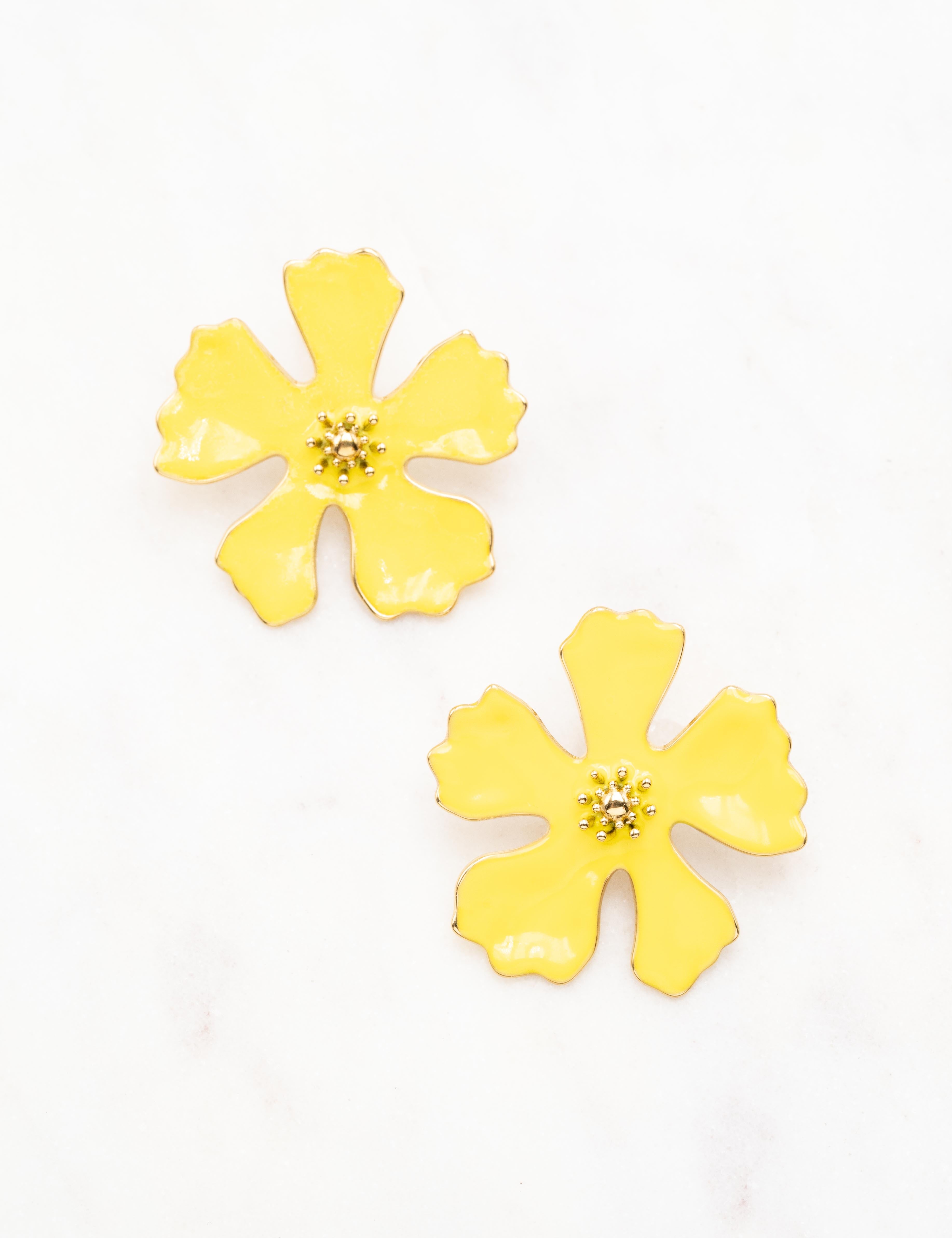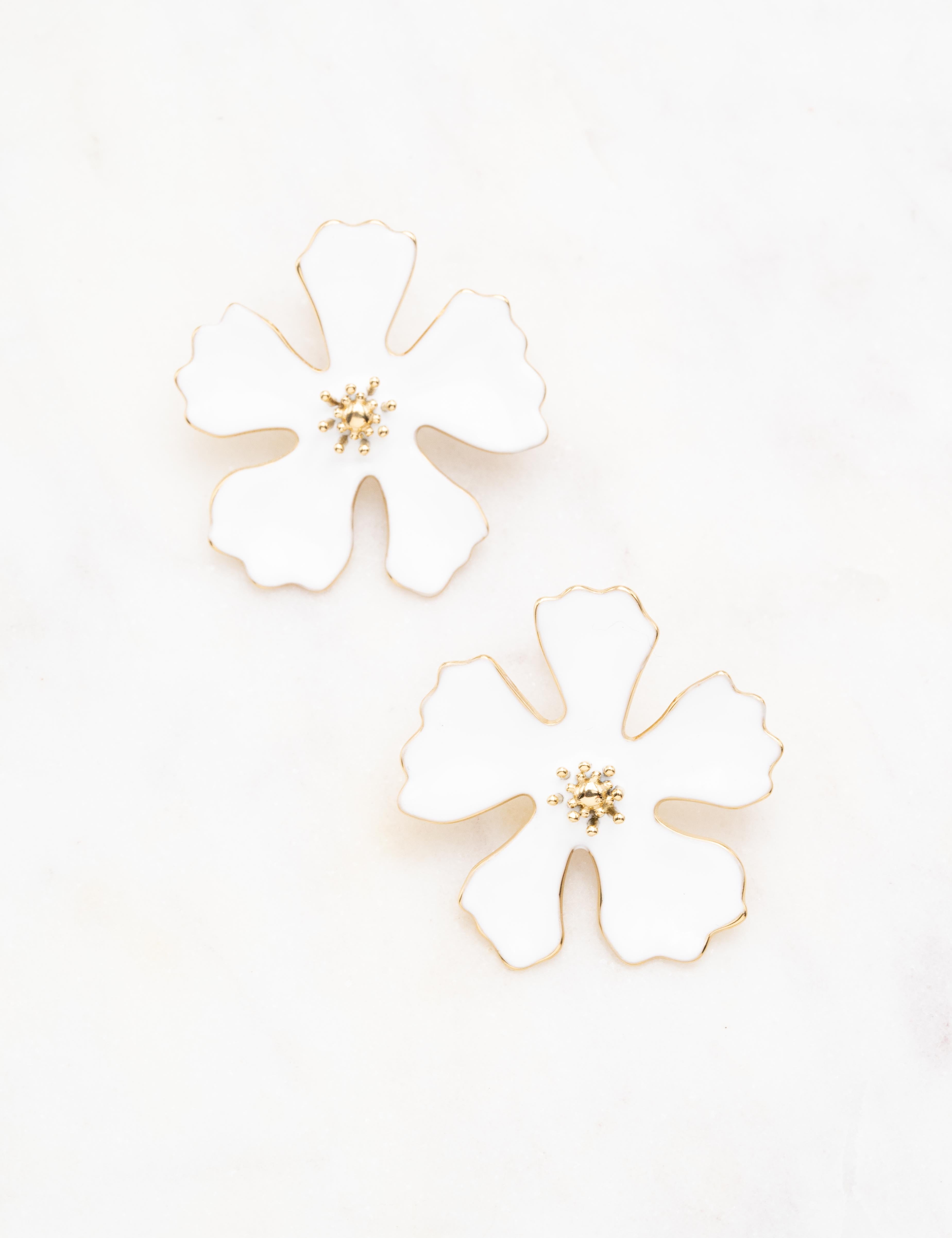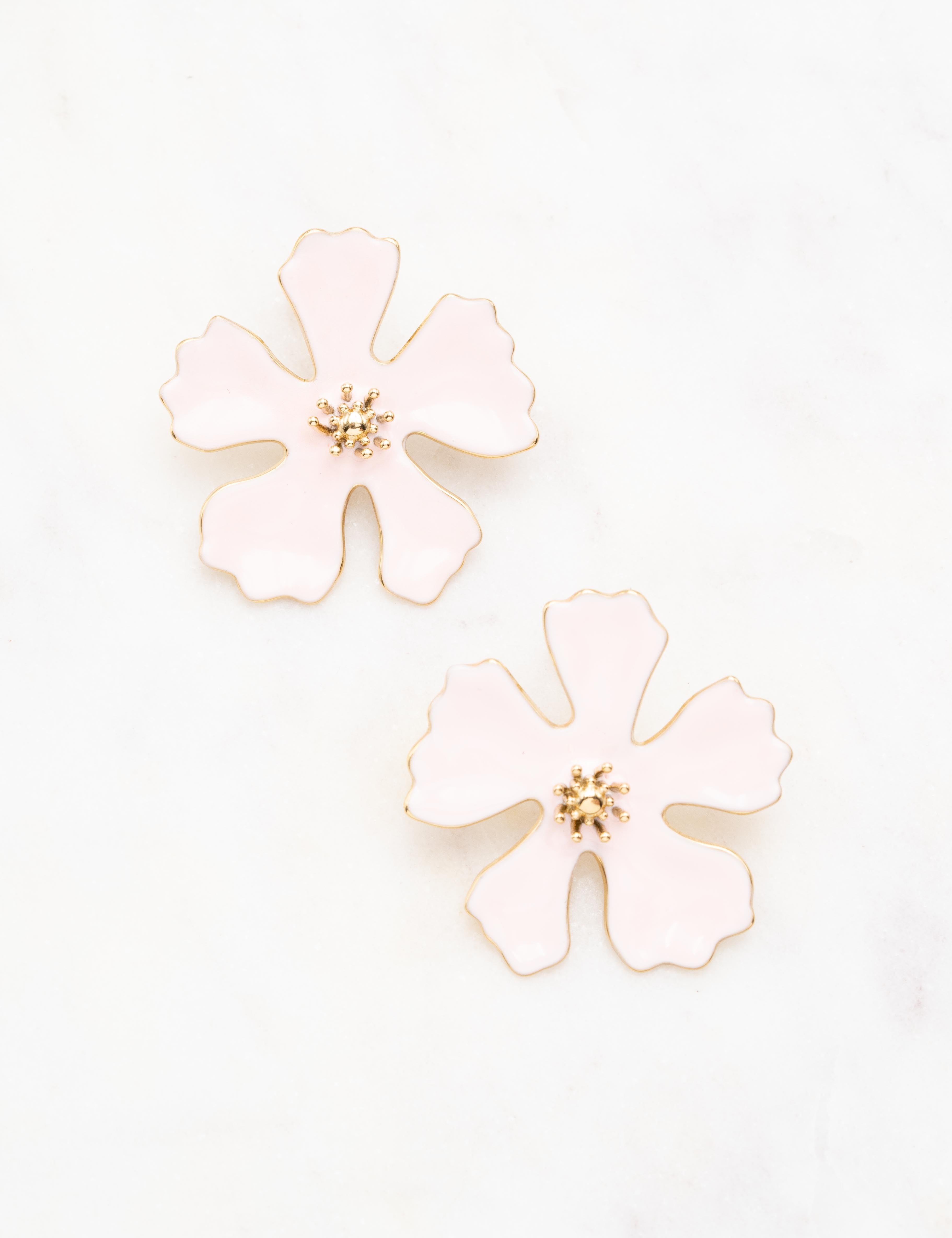 Boucles d'oreilles à puce composées d'une fleur émaillée.