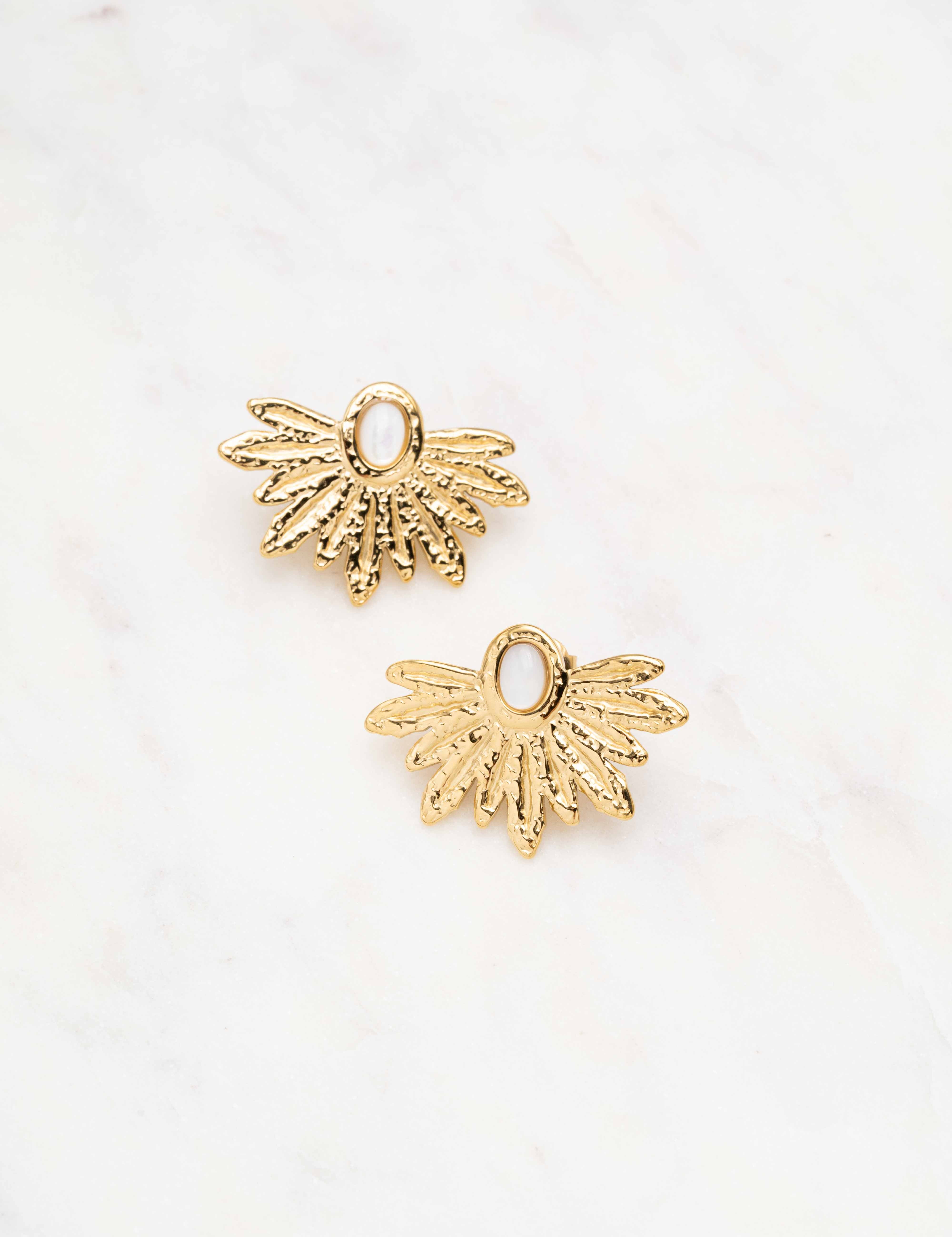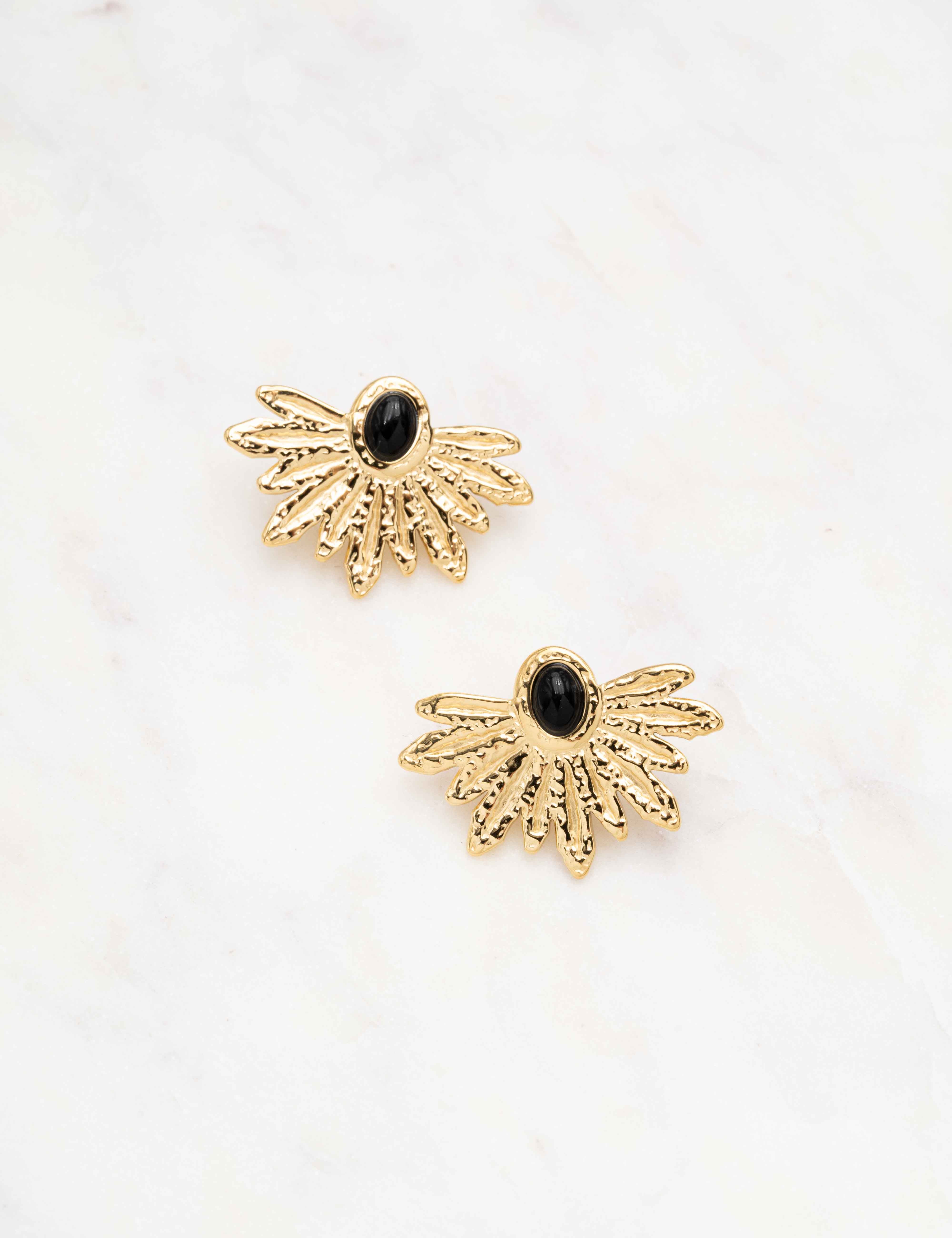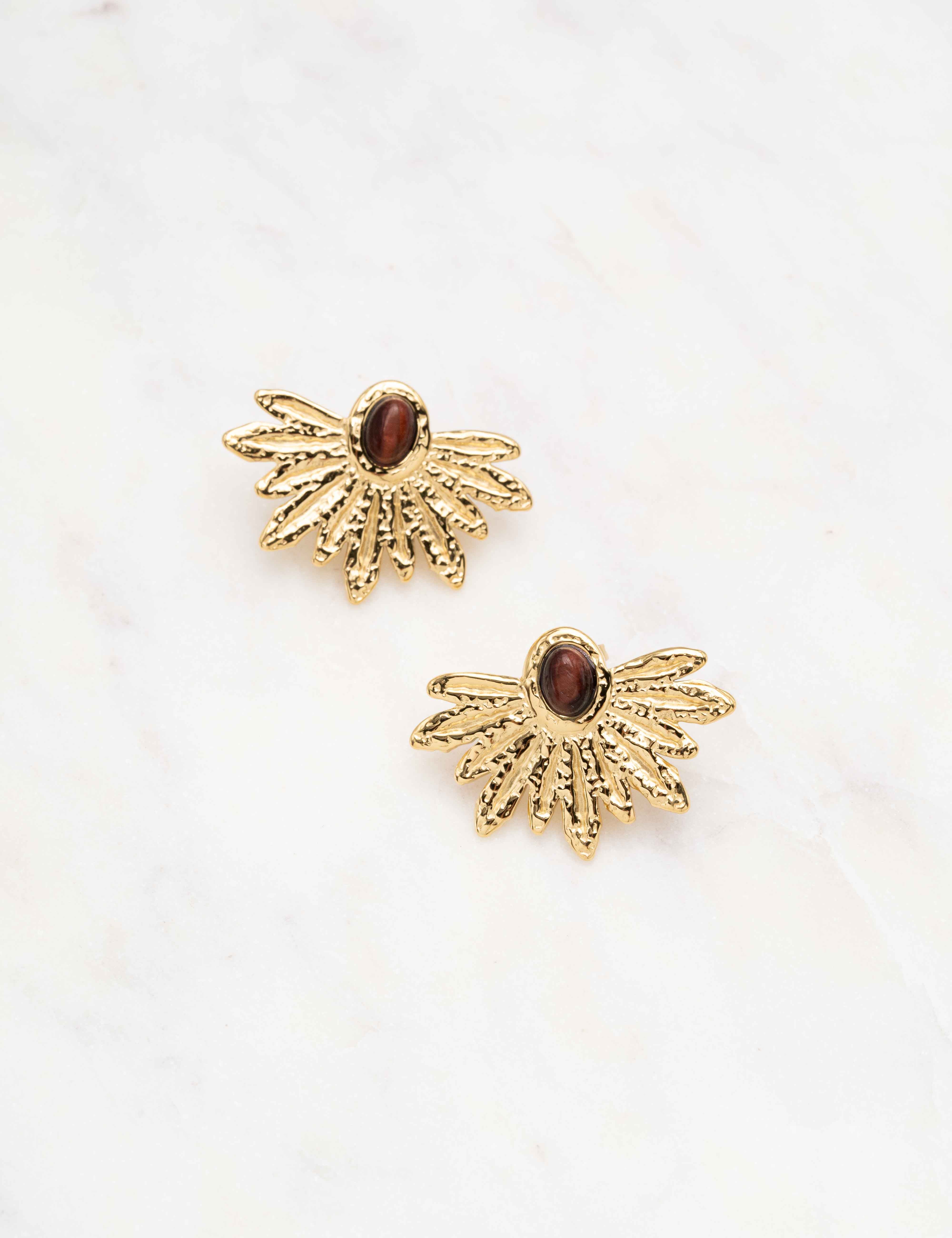 Boucles d'oreilles graphiques à puce composées d'une pièce au motif feuillage ornée d'une pierre naturelle.