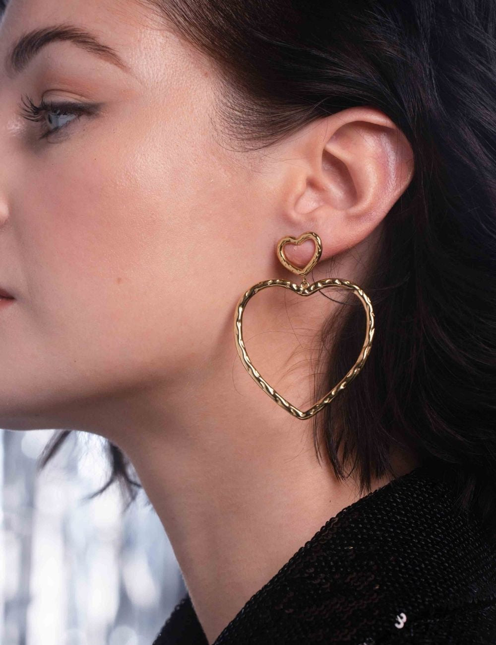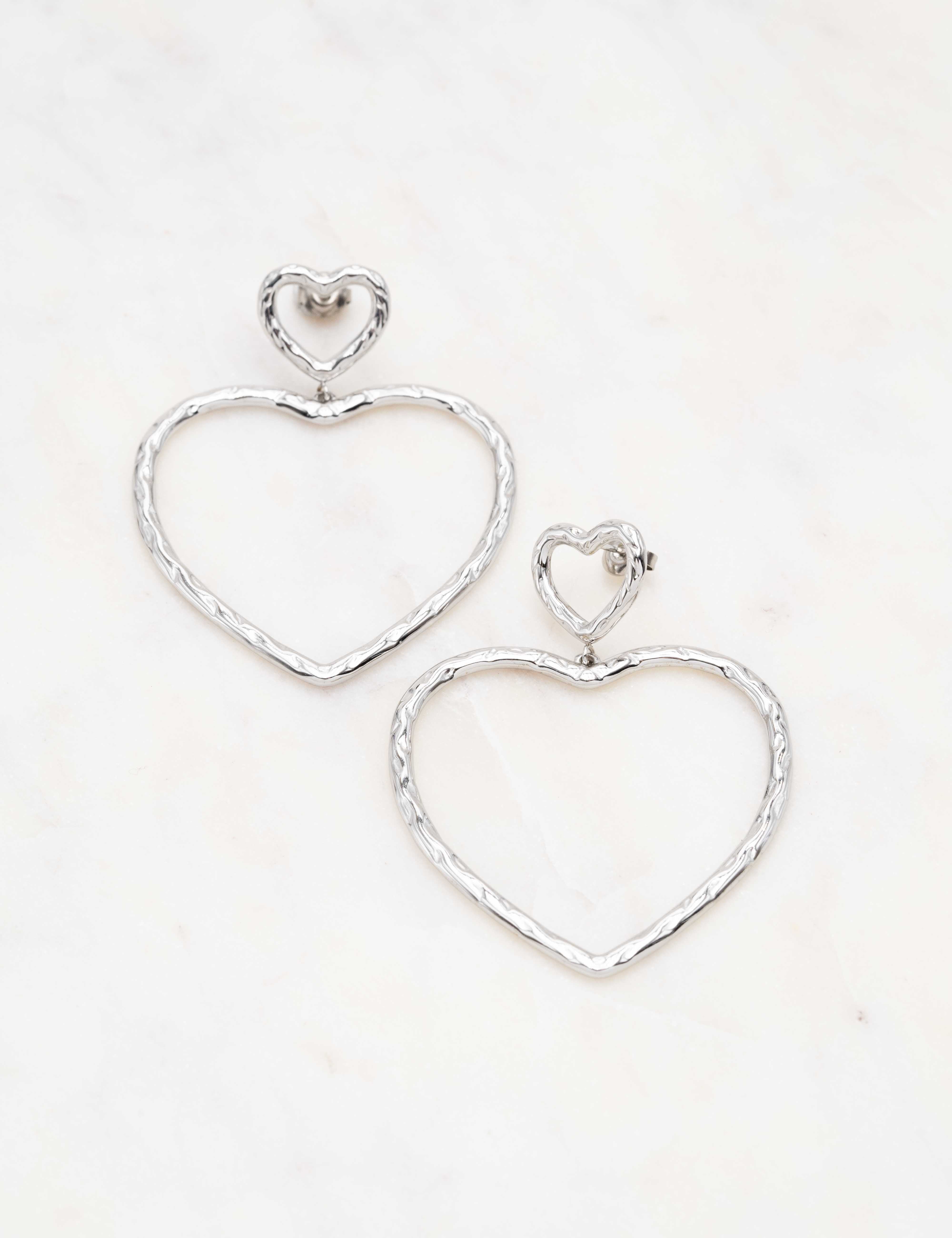 Boucles d'oreilles graphiques à puce composées de deux coeurs martelés.