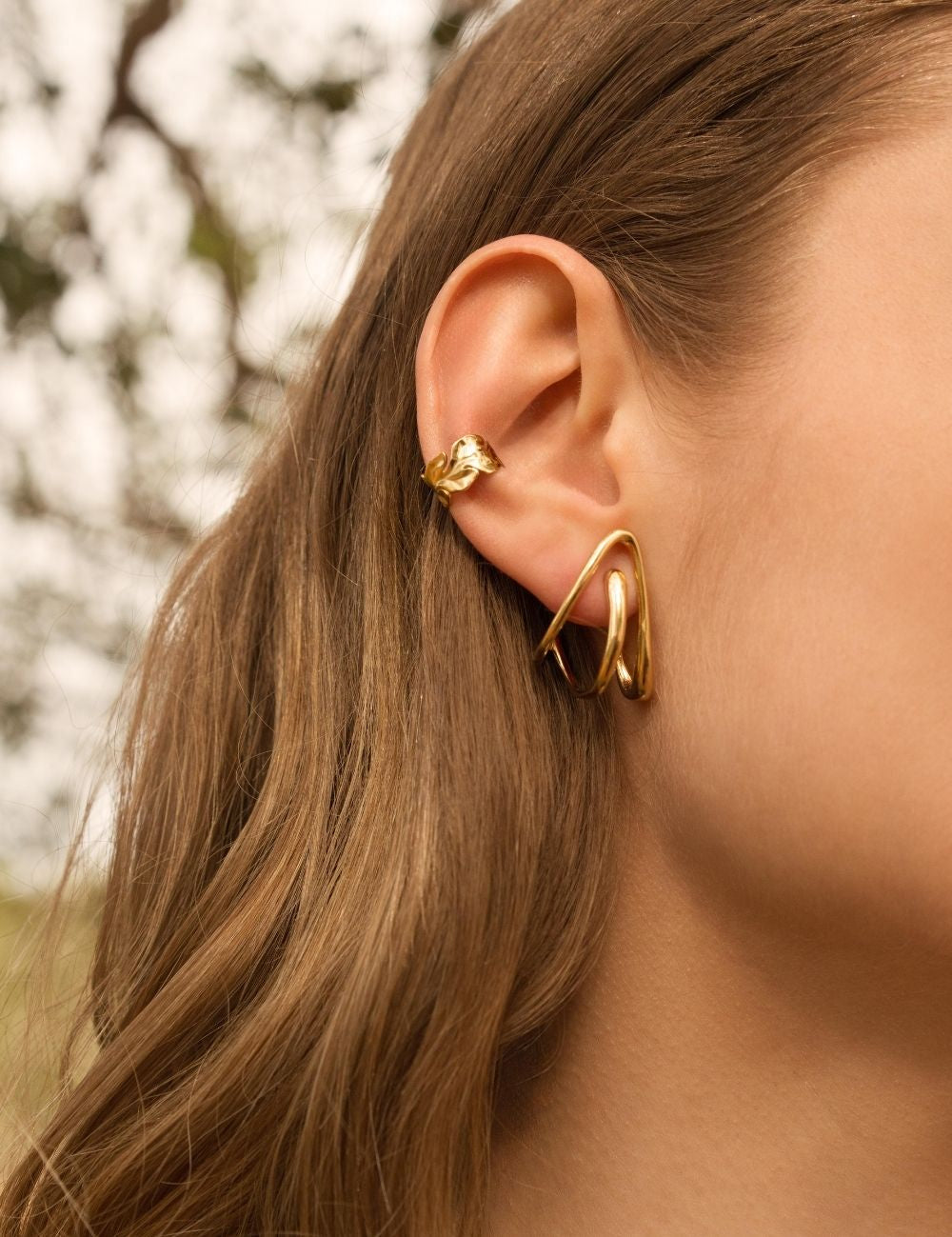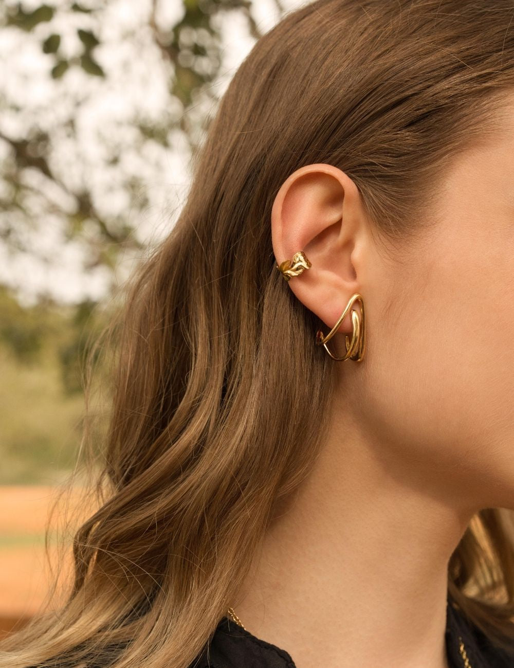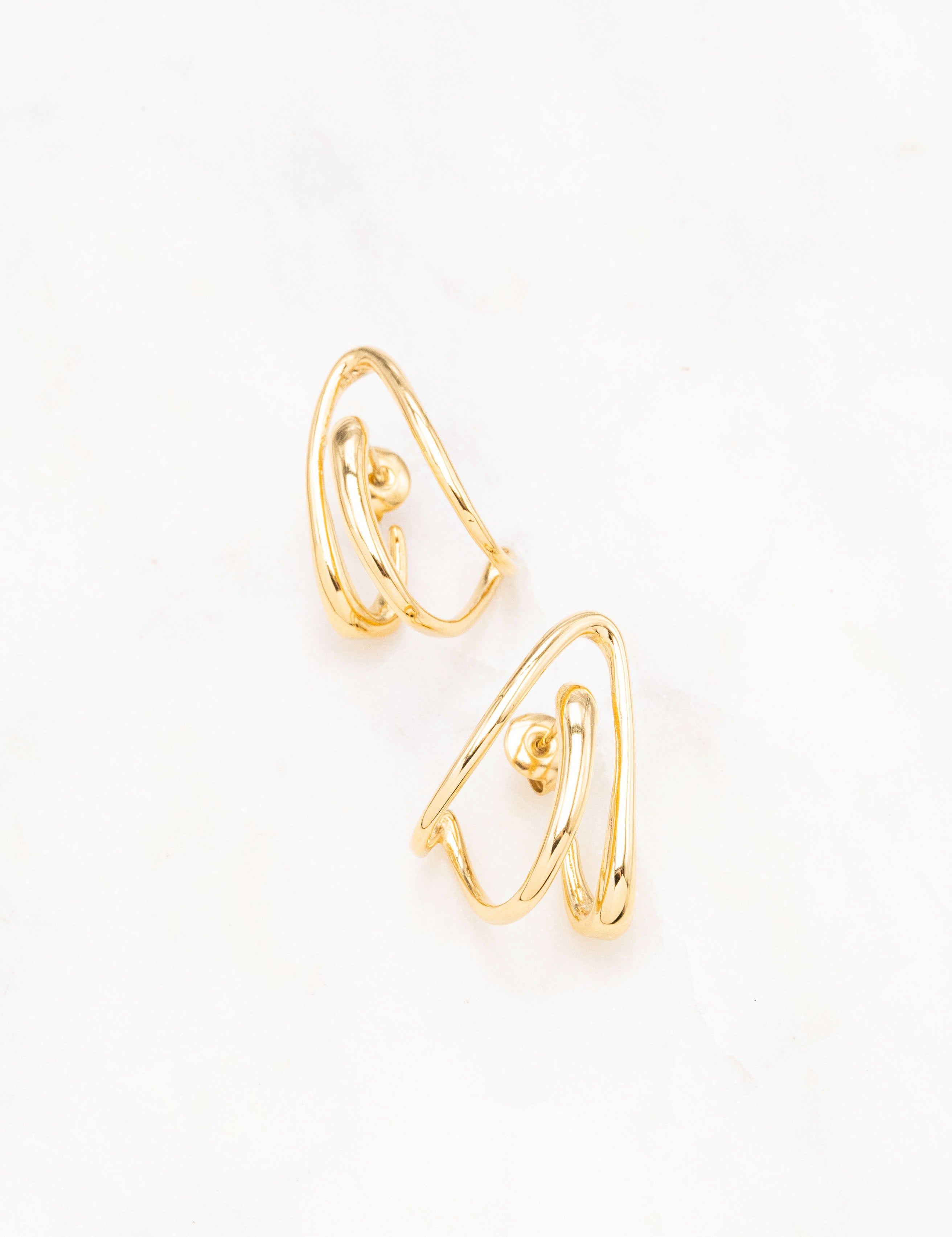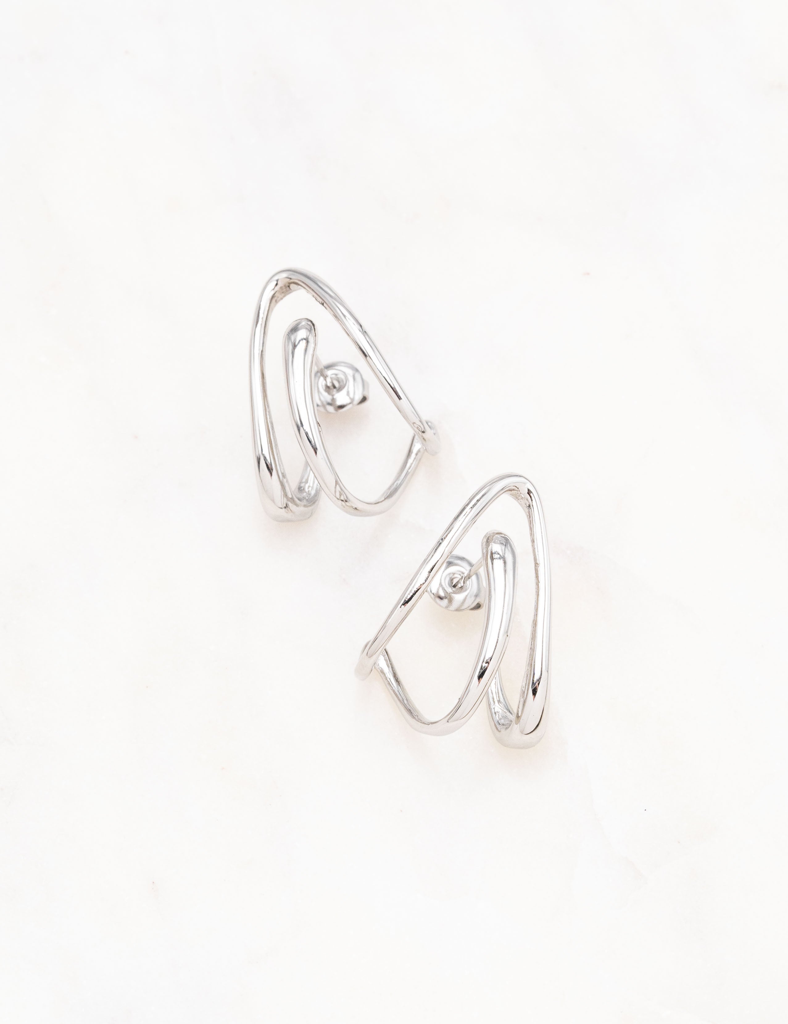 Boucles d'oreilles graphiques type créoles à puce effet multirangs (3 rangs).