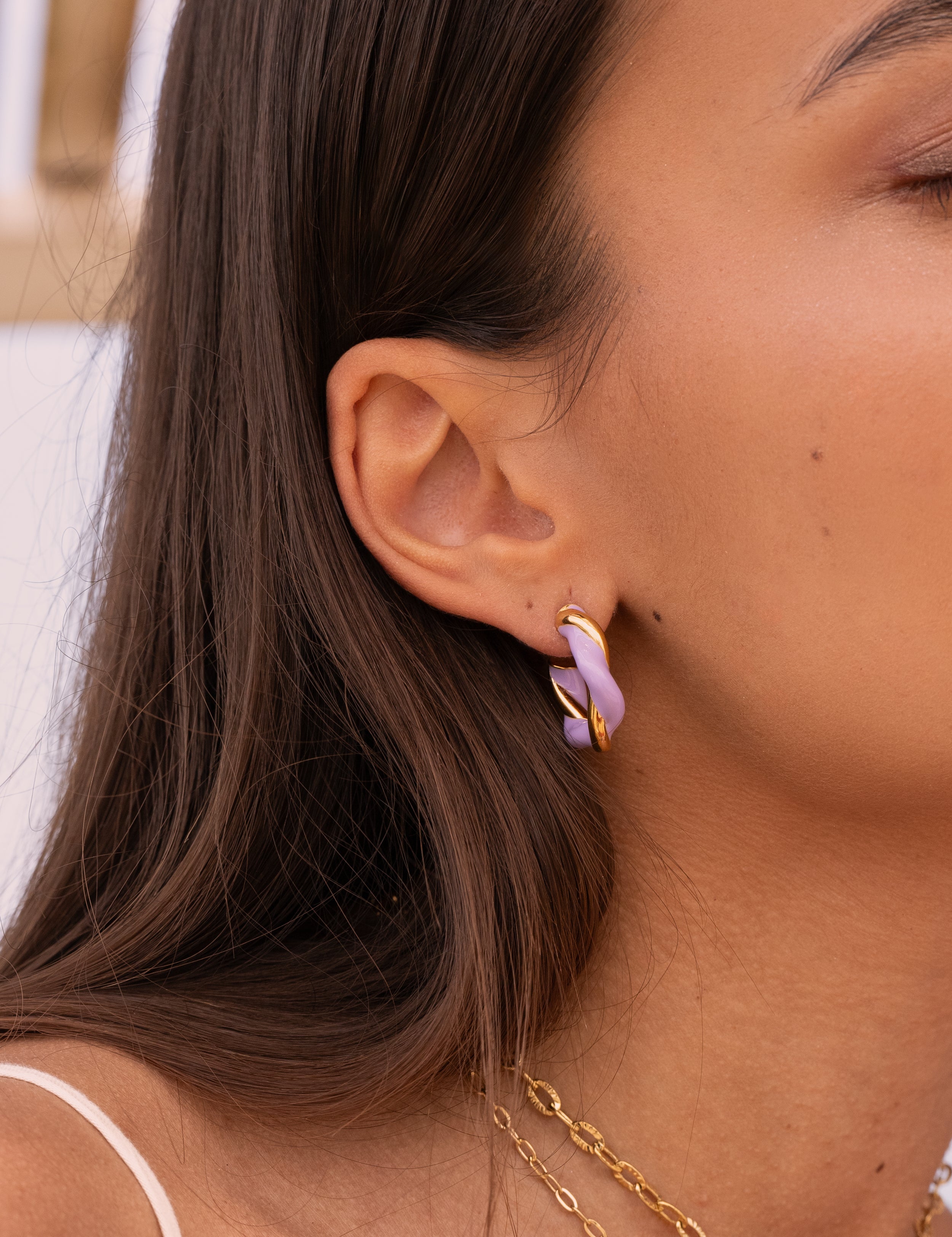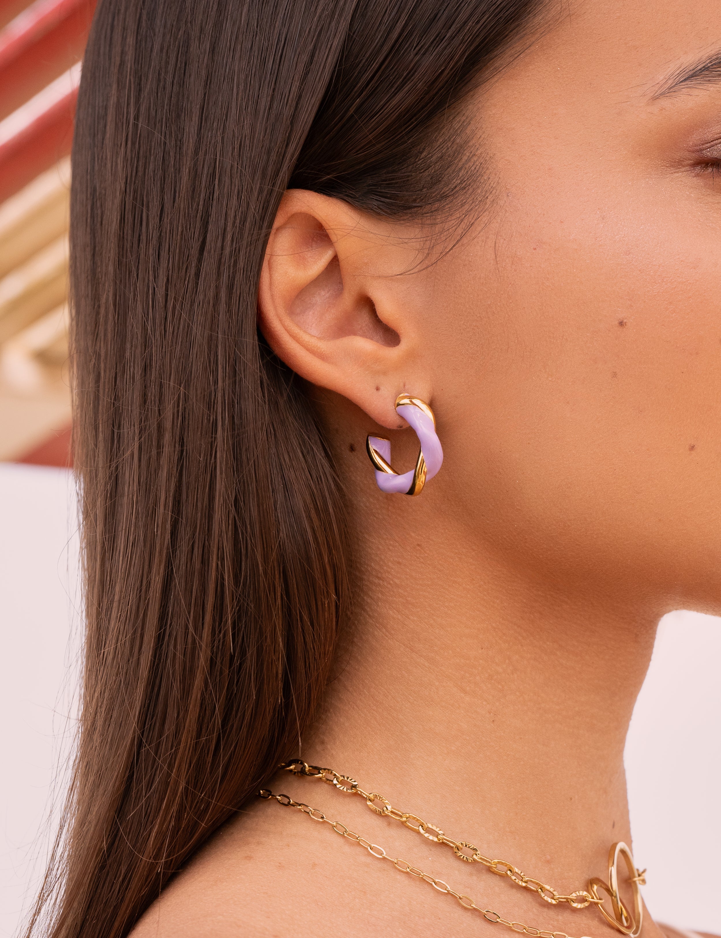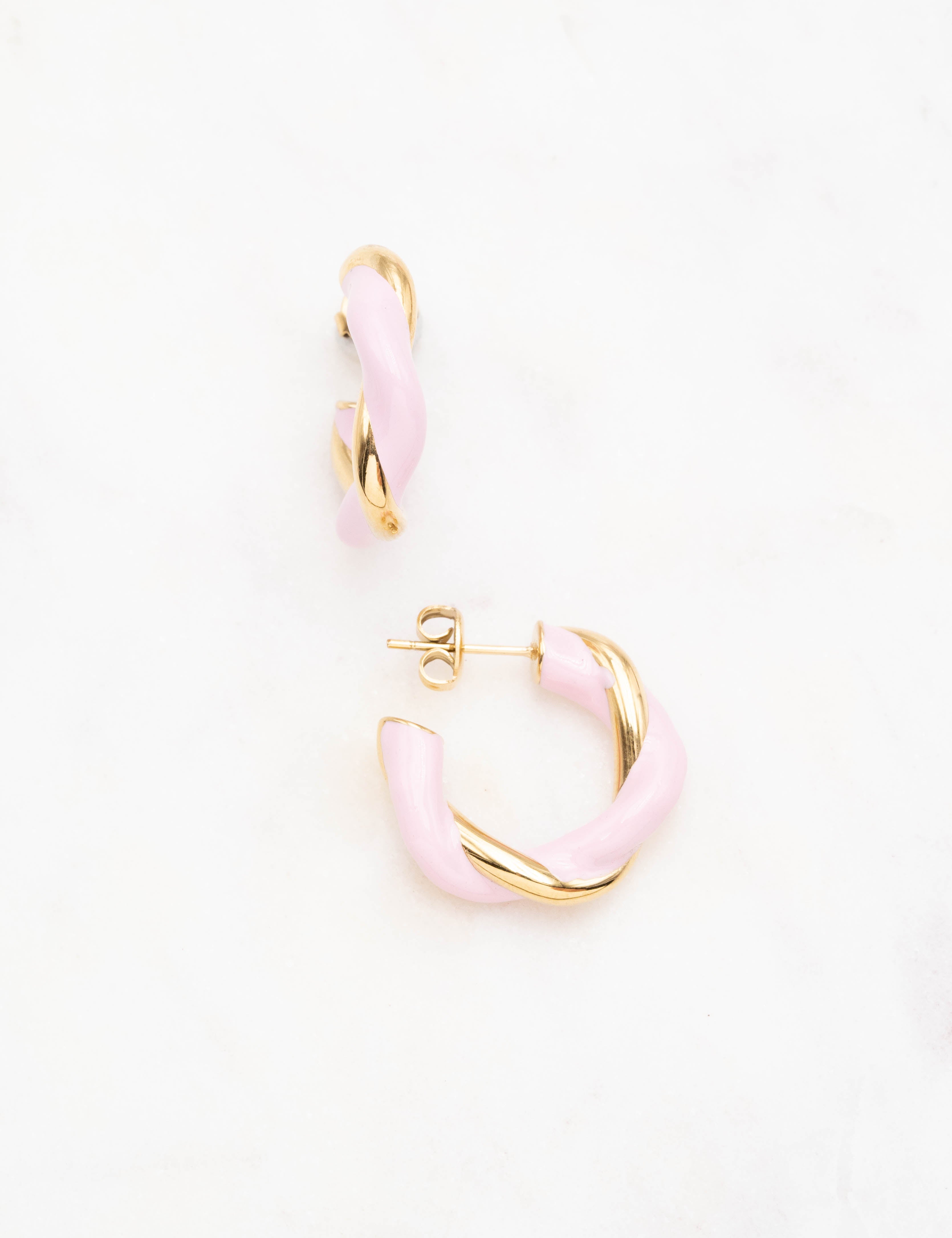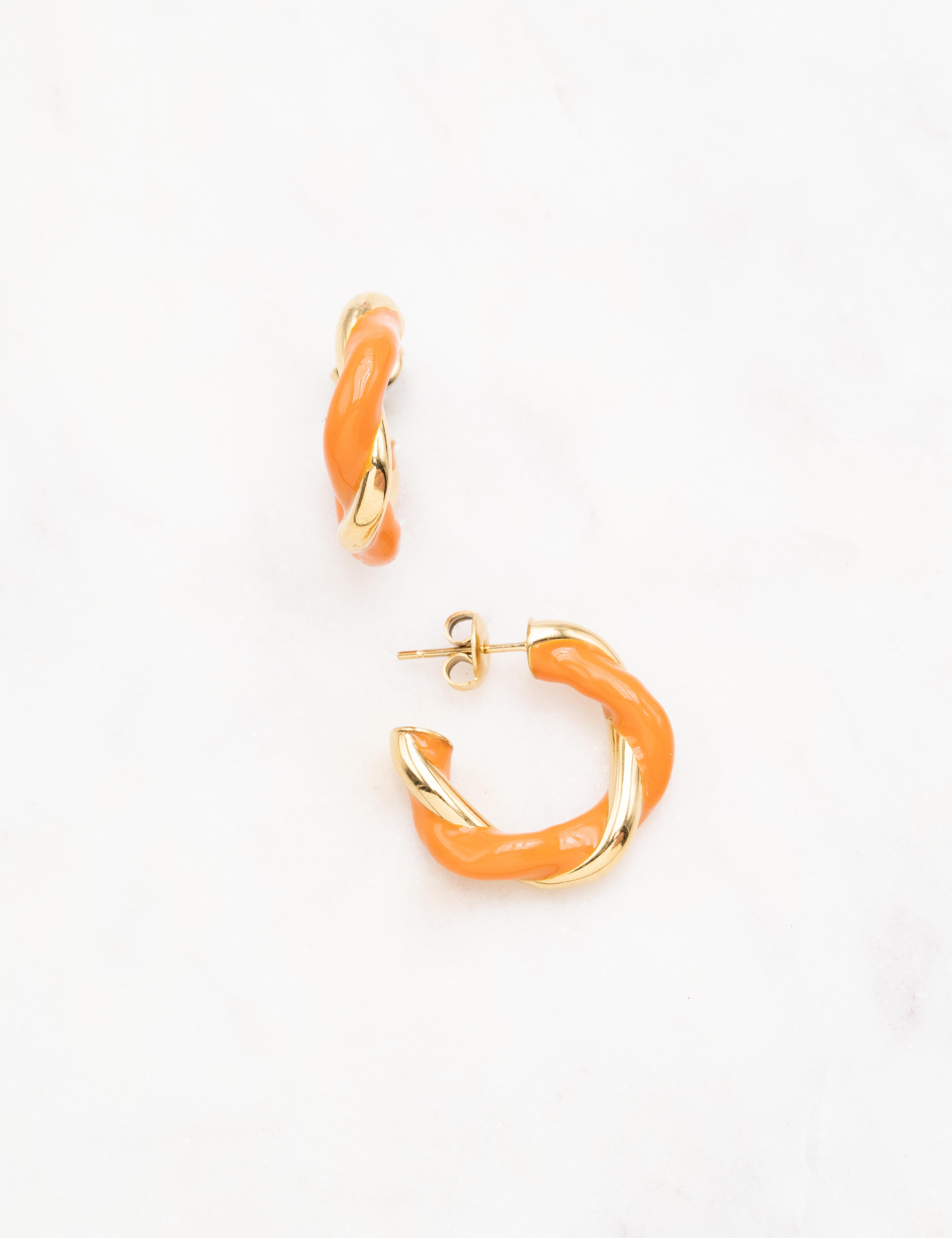 Boucles d'oreilles type créoles à puce torsadées émaillées colorées.