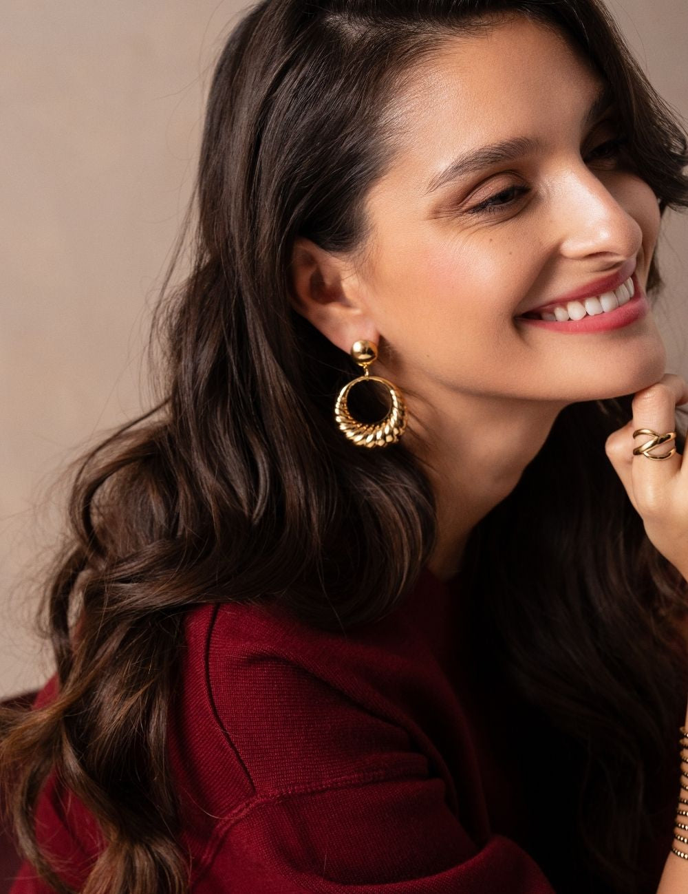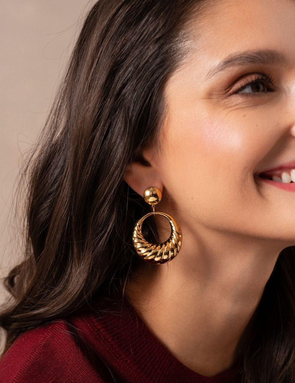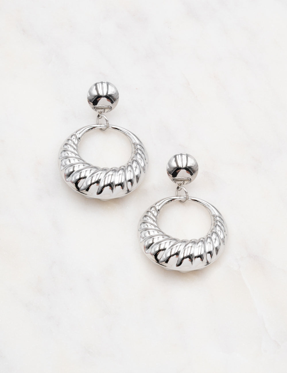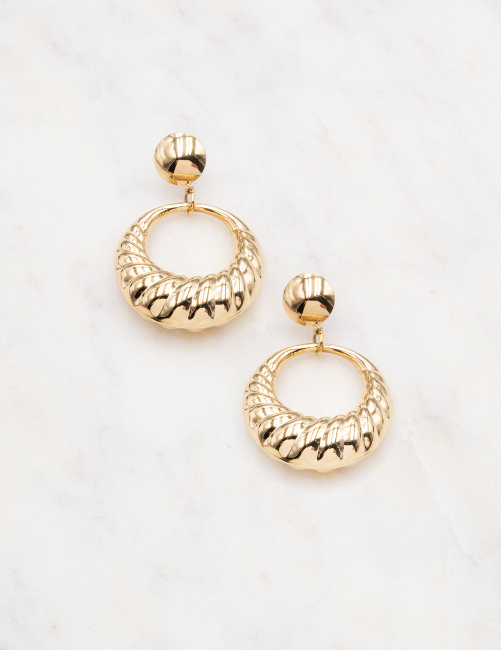 Boucles d'oreilles graphiques à puce composées d'un pendant anneau bombé et rainuré.