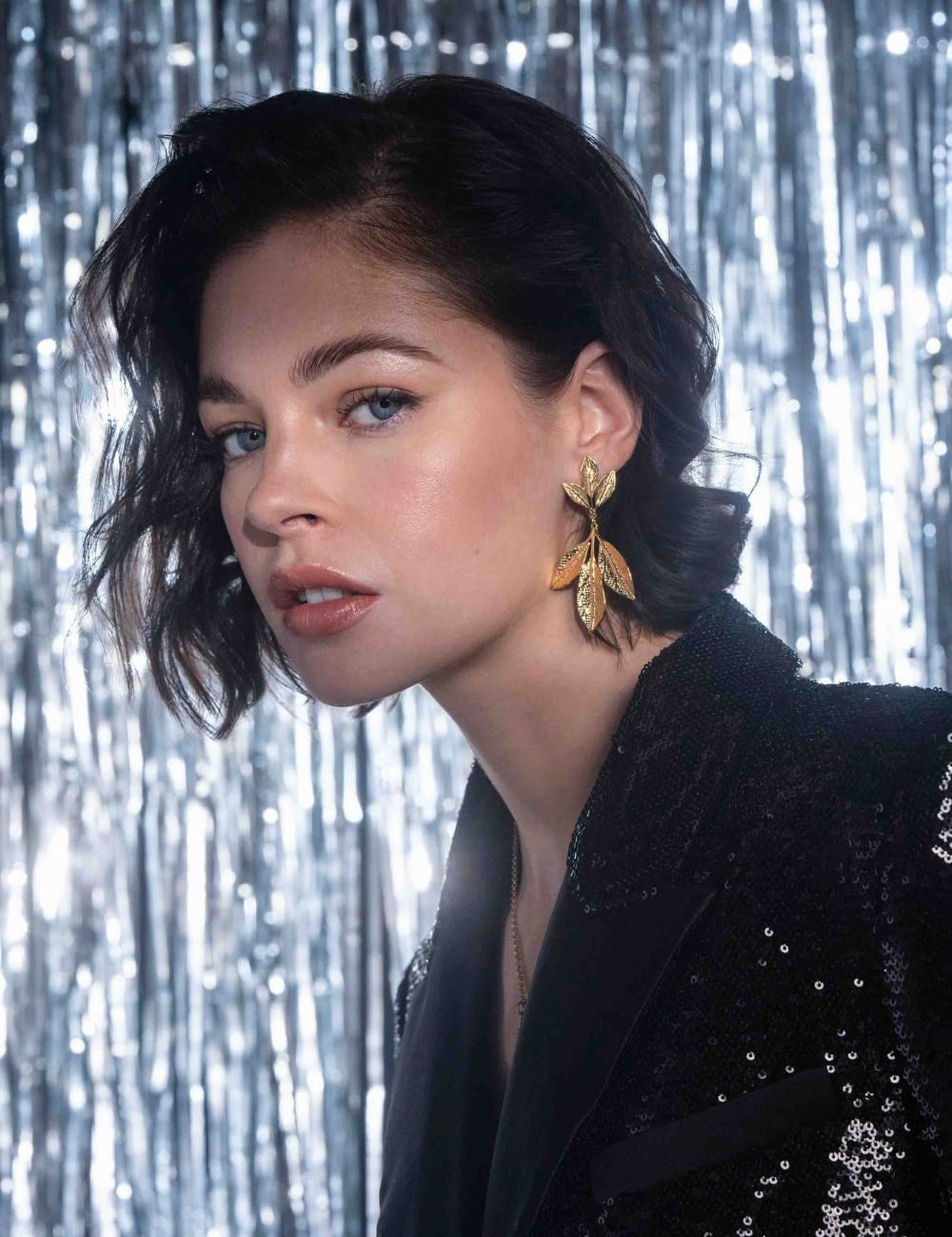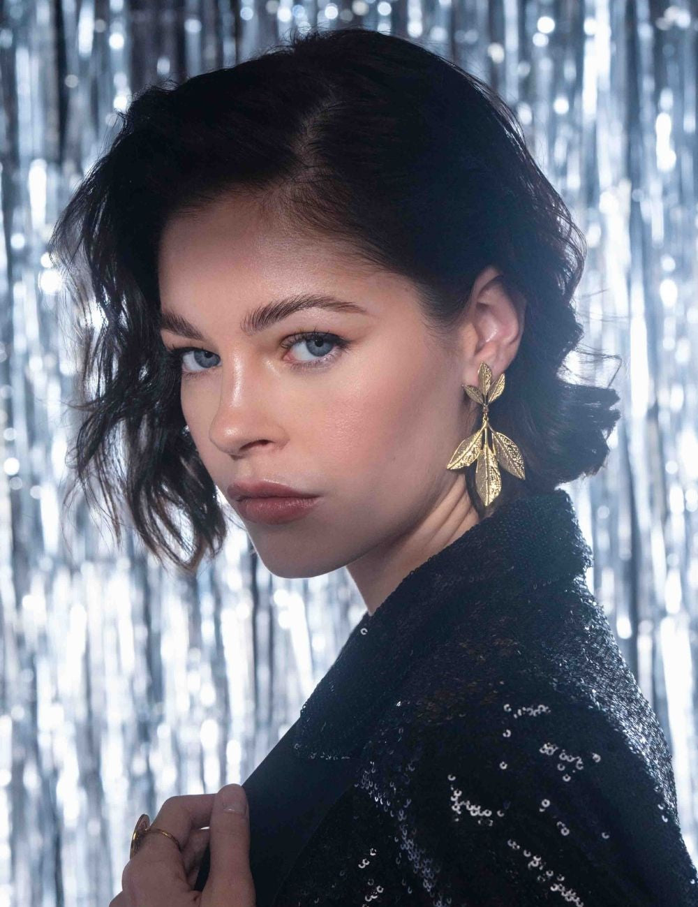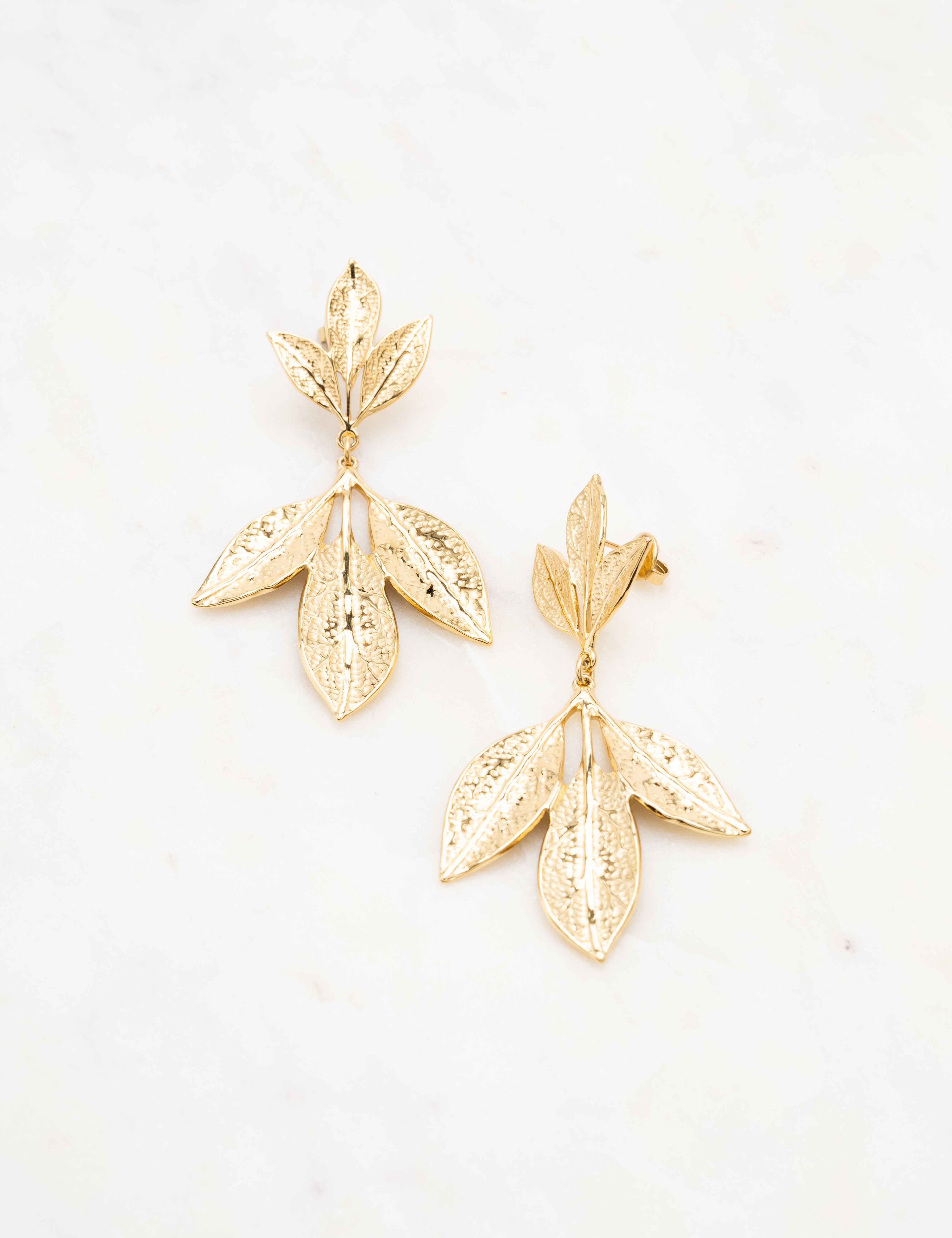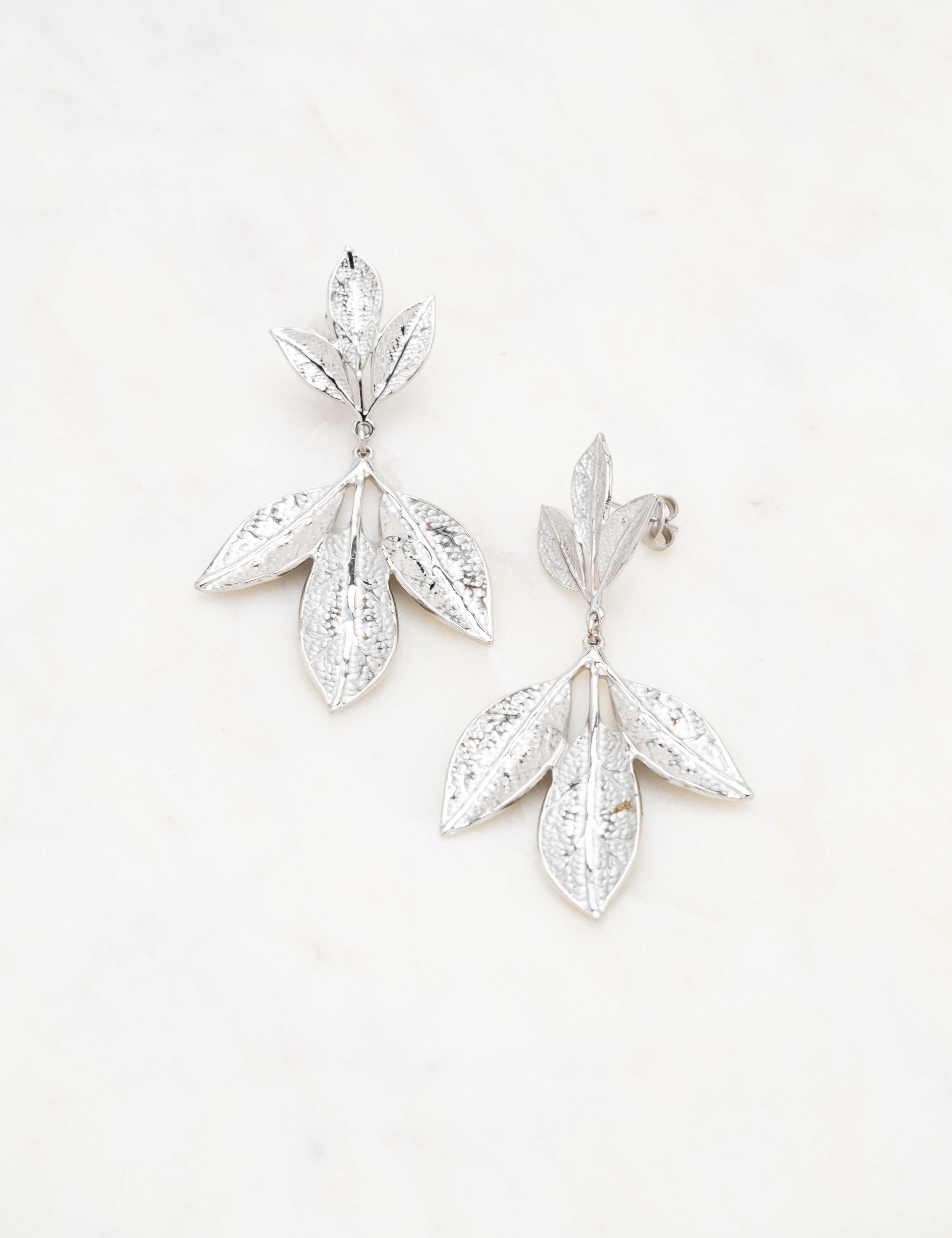 Boucles d'oreilles graphiques à puce composées de six feuilles texturées.