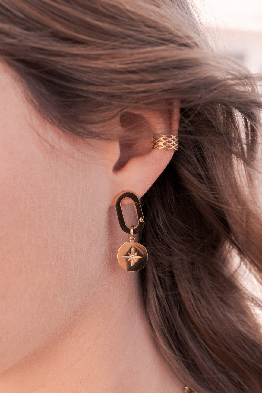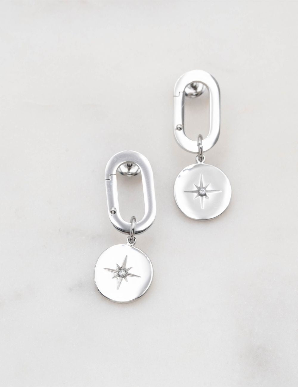 Boucles d'oreilles à puce avec un maillon et une pampille étoilé ornée d'un petit strass zirconium.