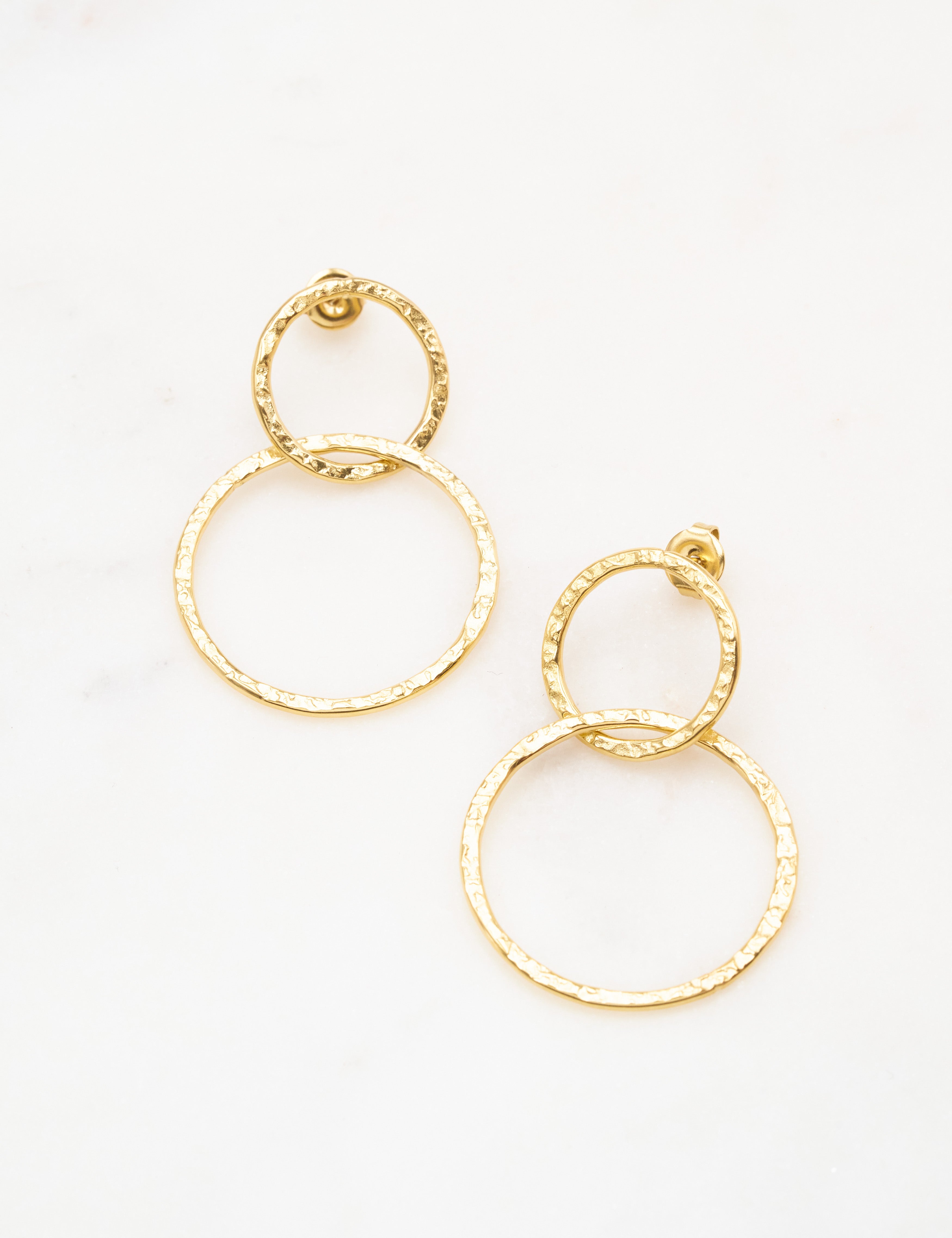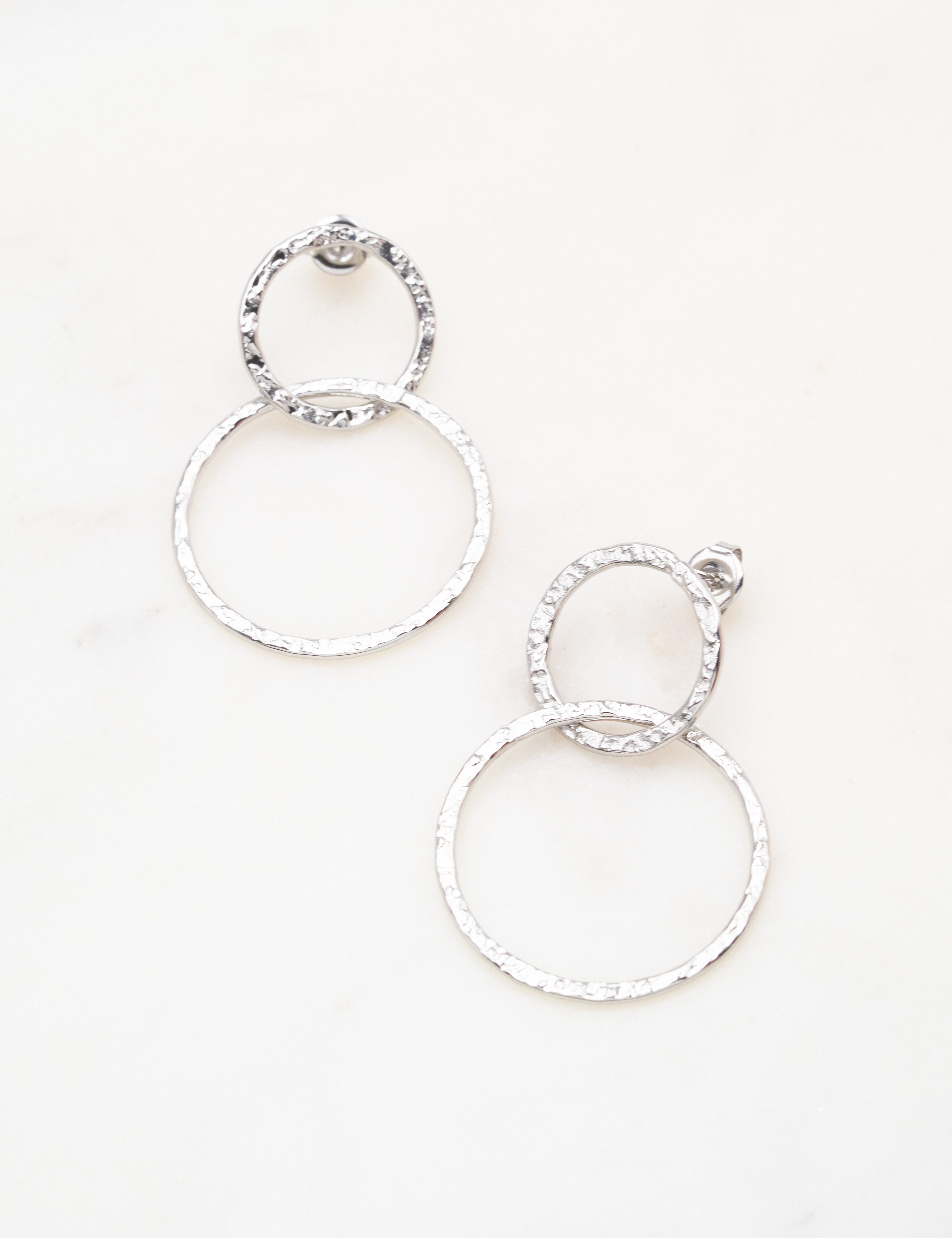 Boucles d'oreilles à puce avec maillons texturés et embellies de deux anneaux martelés. Fermoir papillon.