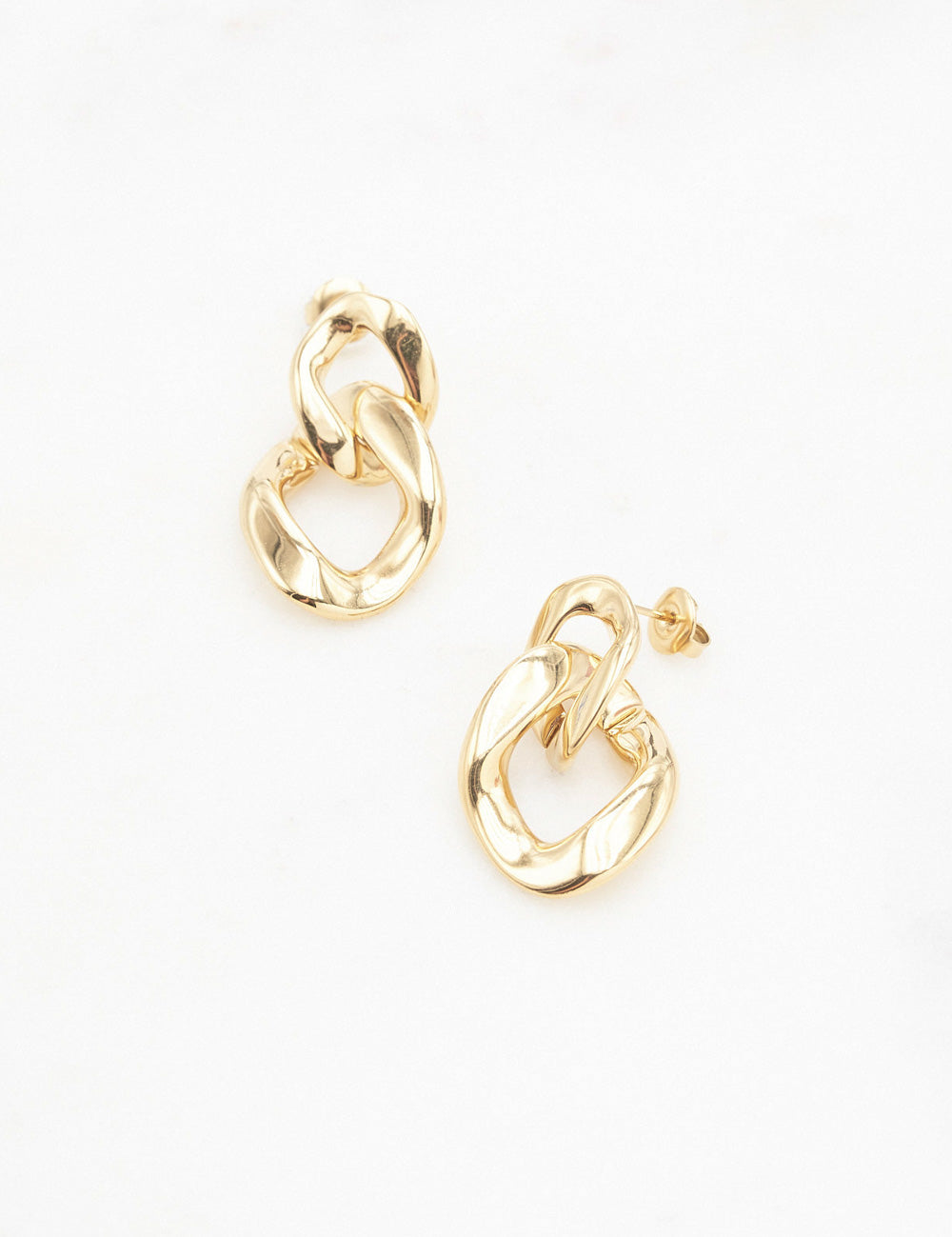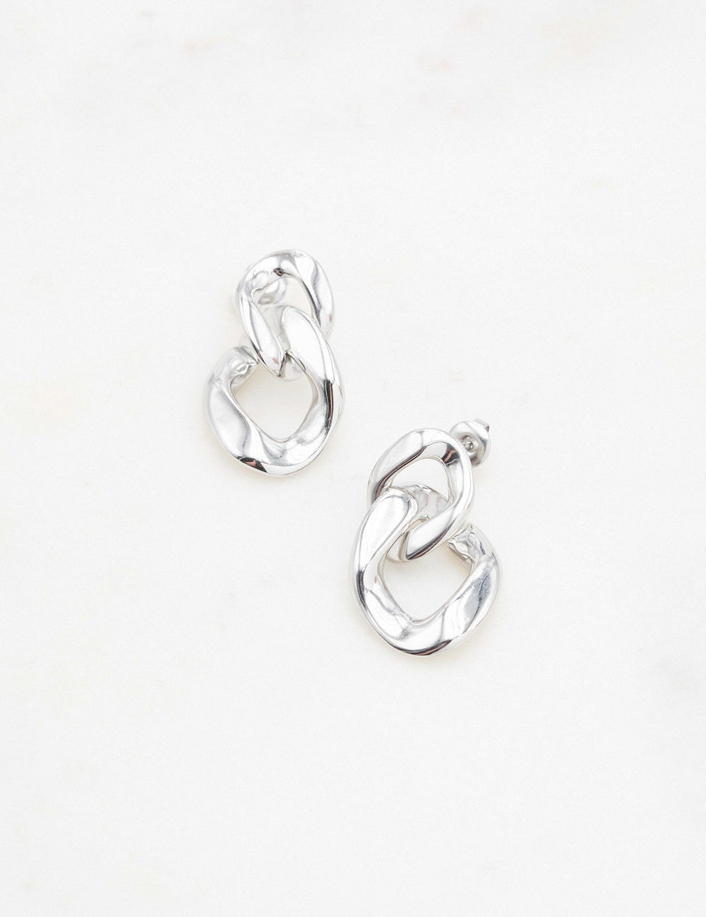 Boucles d'oreilles graphiques à puce composées de deux anneaux texturés. Fermoir papillon.