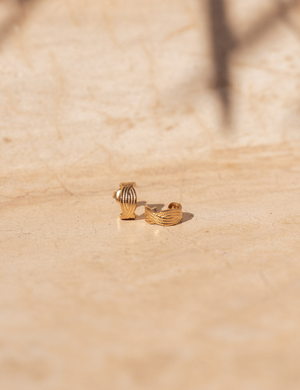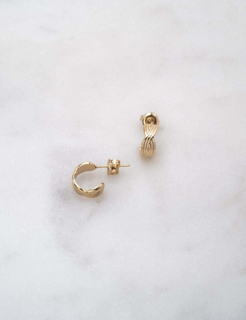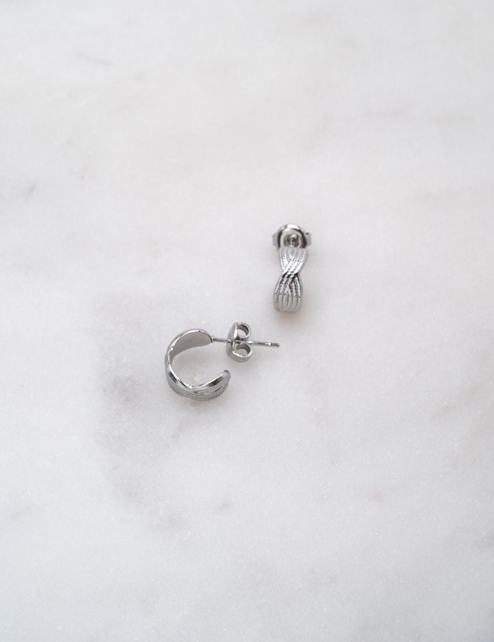 Boucles d'oreilles type créoles à puce effet croisé . Disponibles en doré et argenté.