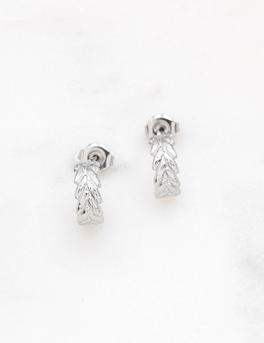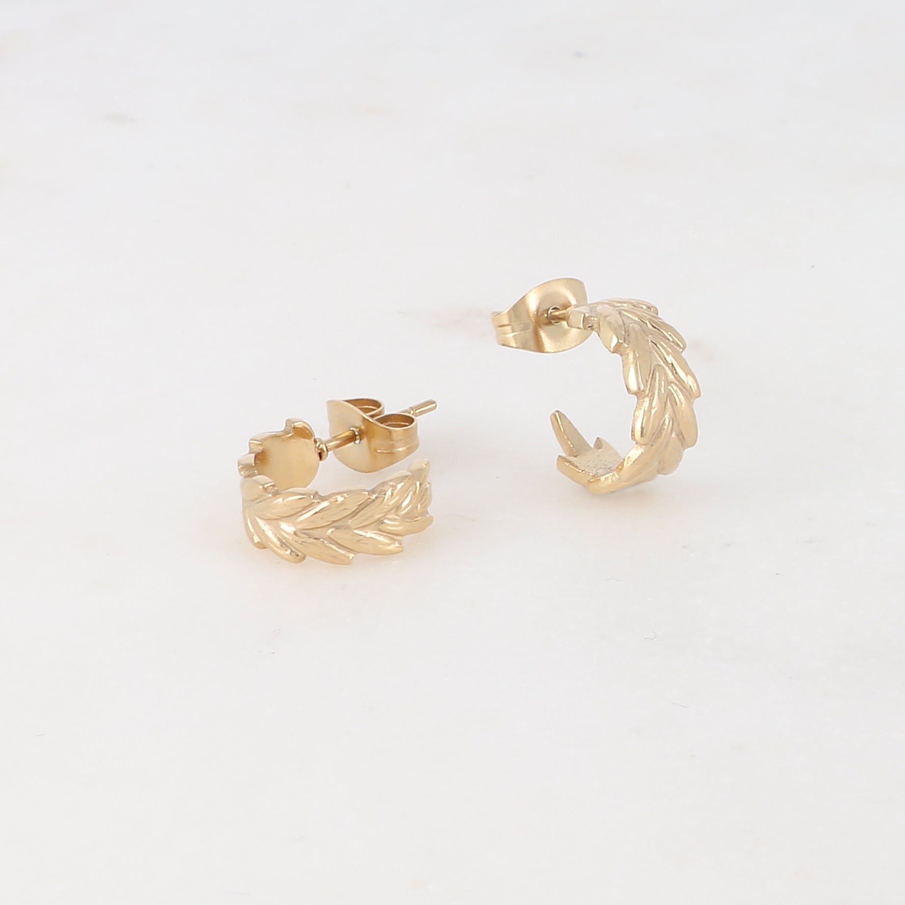 Boucles d'oreilles type créoles à puce effet feuillage.