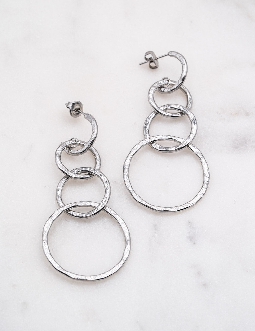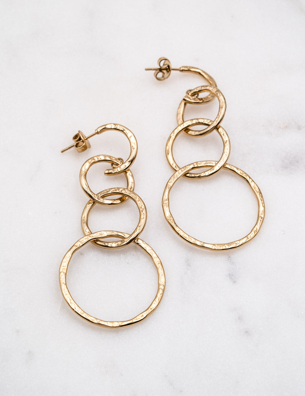 Boucles d'oreilles à crochet composées de multi anneaux texturées .