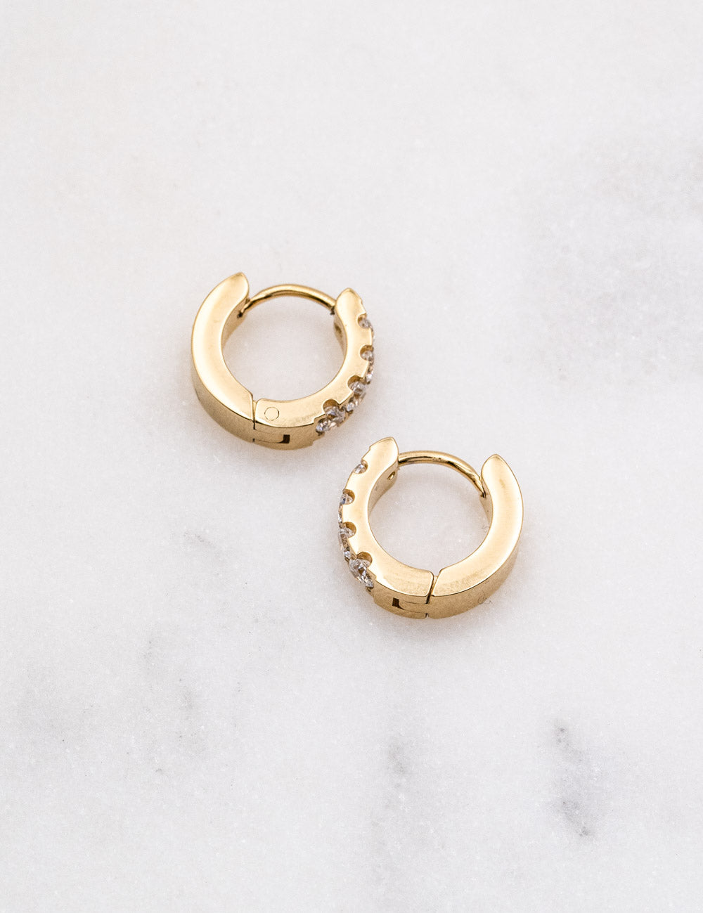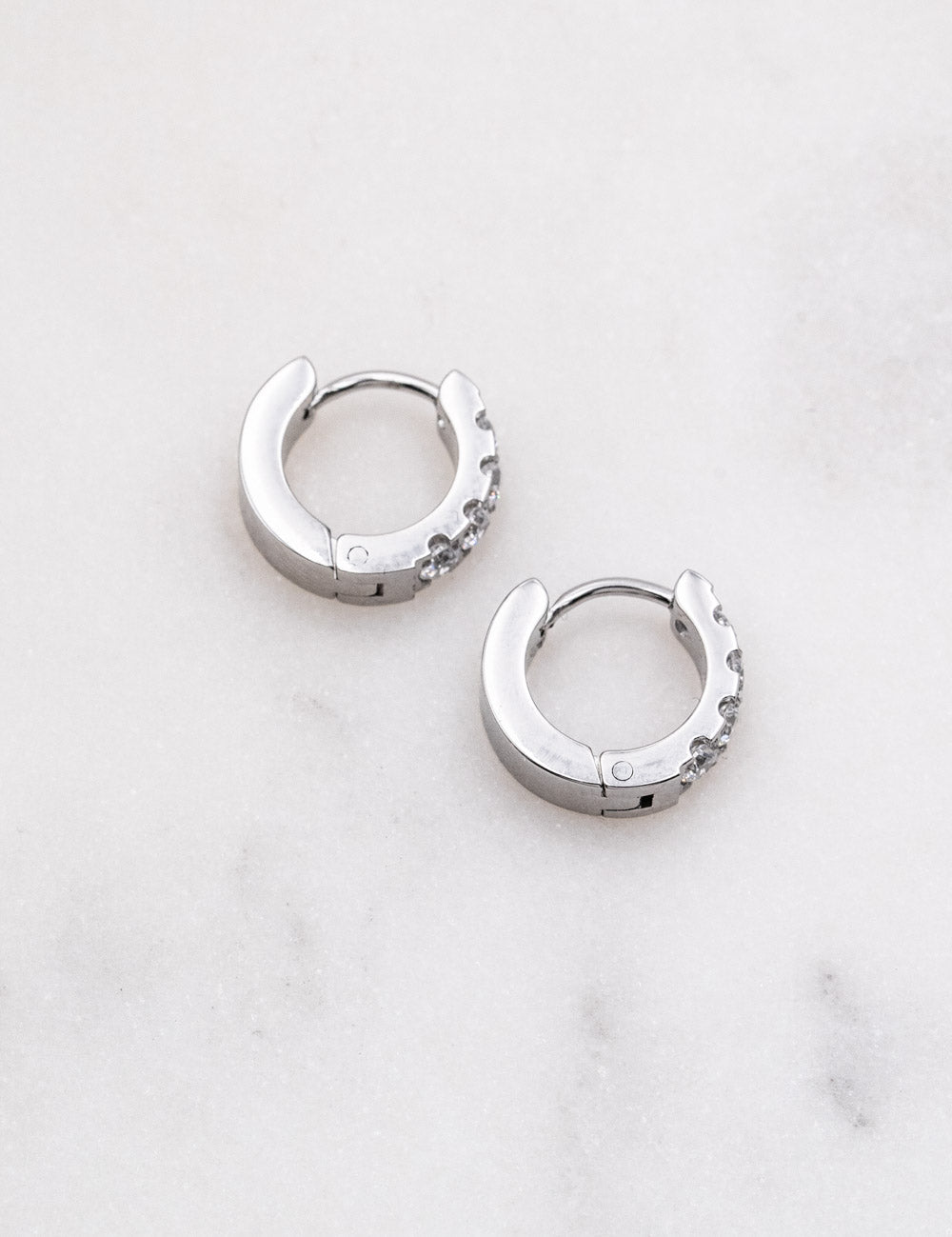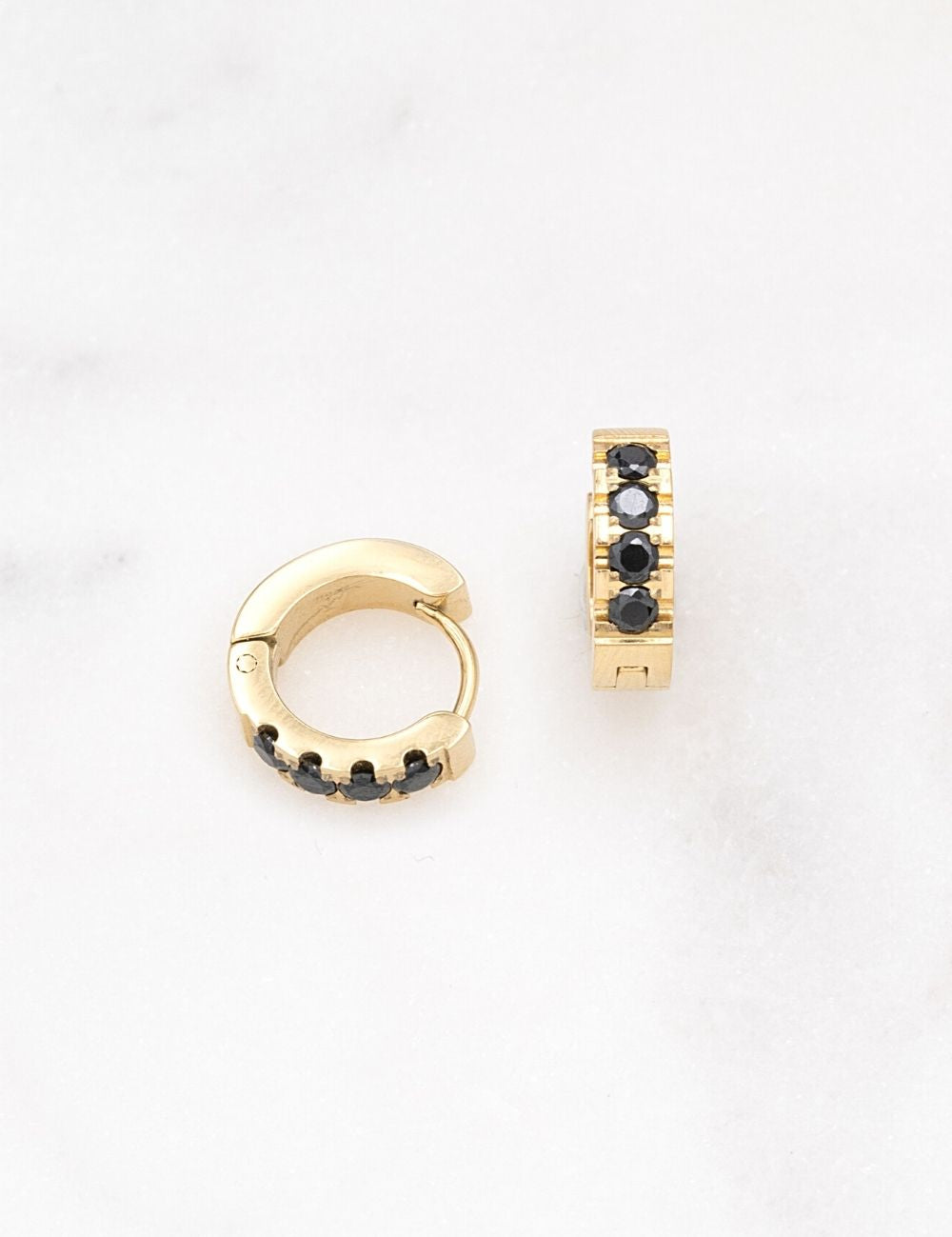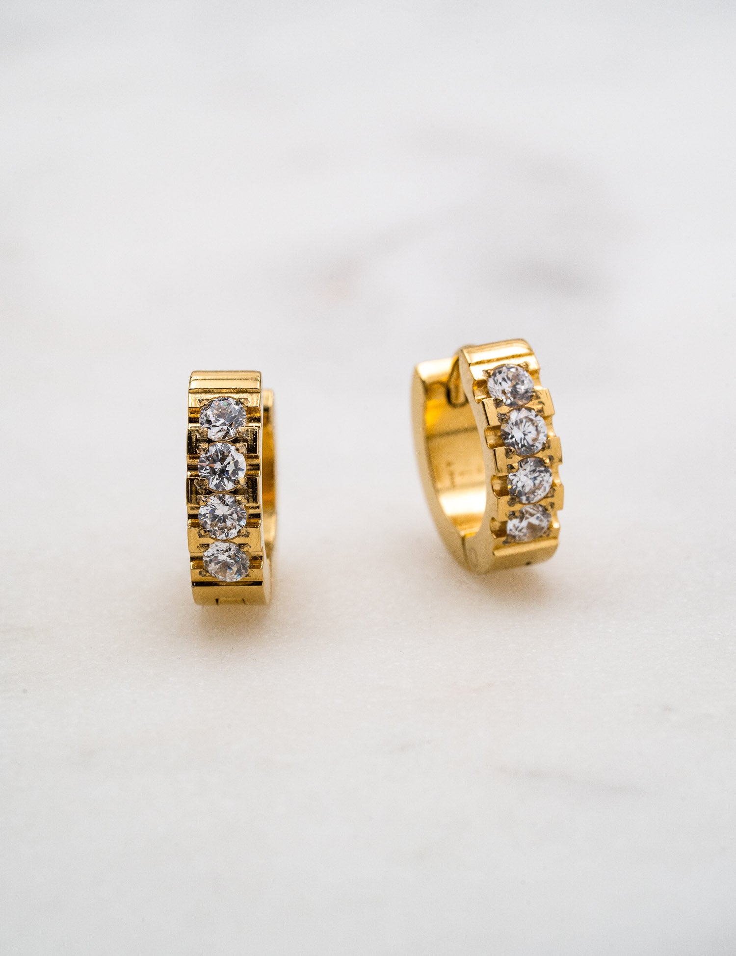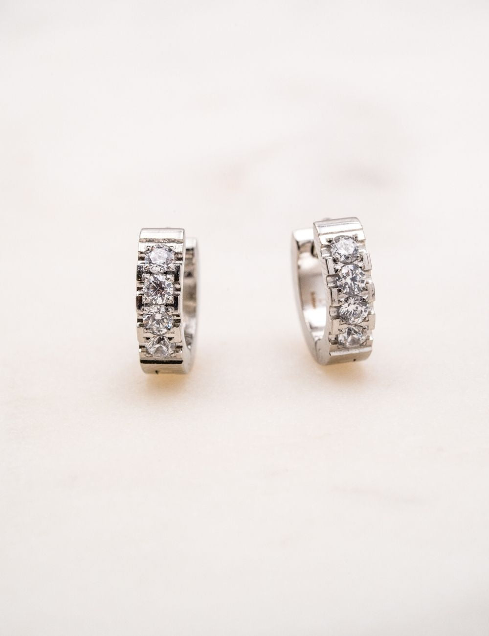 Boucles d'oreilles type créoles carrées serties de strass à tige.