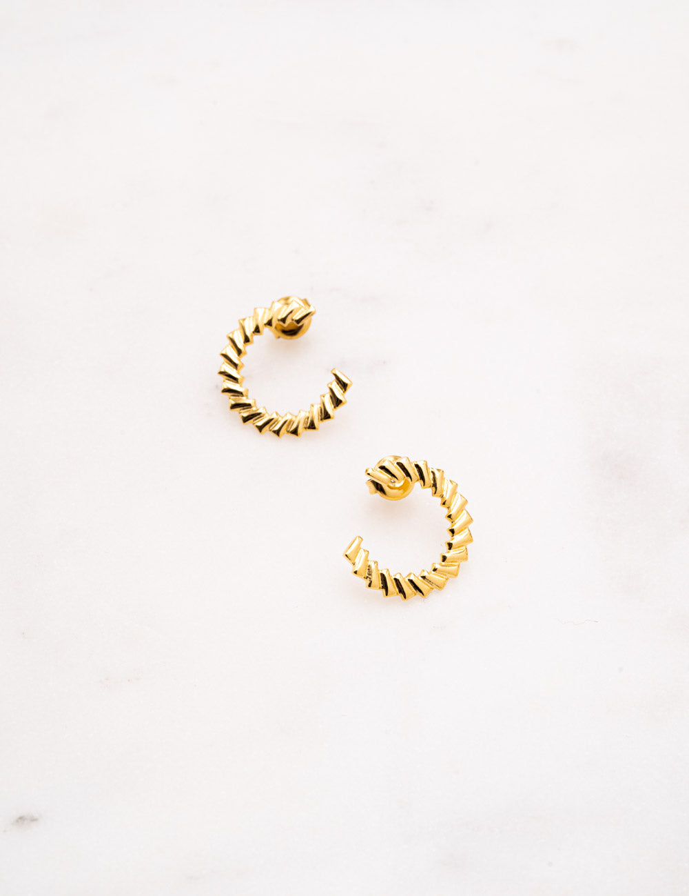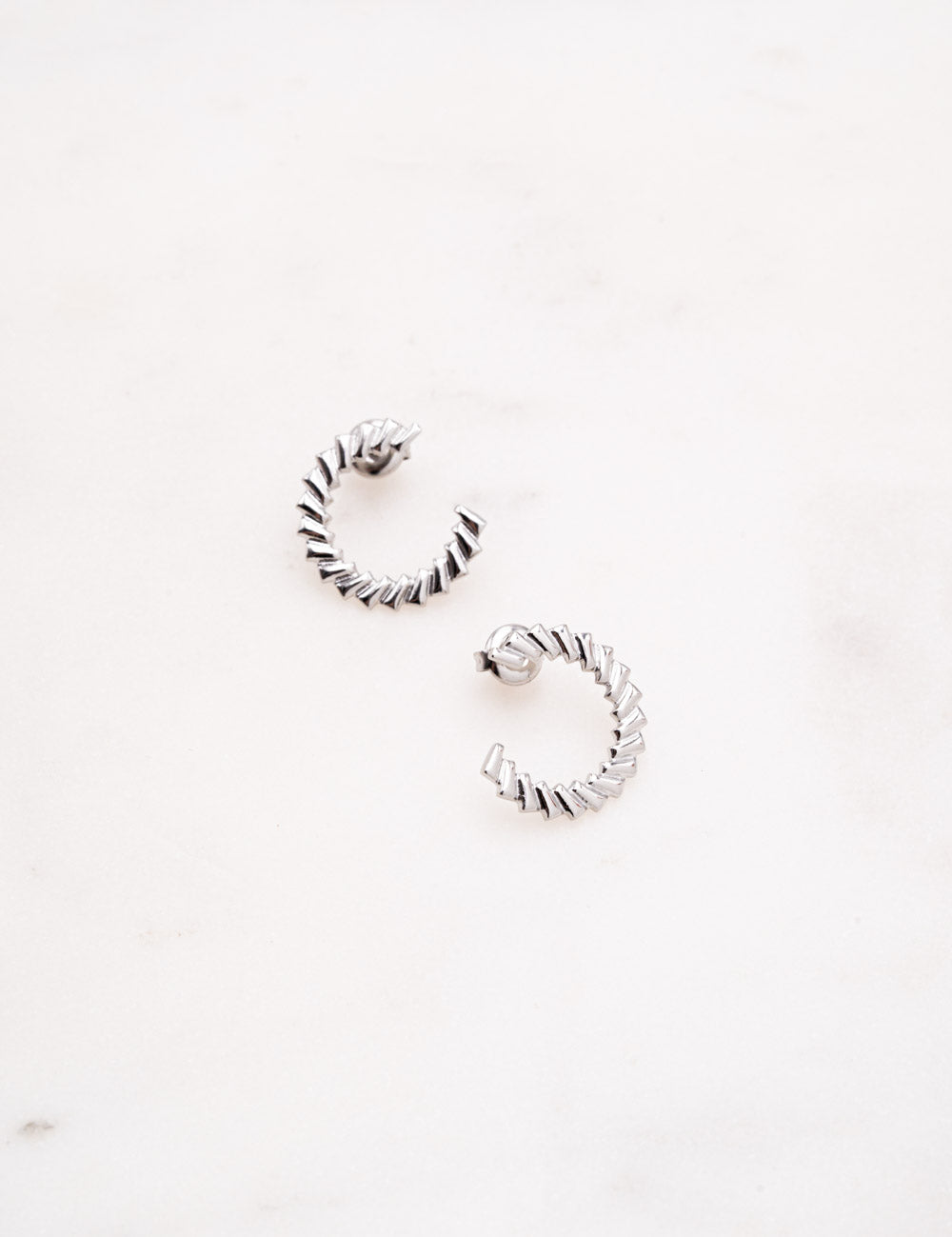 Boucles d'oreilles graphiques semi ronds à puce texturée. Fermoir papillon.