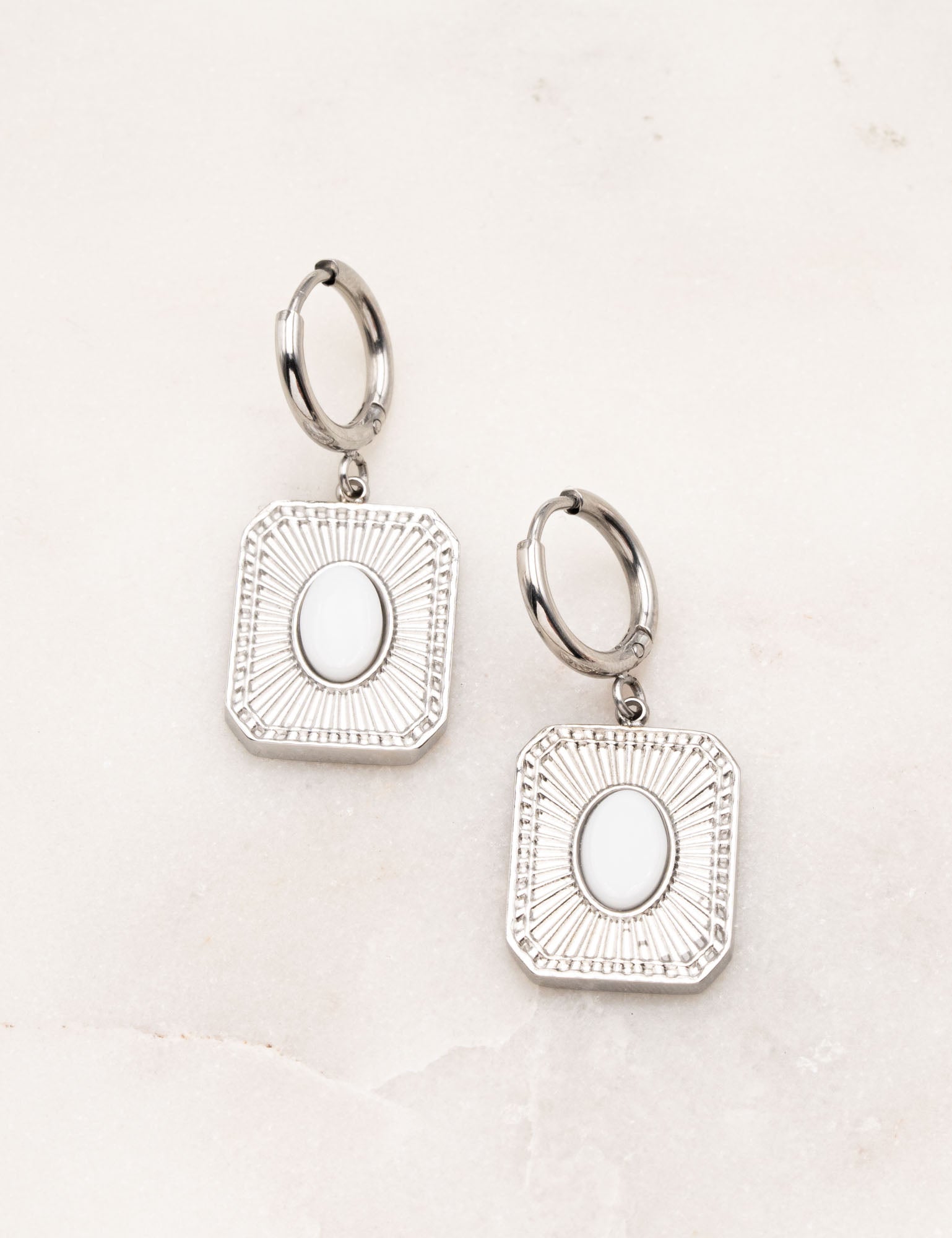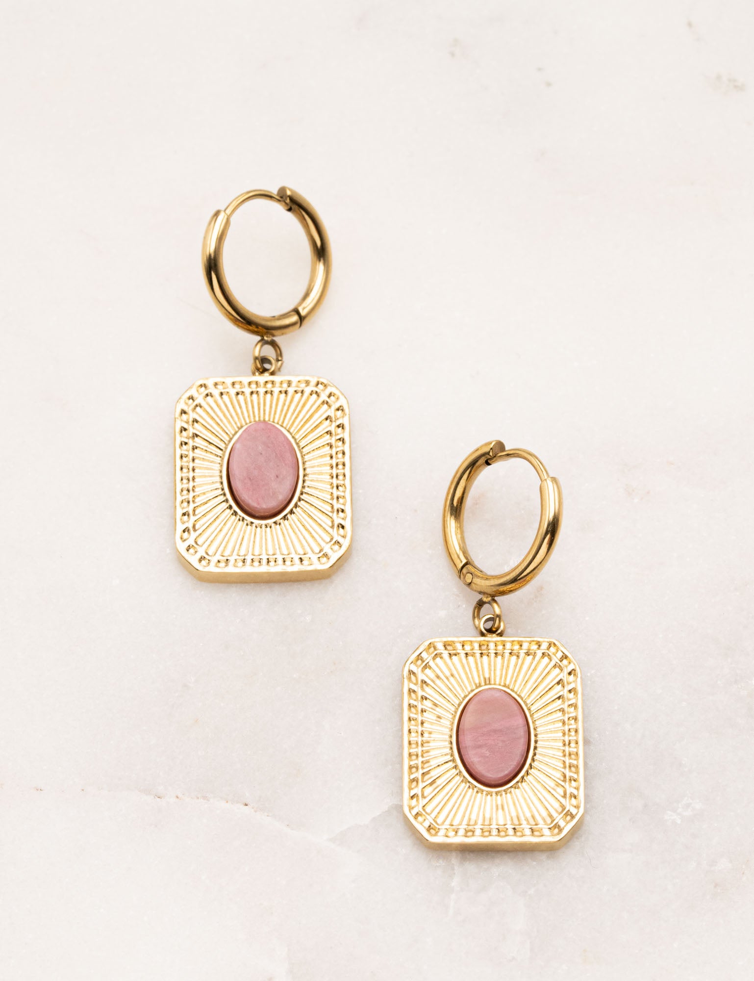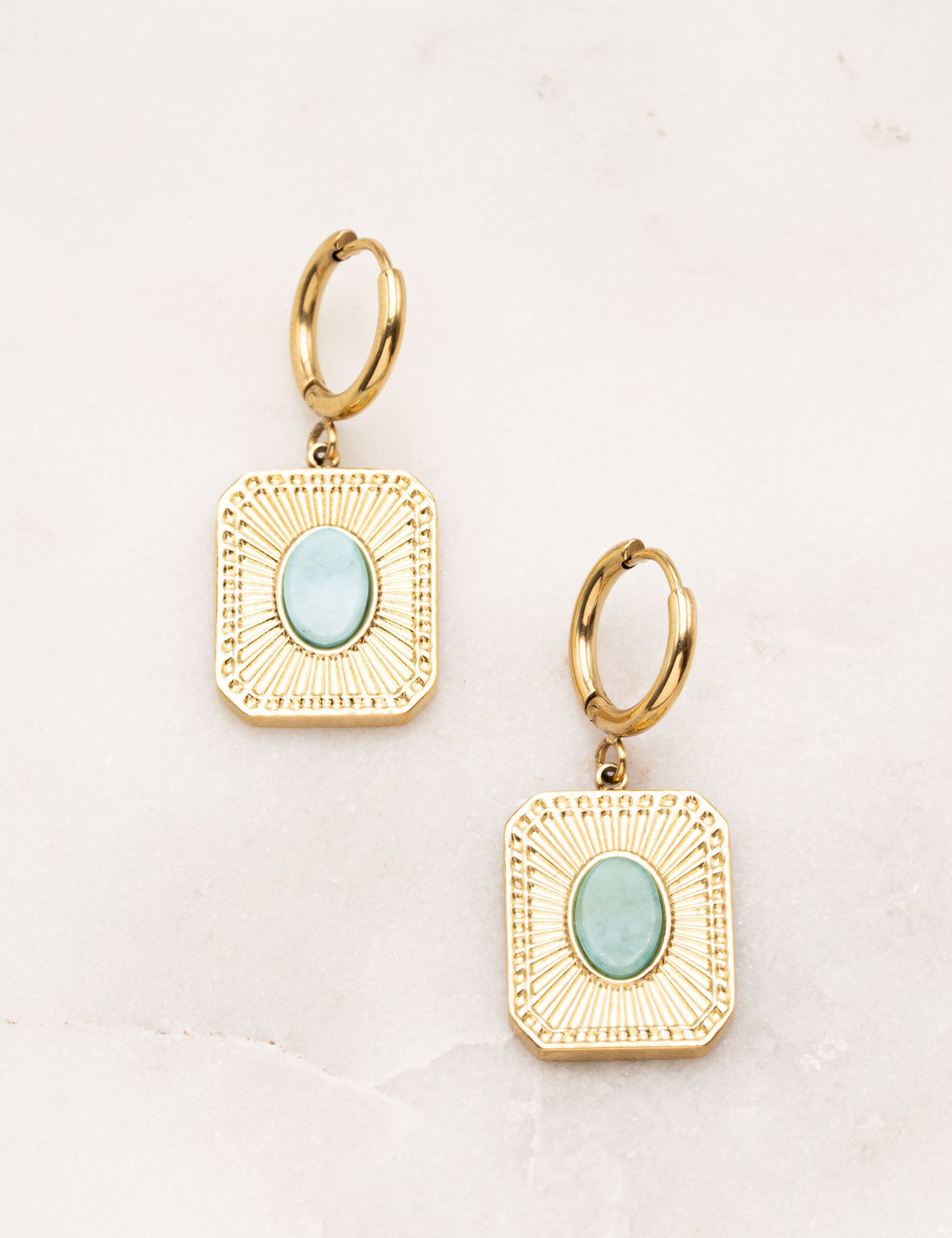 Boucles d'oreilles type créoles composées d'une pièce texturée, ornée d'une pierre naturelle. Fermoir charnière.