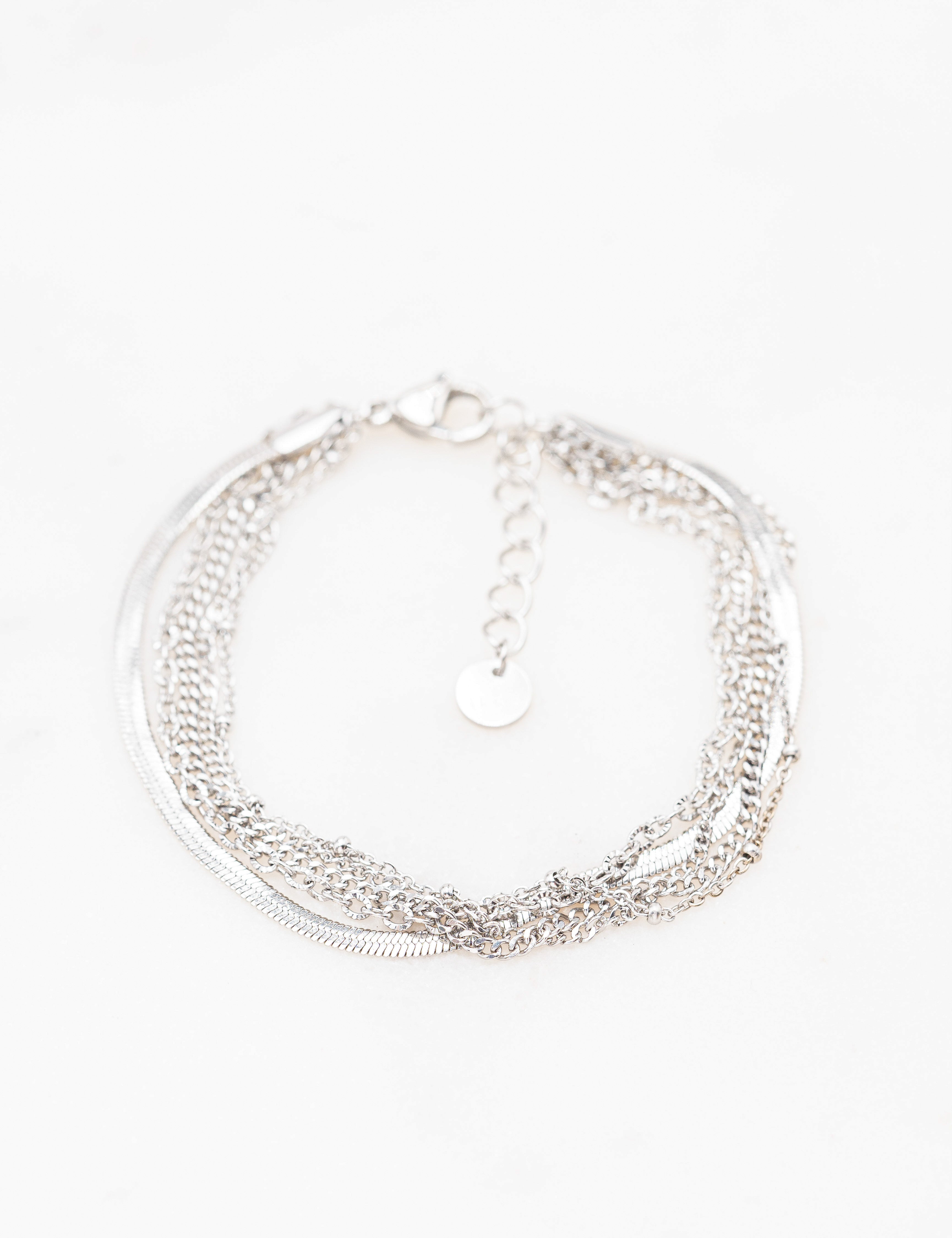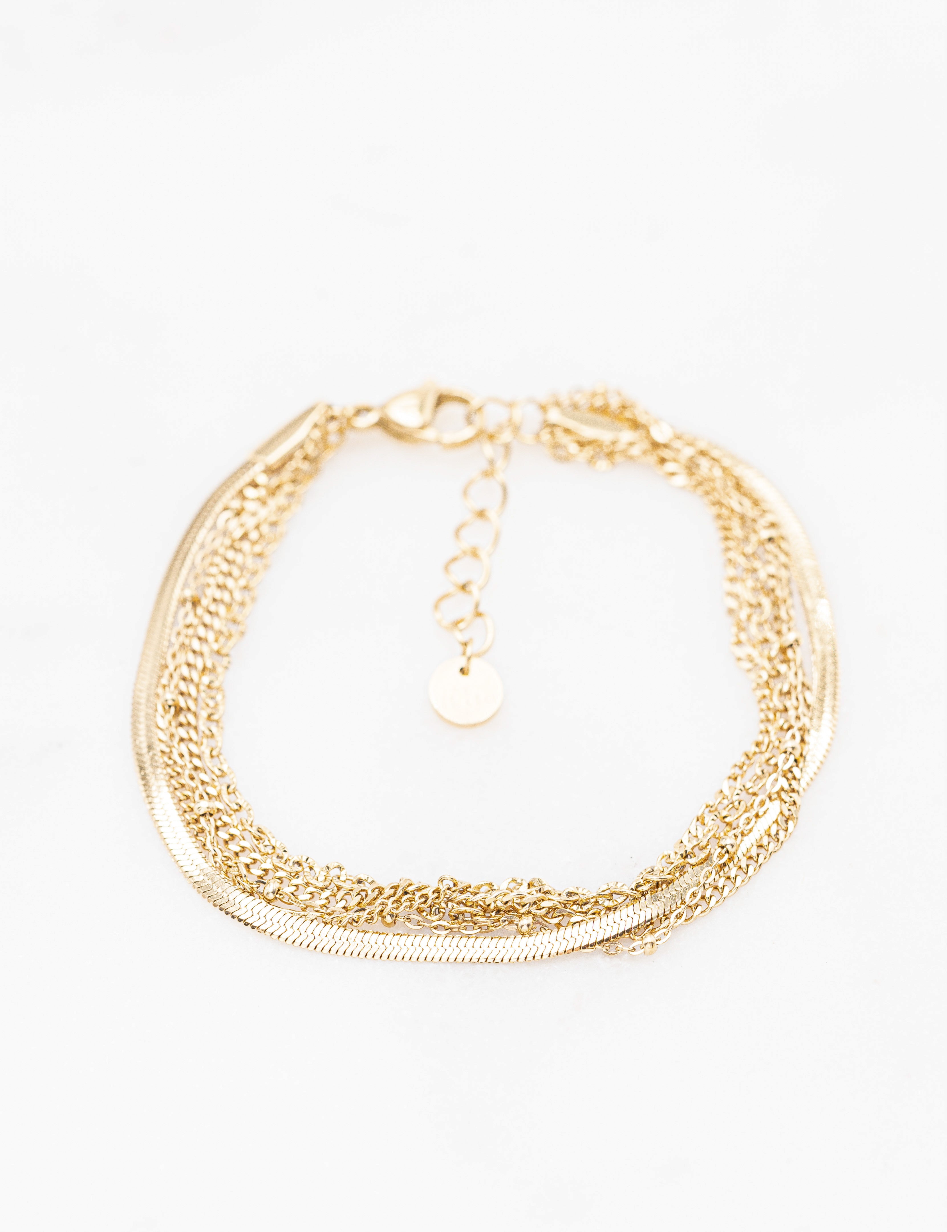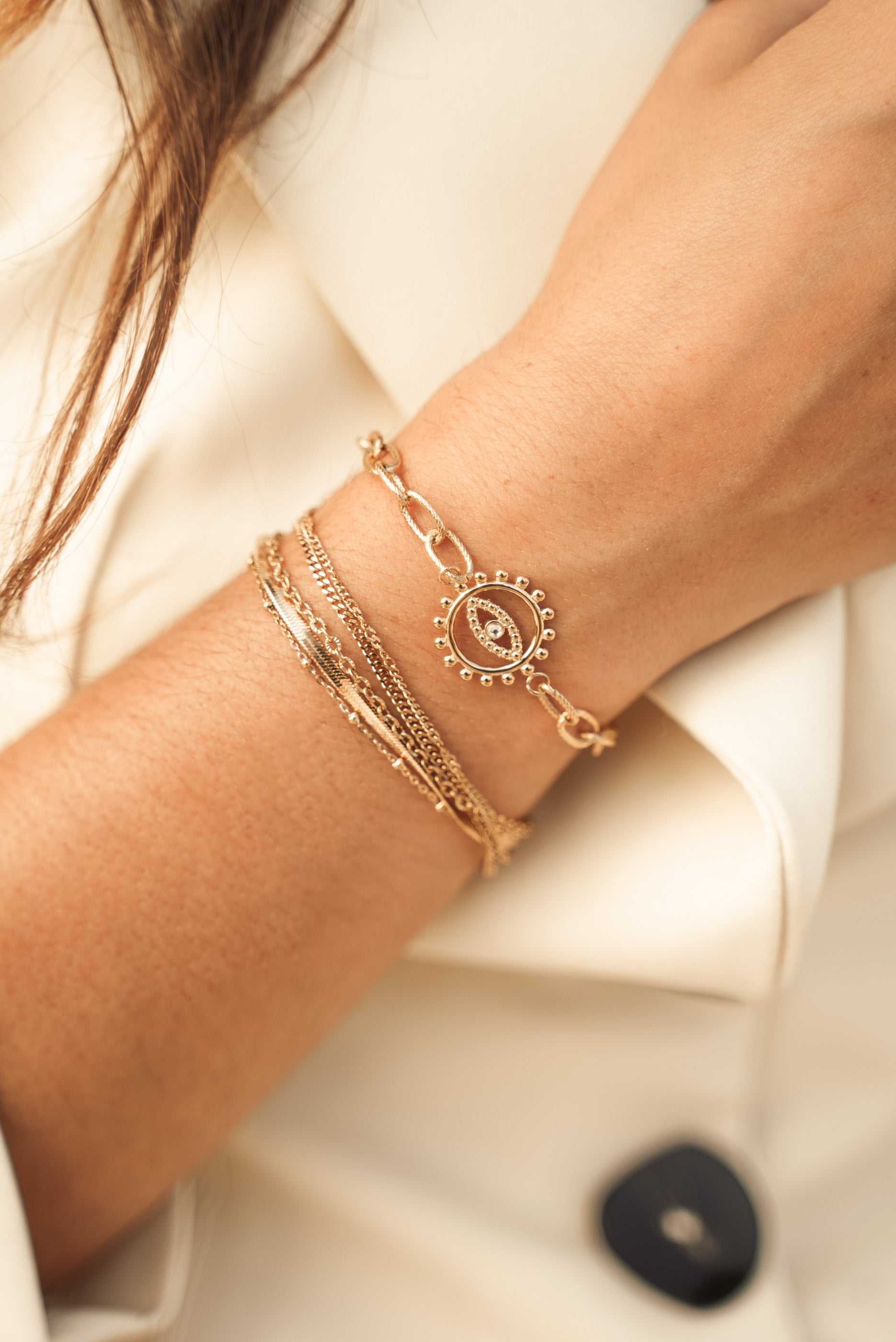 Bracelet réglable multirangs avec jeu de mailles . Fermoir mousqueton.