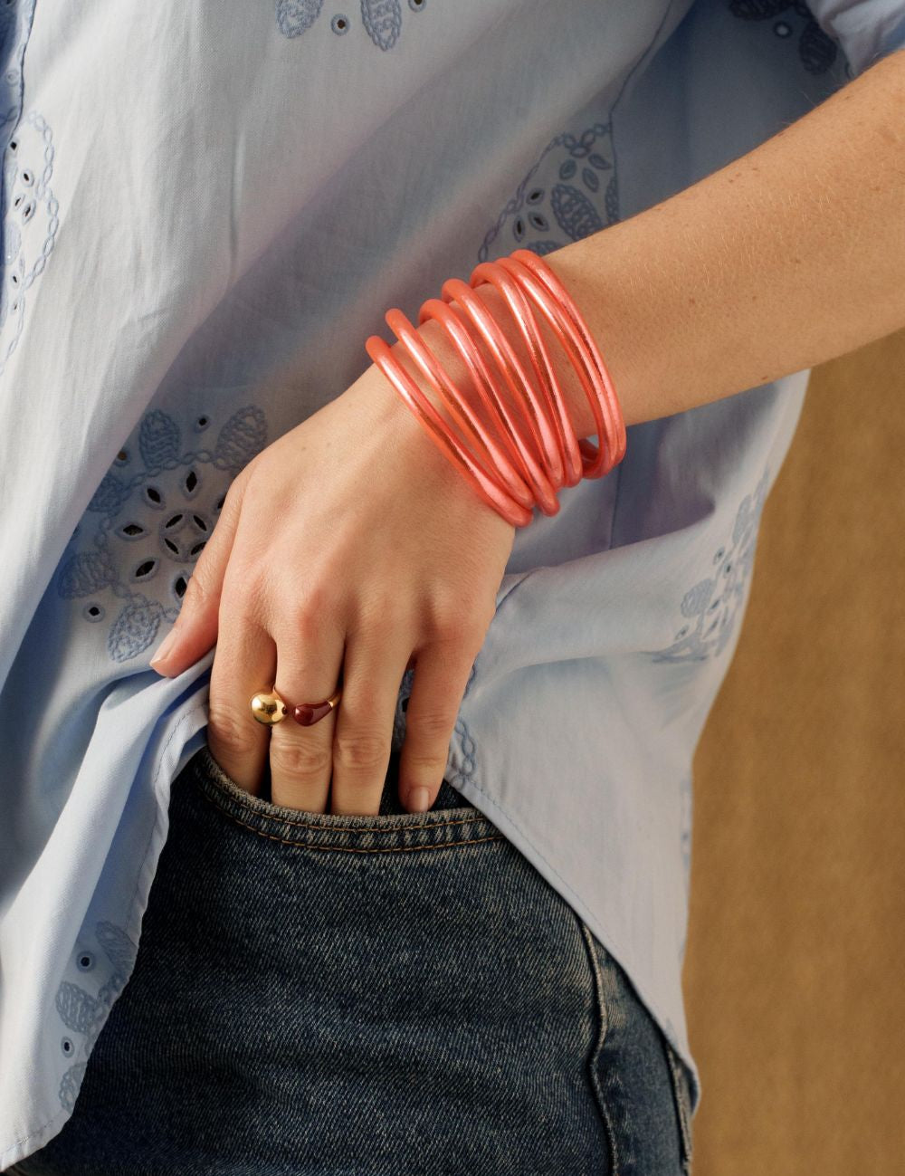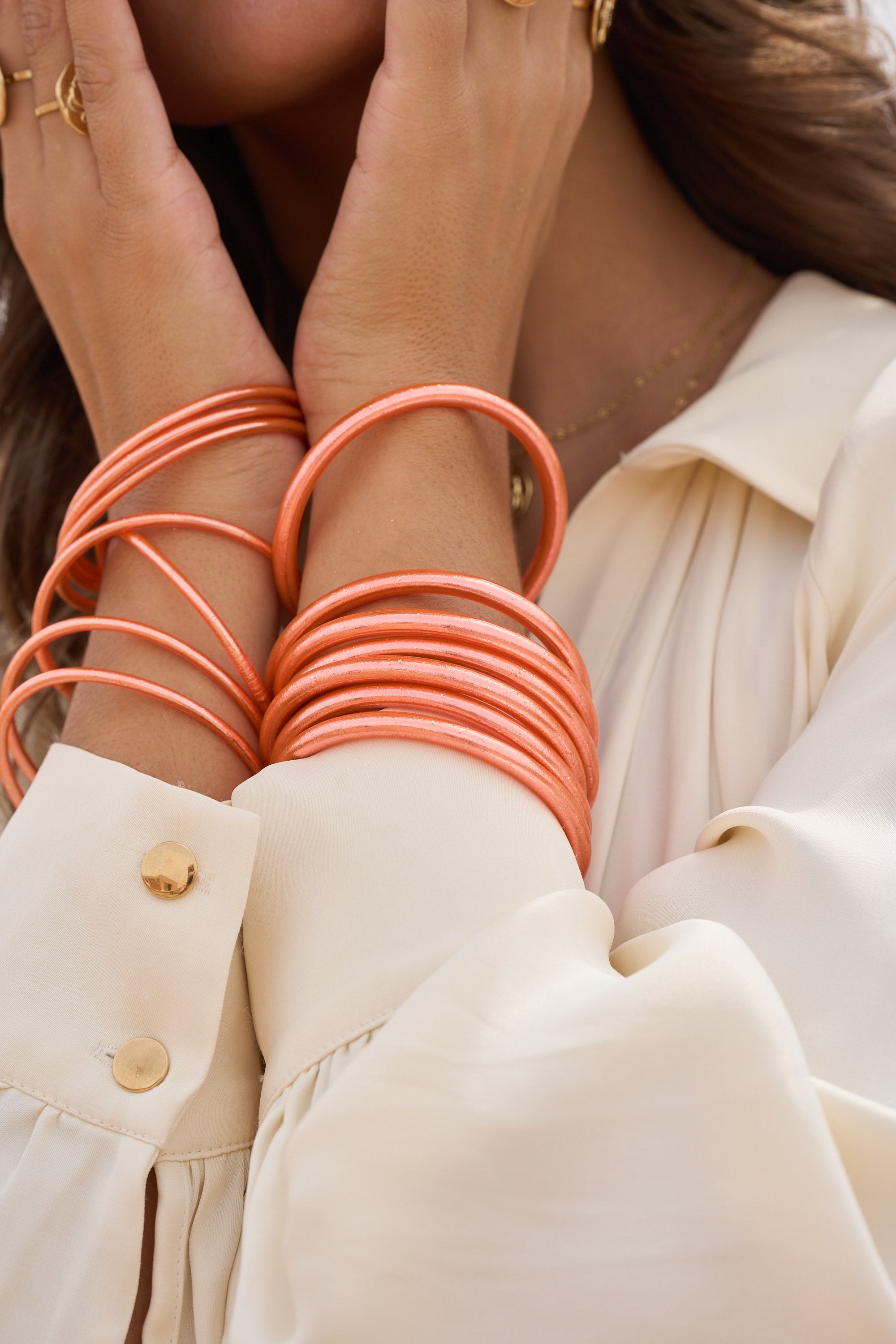 Chauffer légèrement les bracelets au sèche cheveux pour les détendre ou les passer sous l'eau chaude.