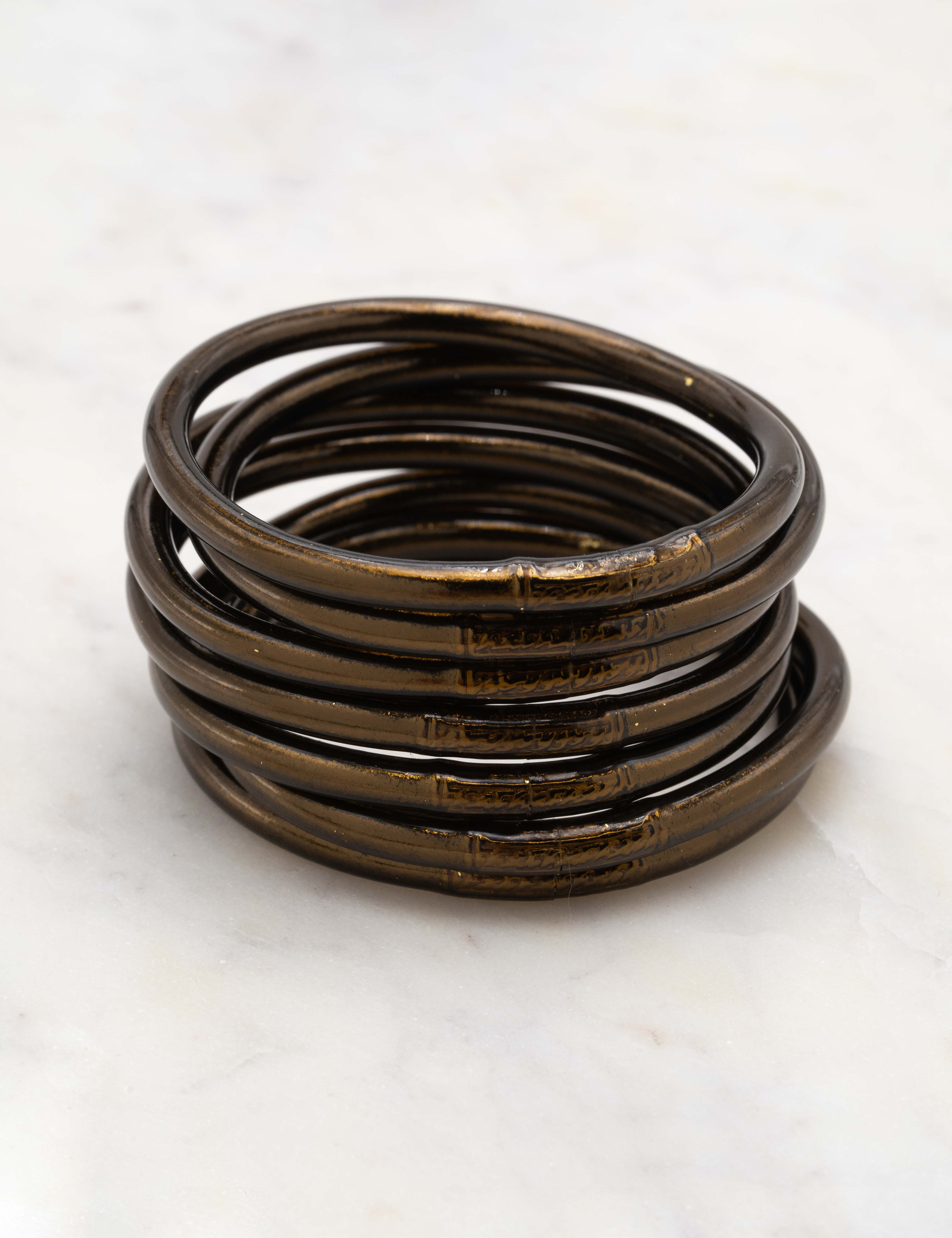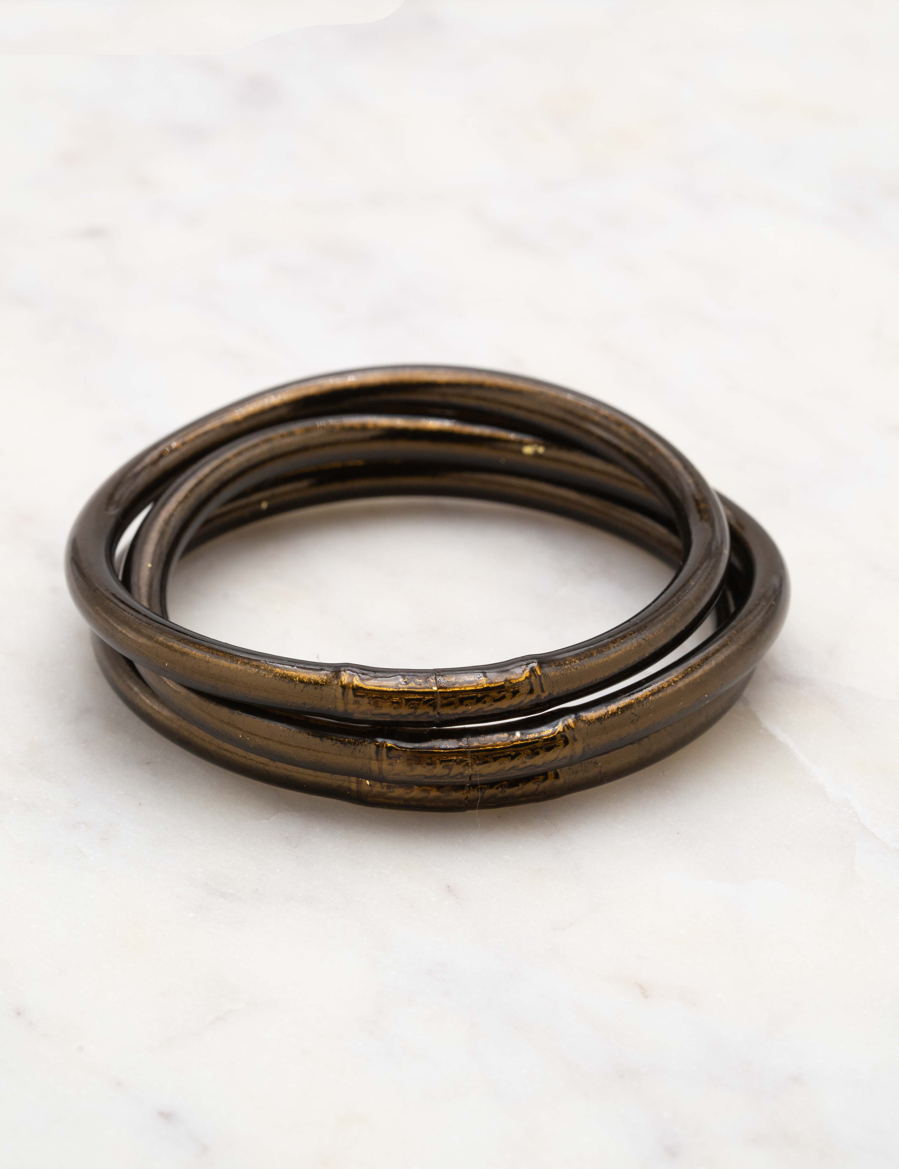 Afin de faciliter l’enfilage du jonc bouddhiste, les bracelets sont légèrement huilés.