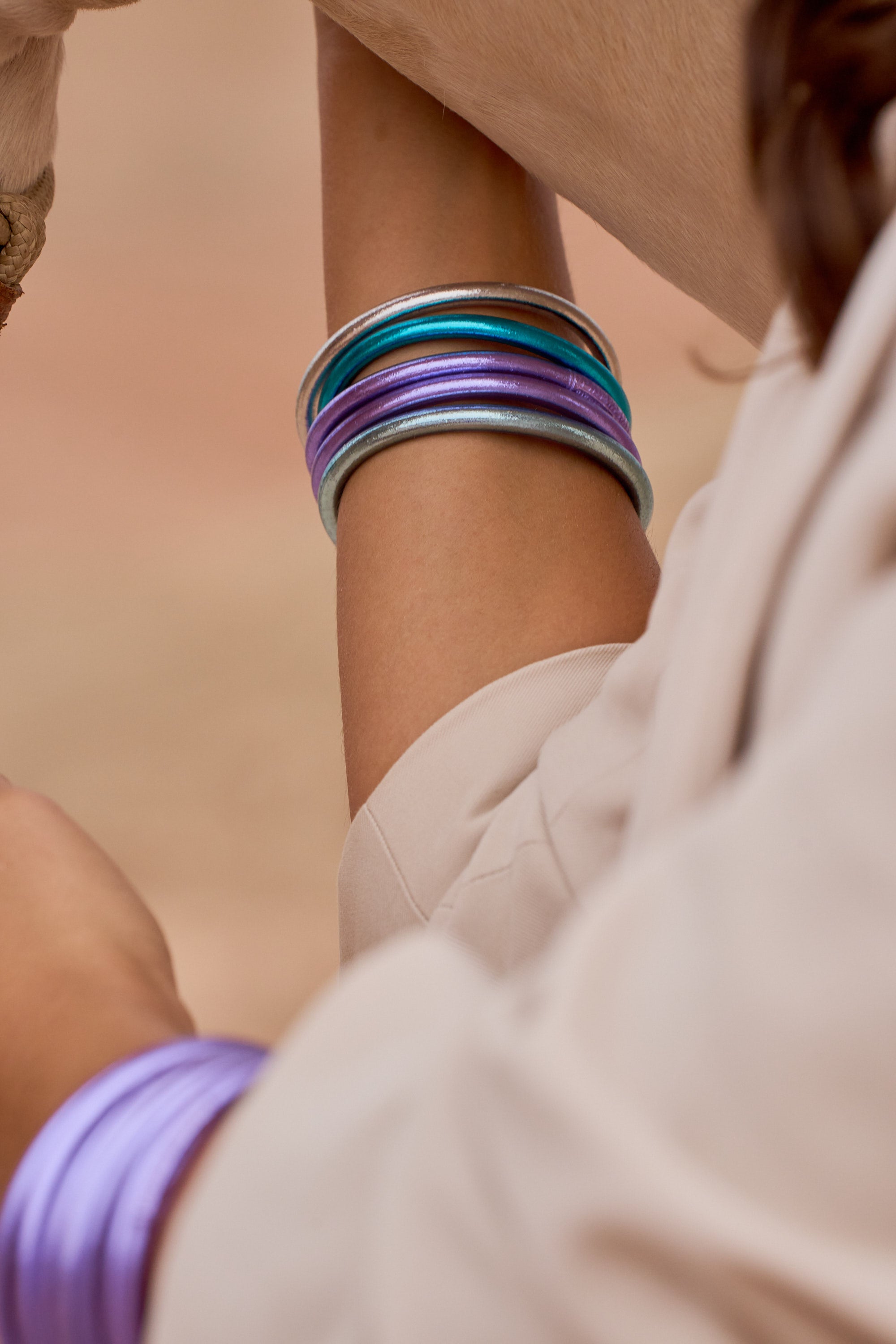 Chauffer légèrement les bracelets au sèche cheveux pour les détendre ou les passer sous l'eau chaude.