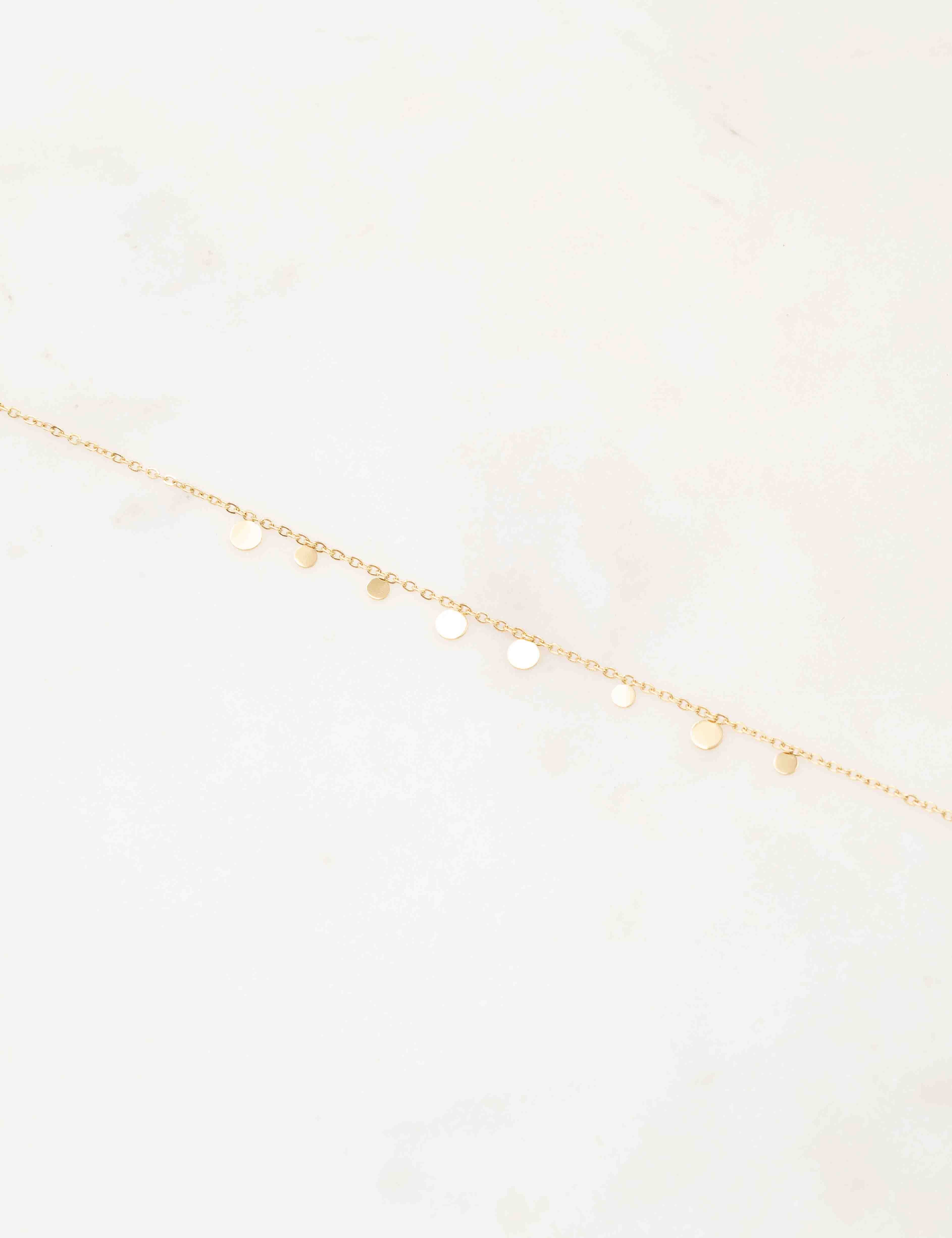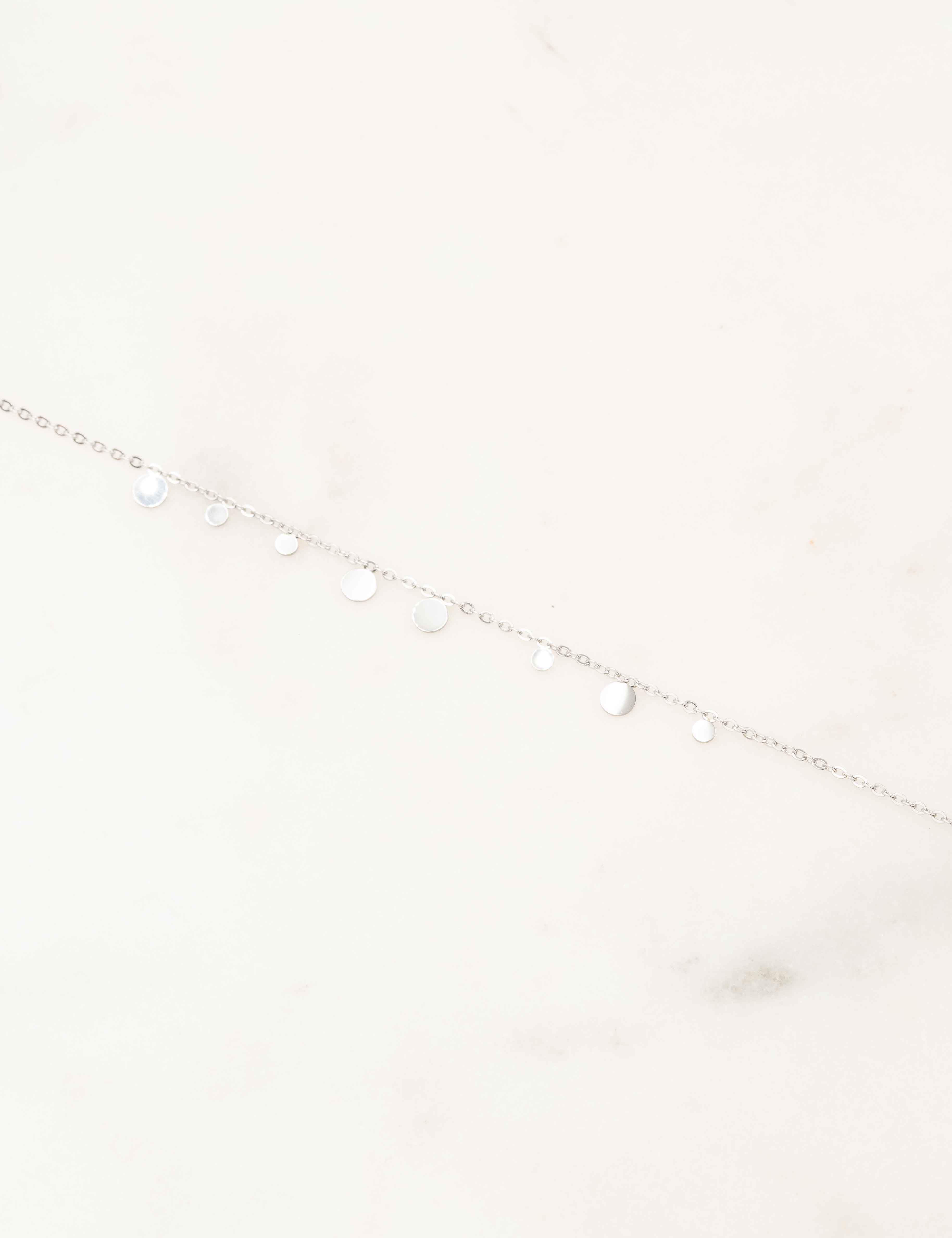 Bracelet réglable composé de pampilles rondes. Fermoir mousqueton et chainette de réglage.