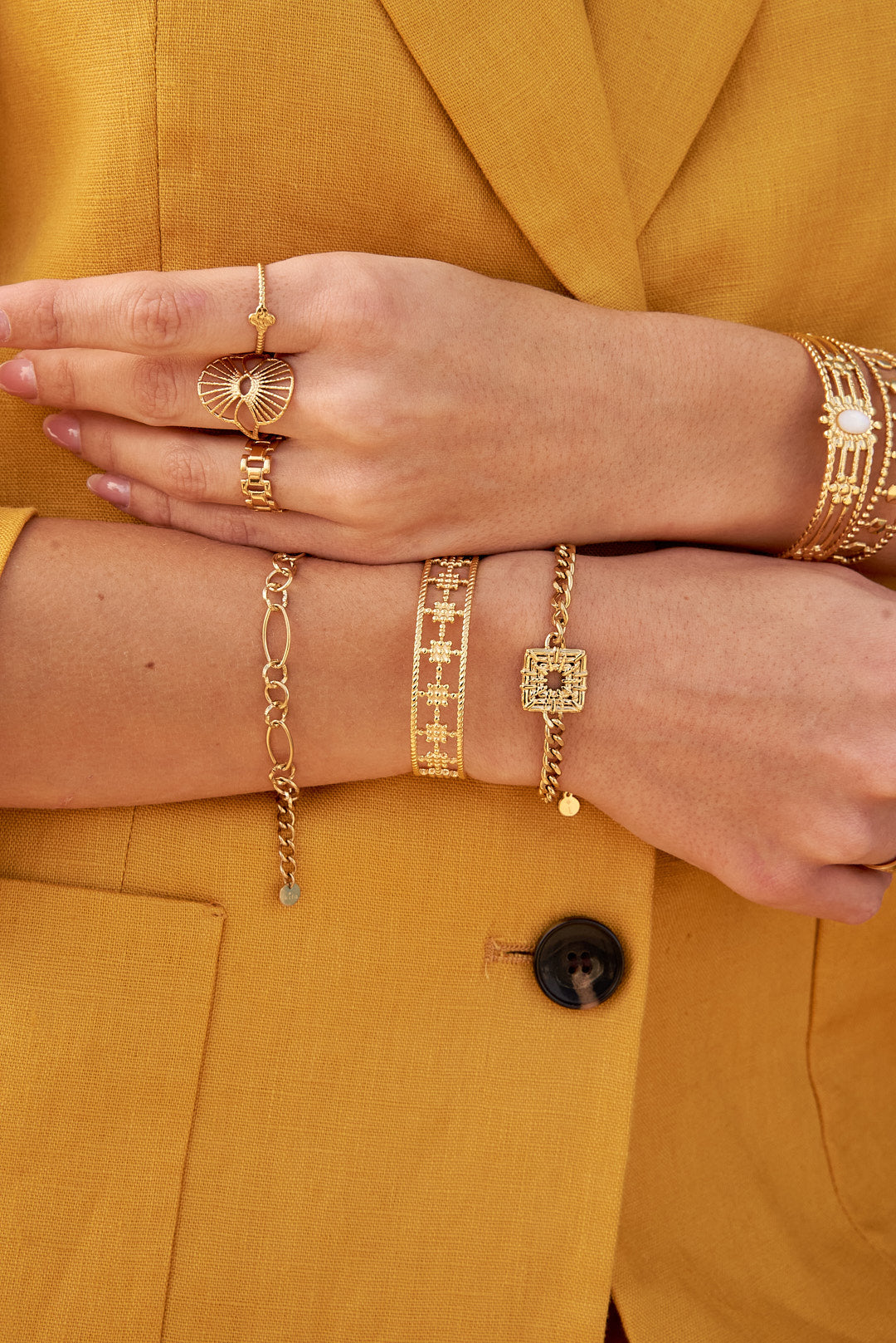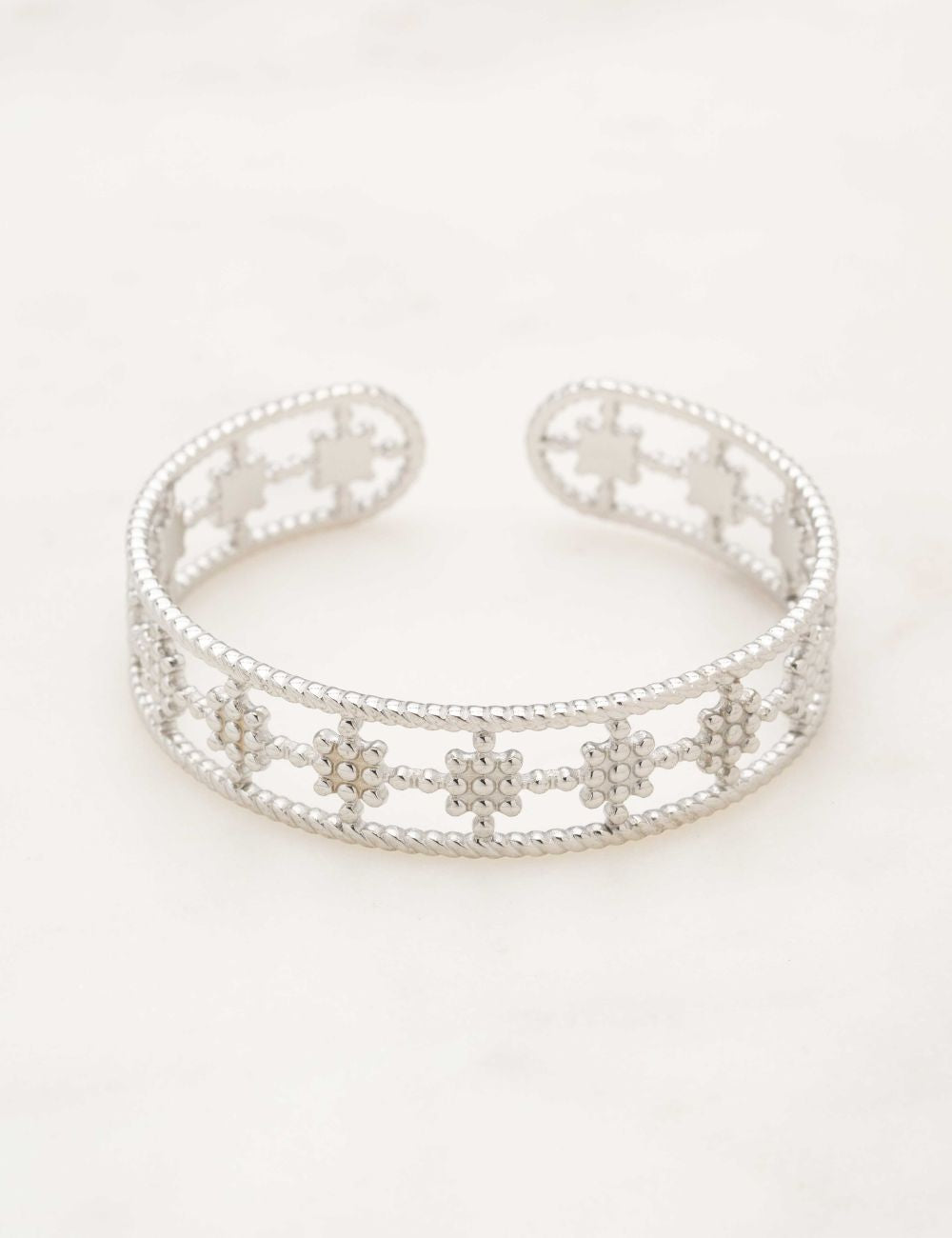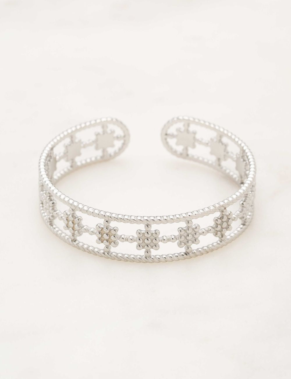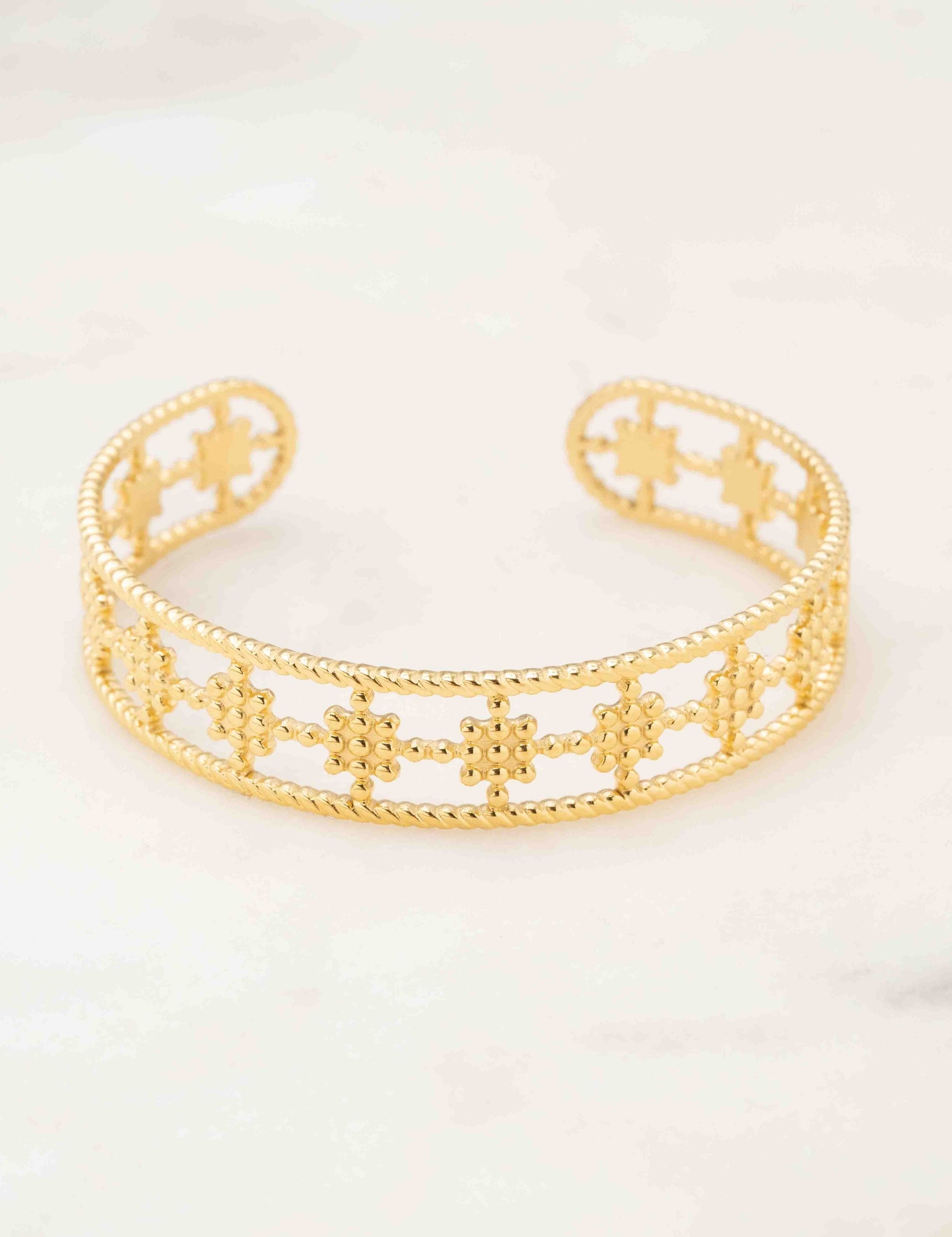 Bracelet malléable type jonc graphique 2 rangs texturés effet cannelé avec des motifs géométriques.