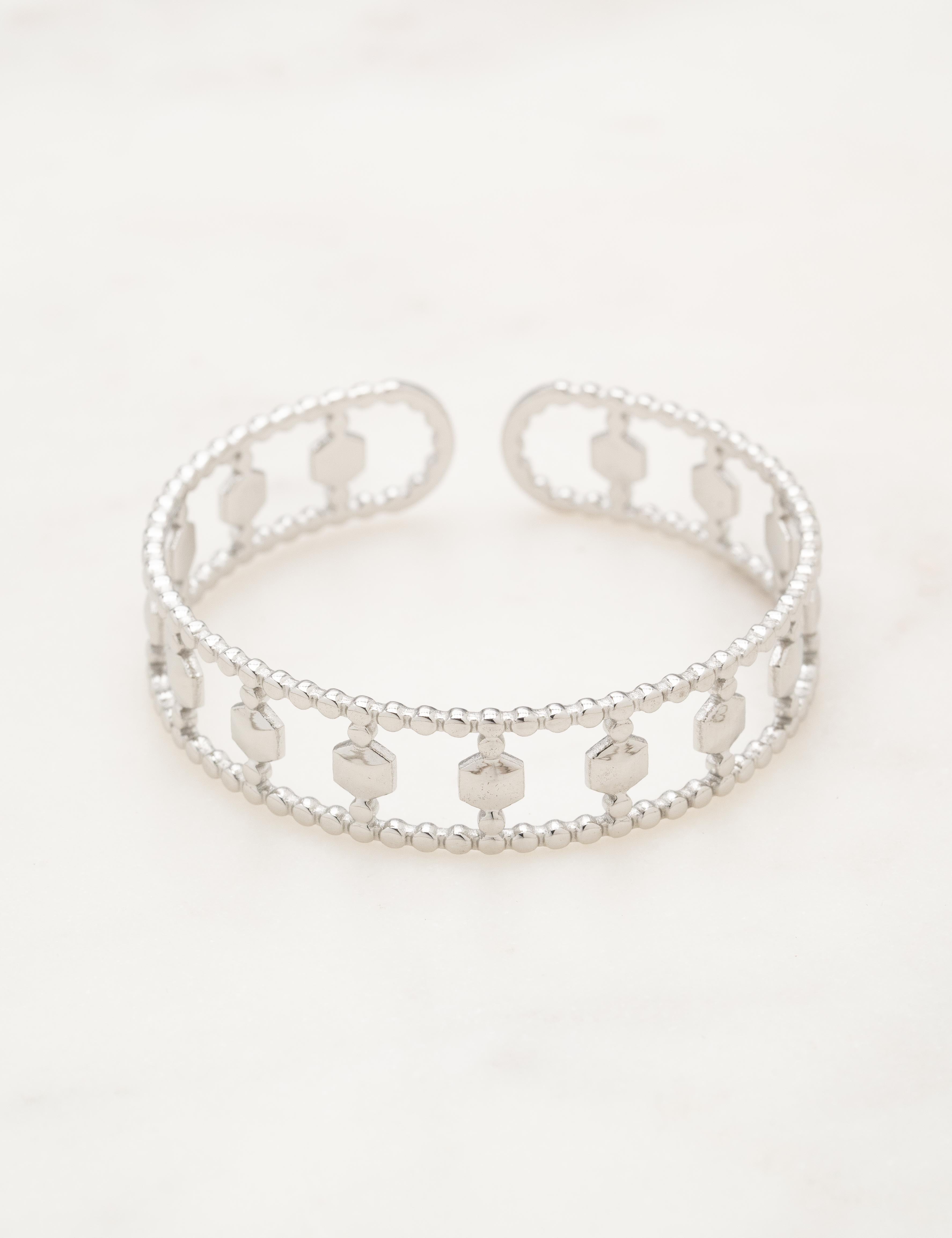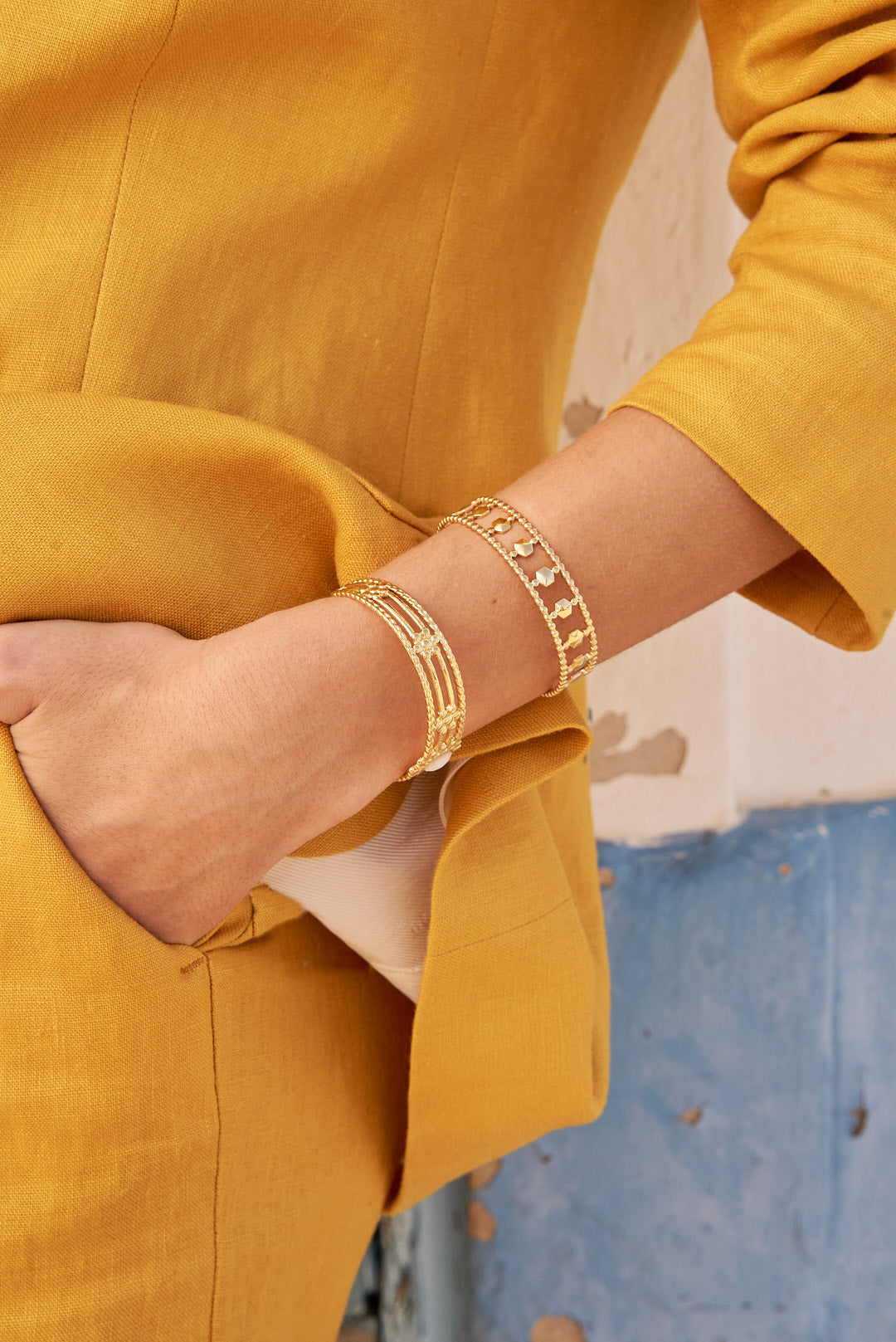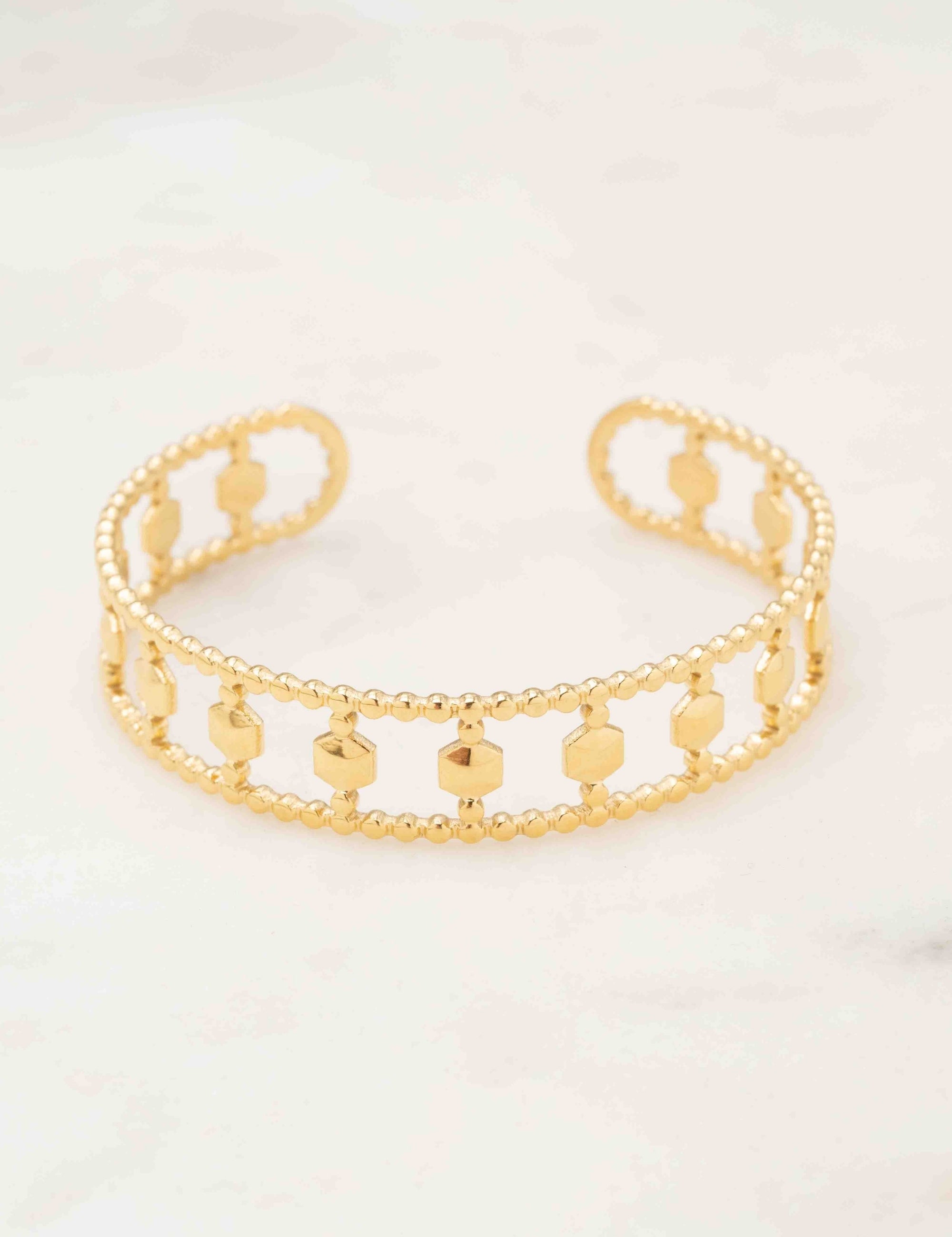 Bracelet malléable type jonc graphique 2 rangs texturés effet cannelé avec des motifs géométriques.
