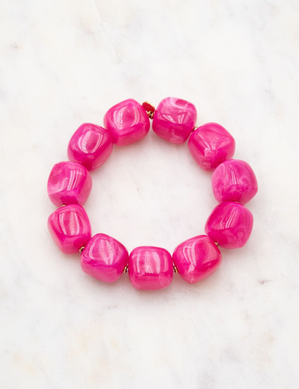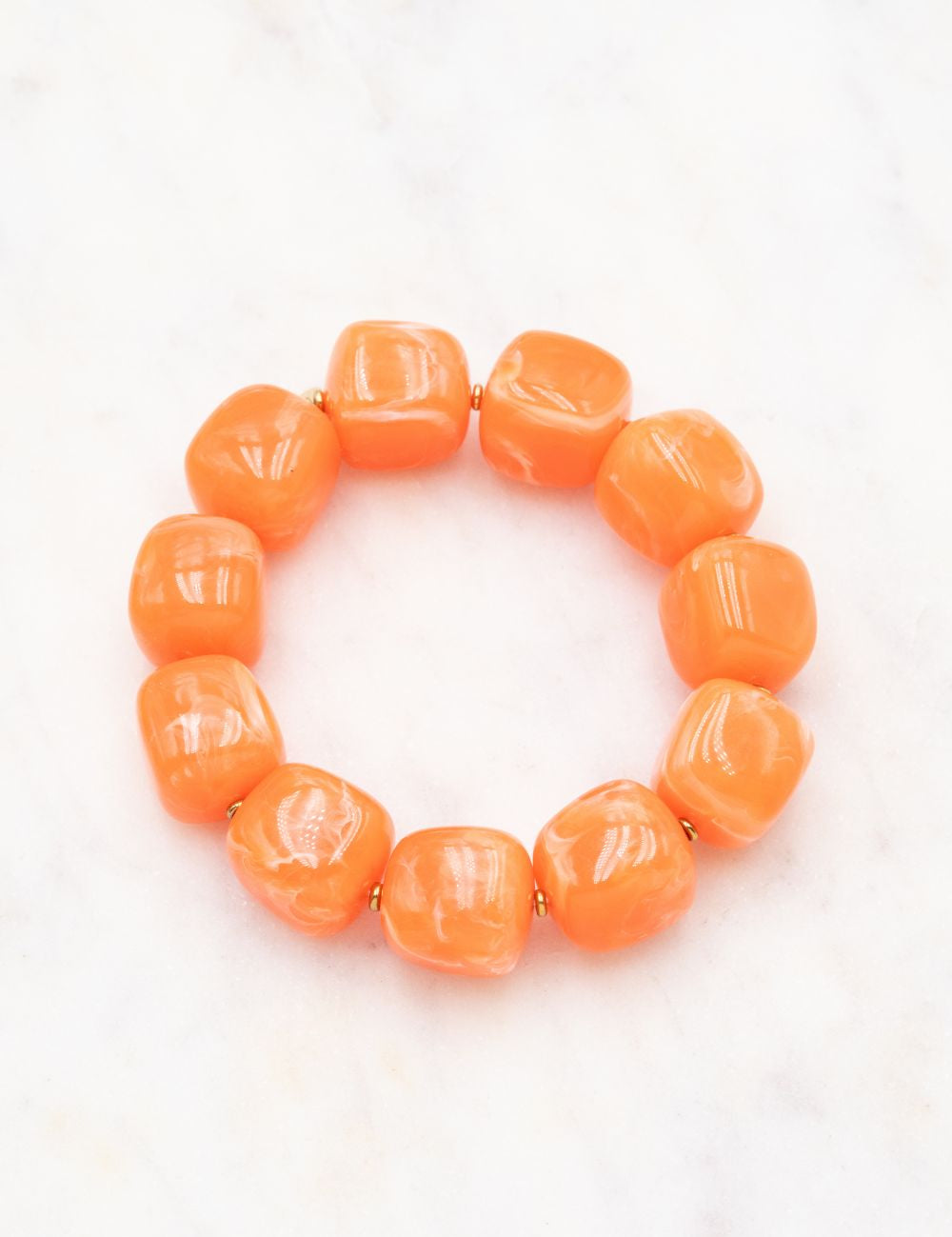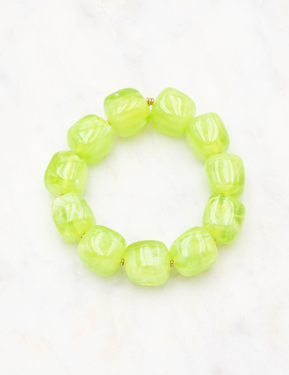 Bracelet élastique composé d'un enfilage de perles en résine colorée.