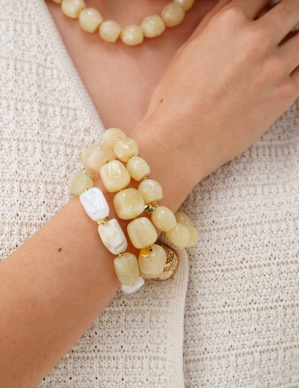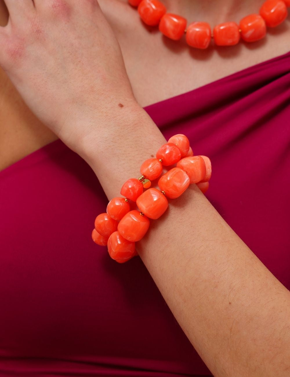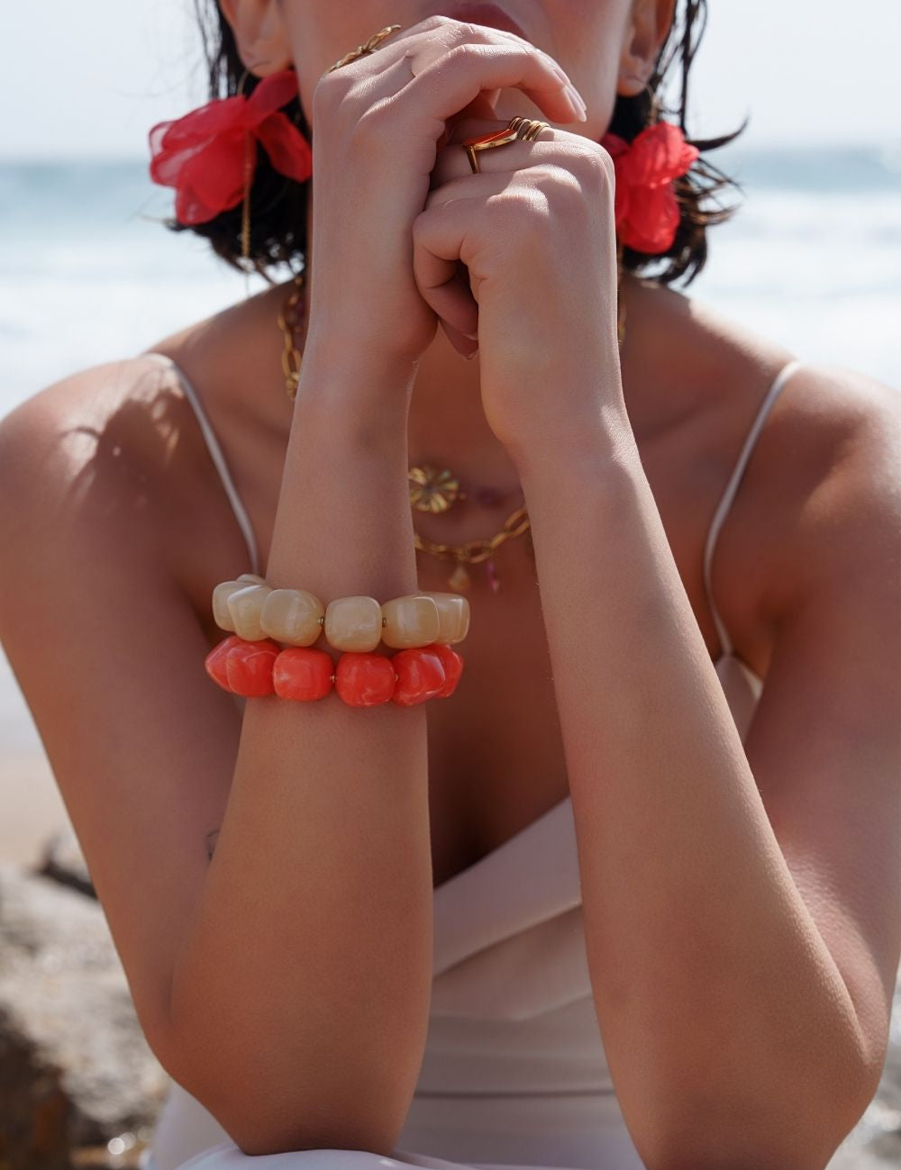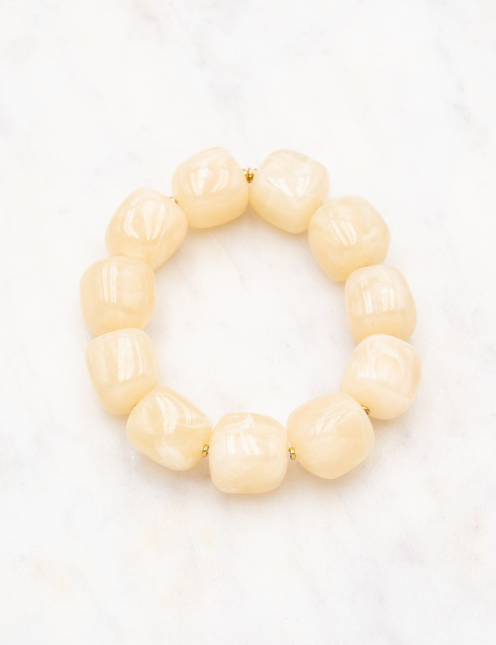 Bracelet élastique composé d'un enfilage de perles en résine colorée.