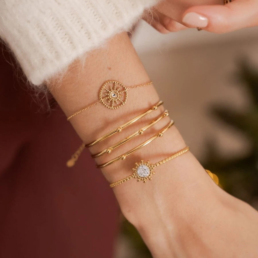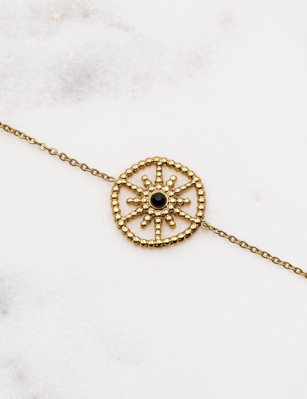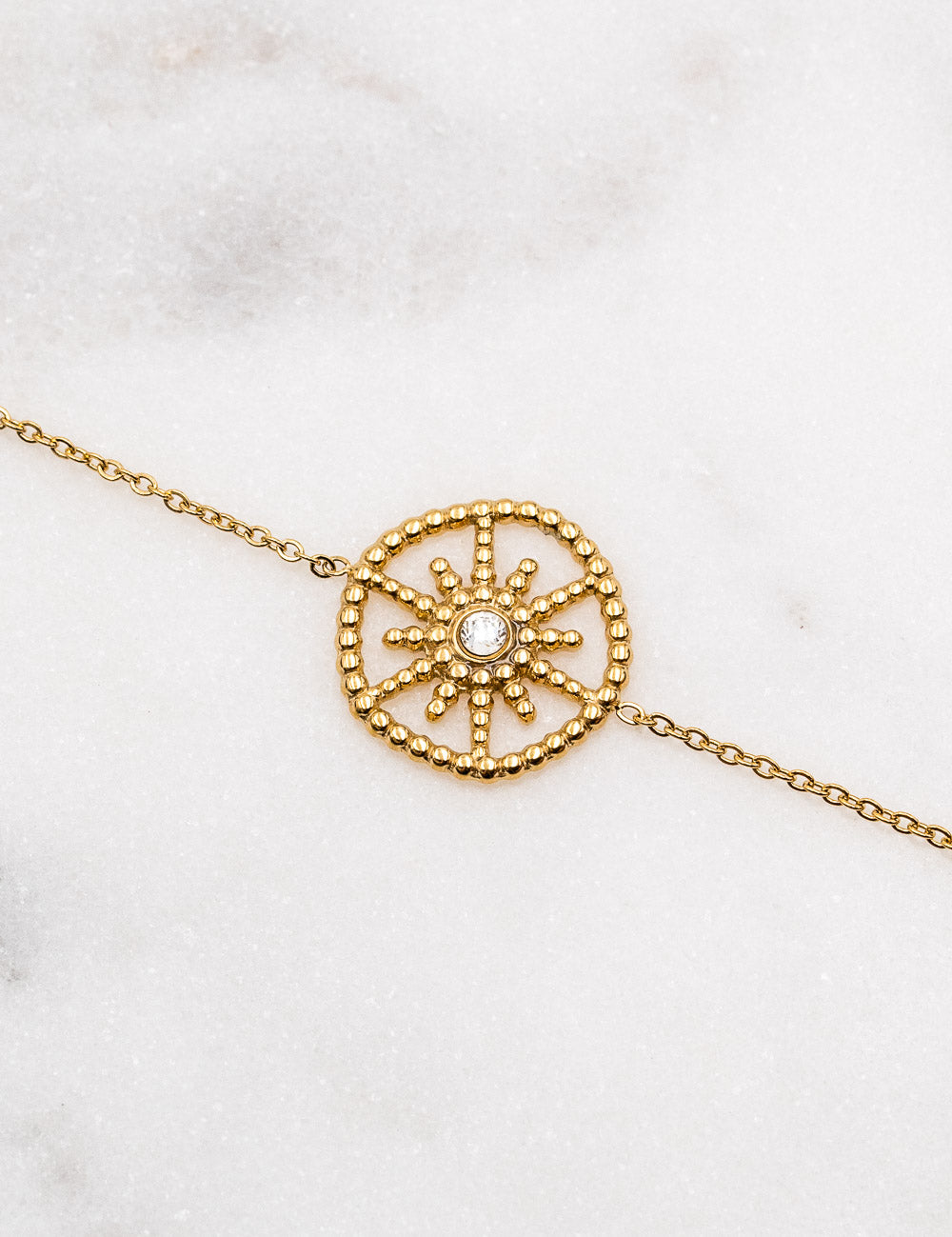 Bracelet réglable sur chaîne orné d'une pièce étoilée serti d'un strass