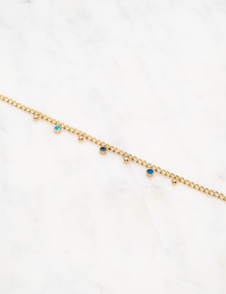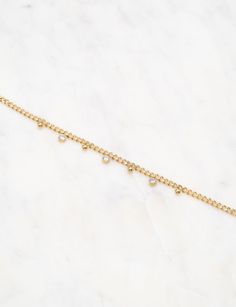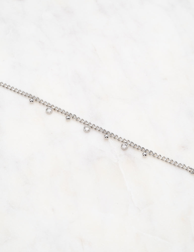 Bracelet en maille sur chaîne composé de pampilles strassées.