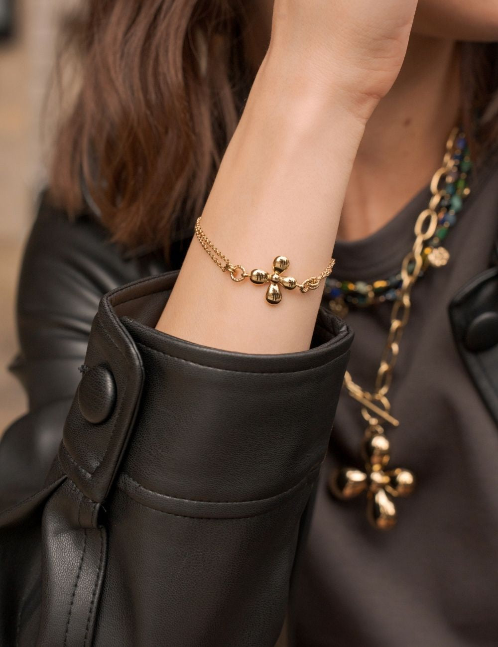 Bracelet réglable sur chaîne composé d'une pièce esprit floral.