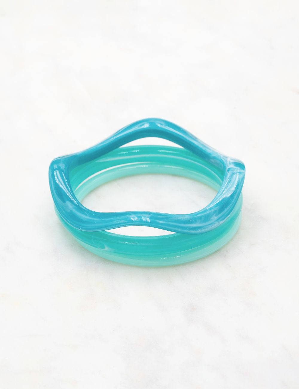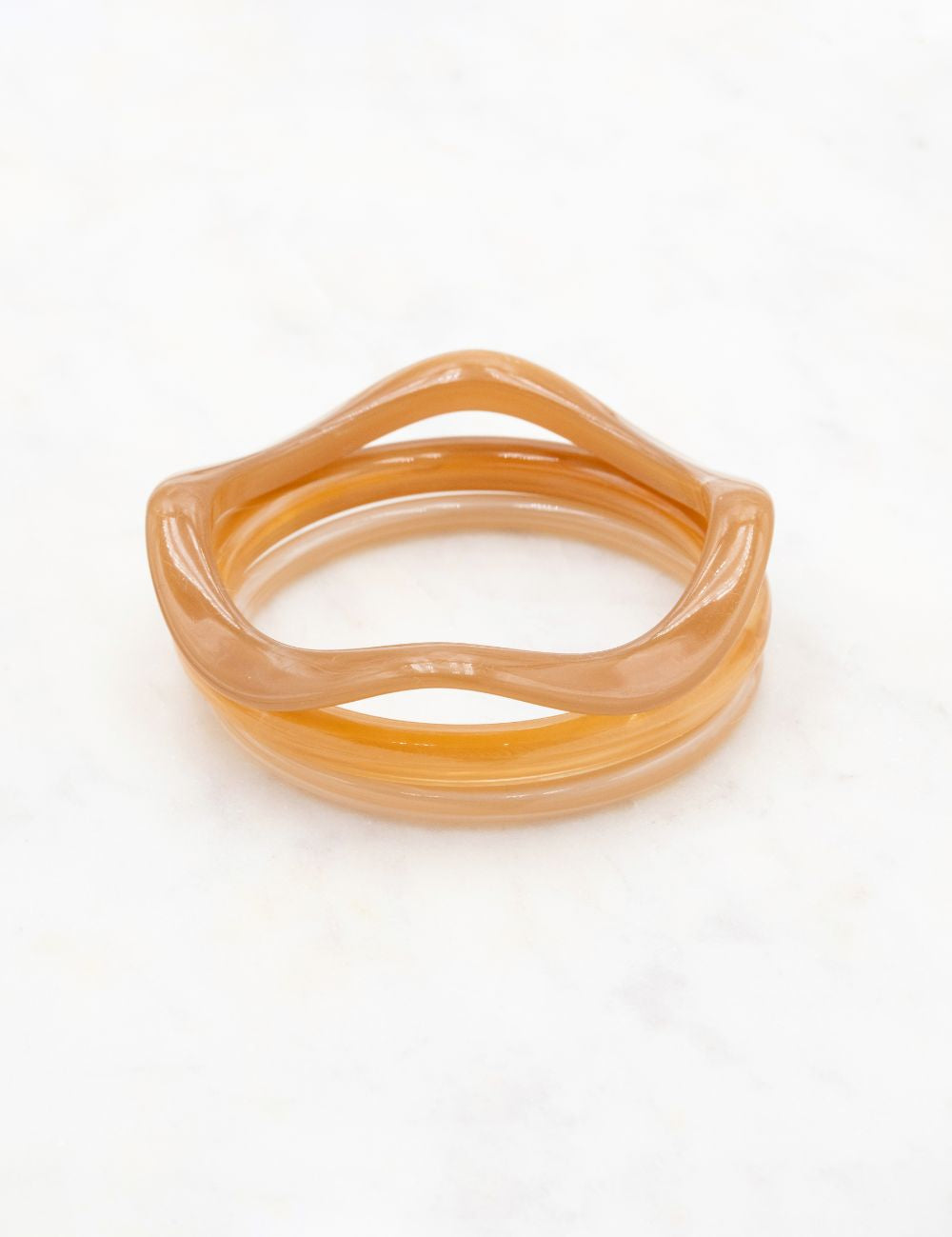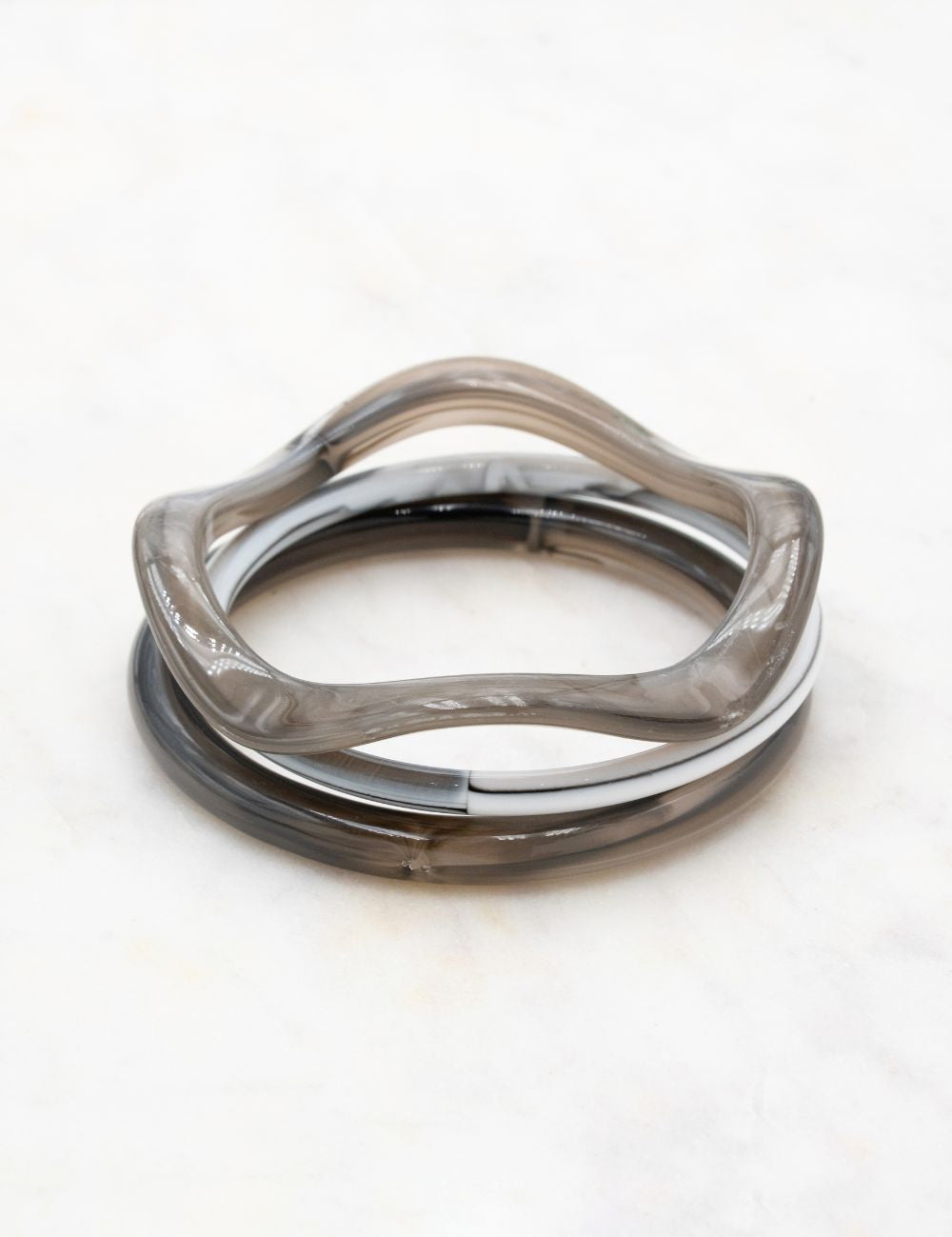 Notes : les bracelets ne sont pas malléables (Design rigide, Sans fermeture). Les couleurs en acétate diffèrent d'une pièce à l'autre.  Il existe donc des variations de couleur.   Les motifs sont aléatoires sur les joncs. Vendu par lot de 3.