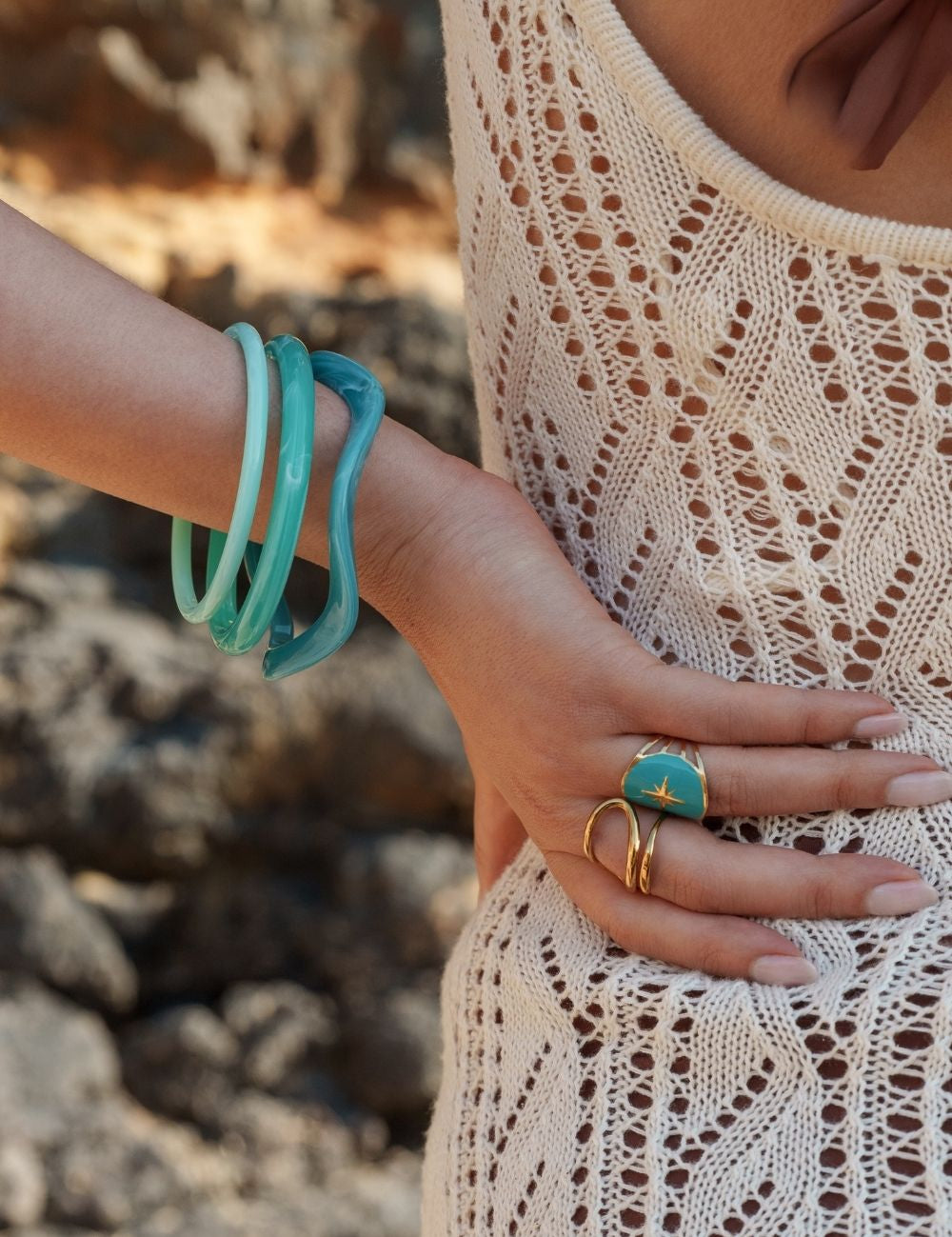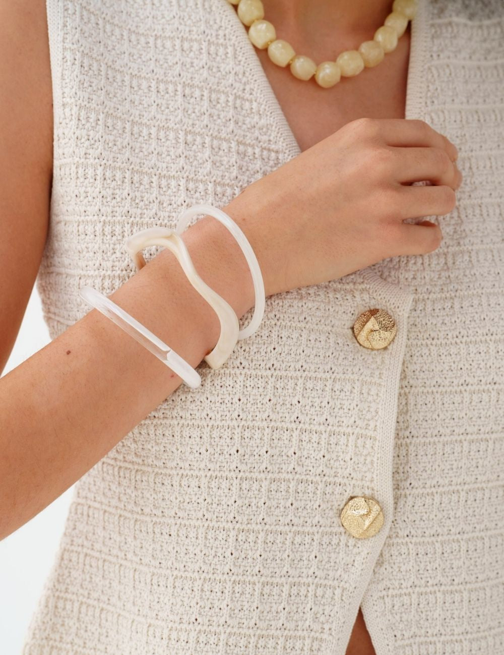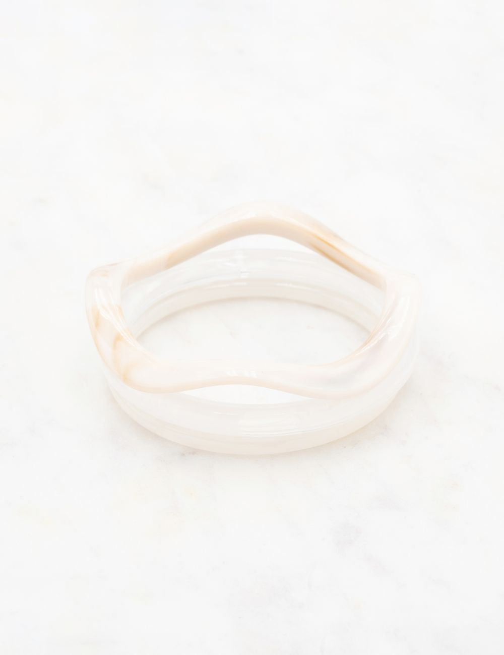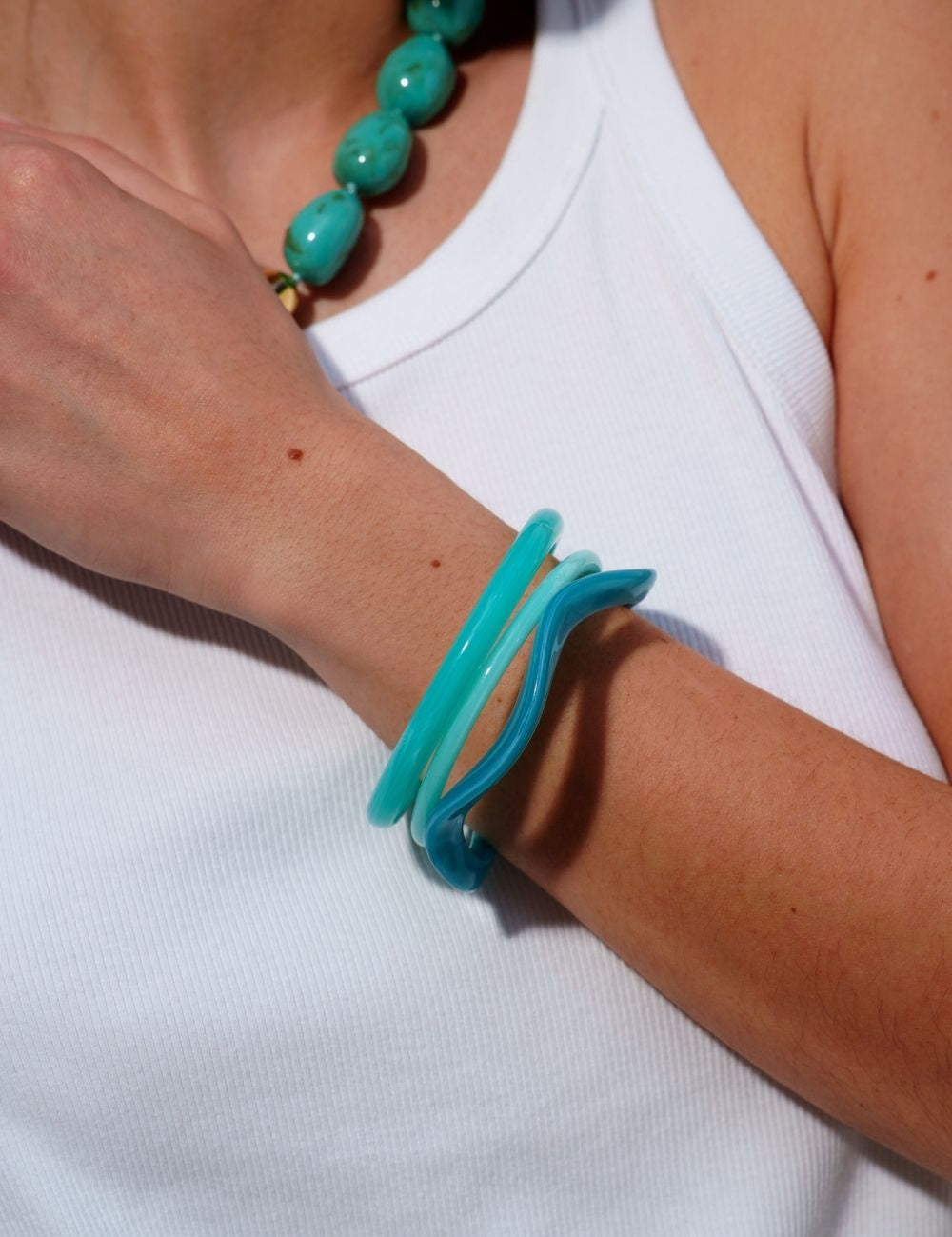 Notes : les bracelets ne sont pas malléables (Design rigide, Sans fermeture). Les couleurs en acétate diffèrent d'une pièce à l'autre.  Il existe donc des variations de couleur.   Les motifs sont aléatoires sur les joncs. Vendu par lot de 3.